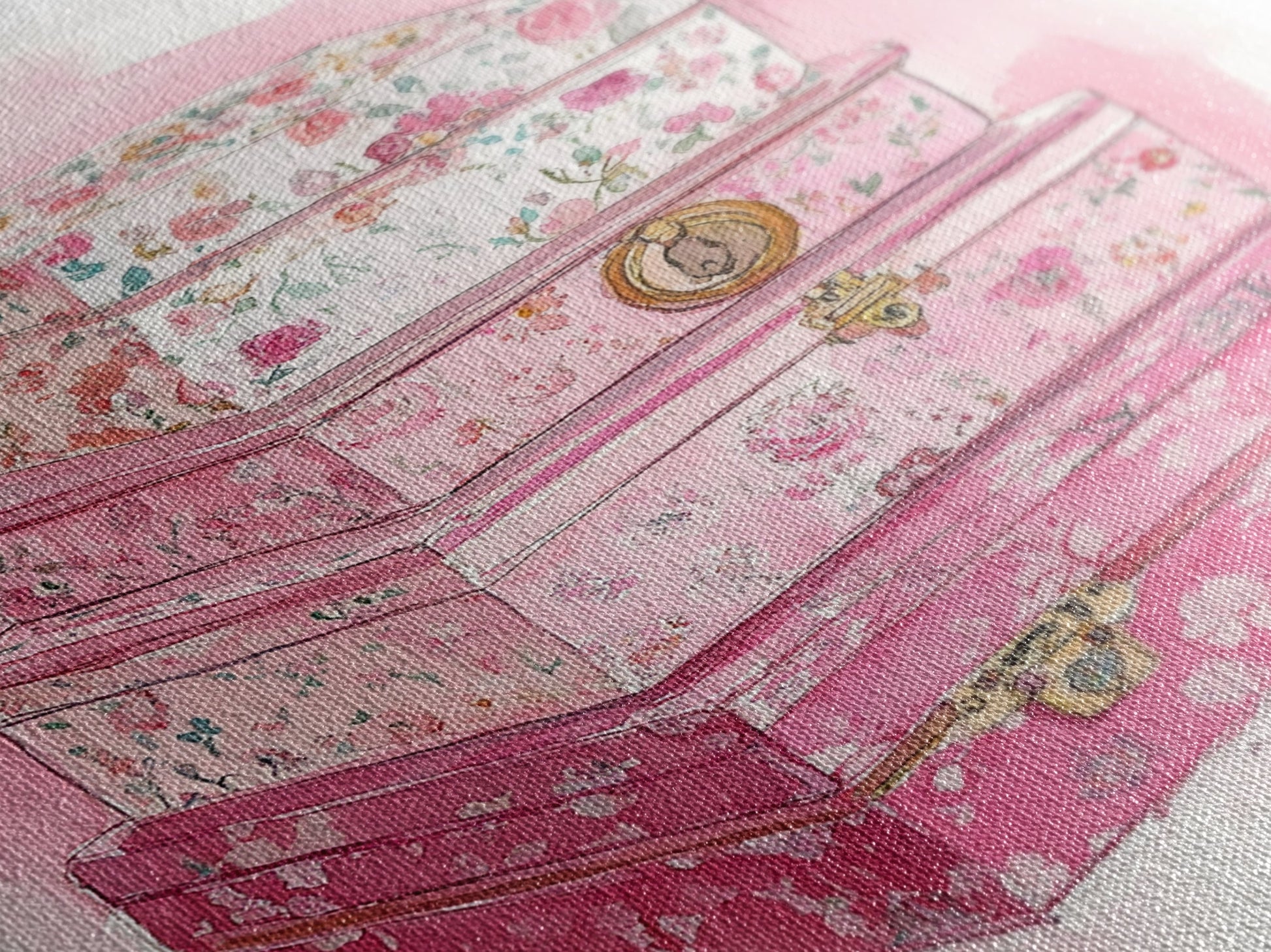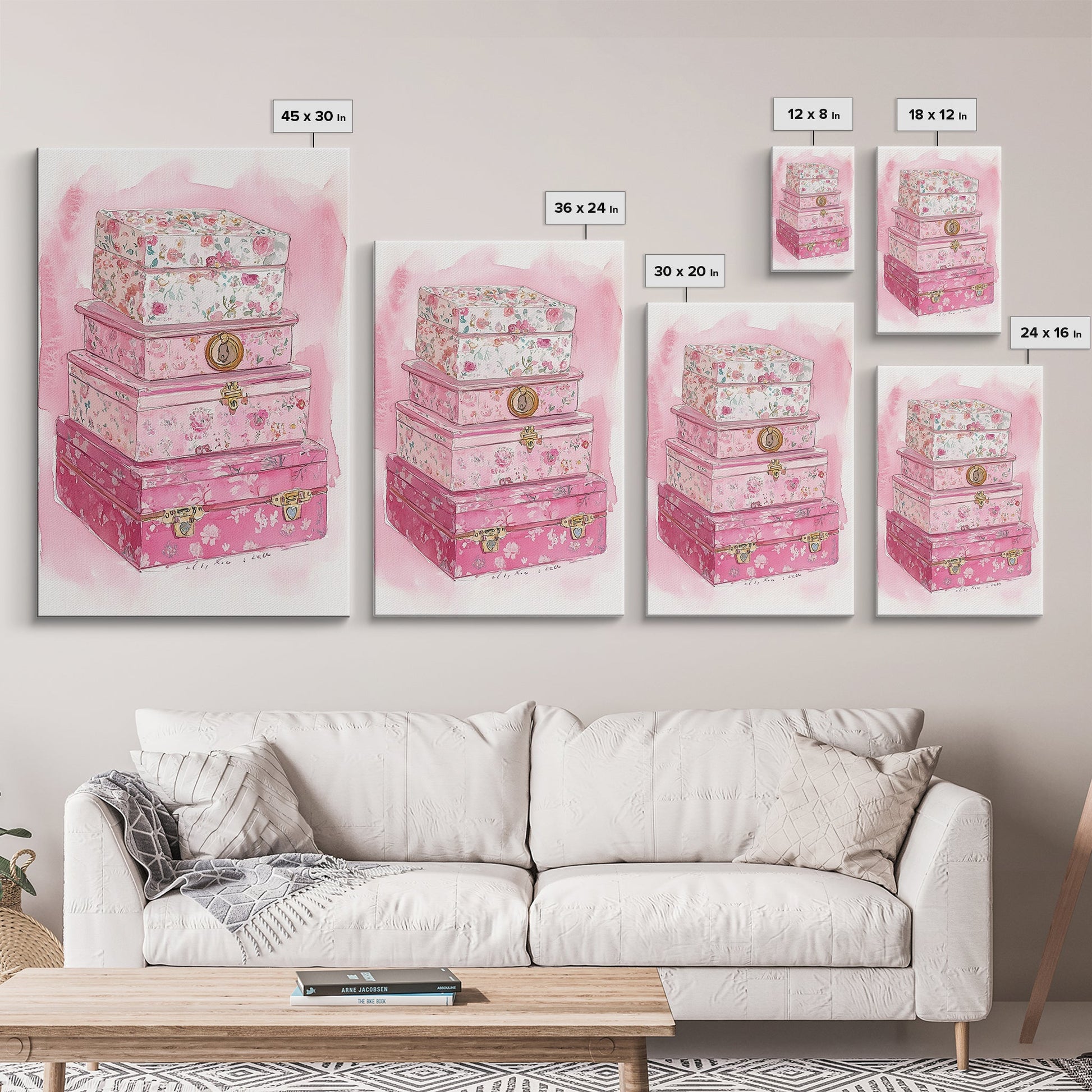 Floral stackable decorative boxes framed canvas print chic boho decor whimsical rustic art idea cozy wall decor charming bedroom addition