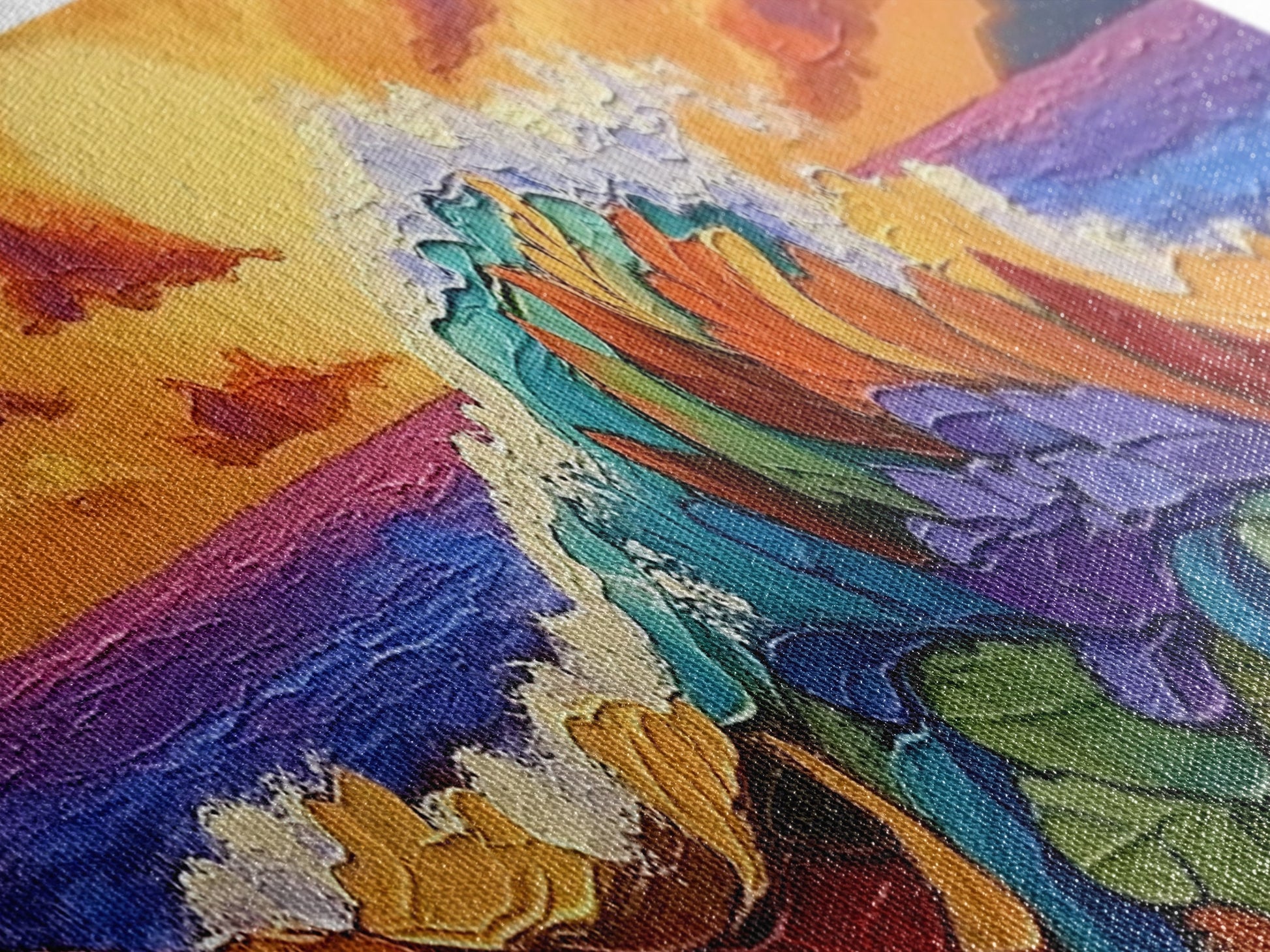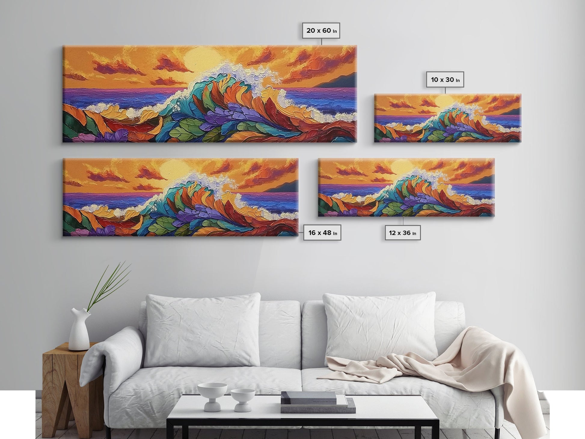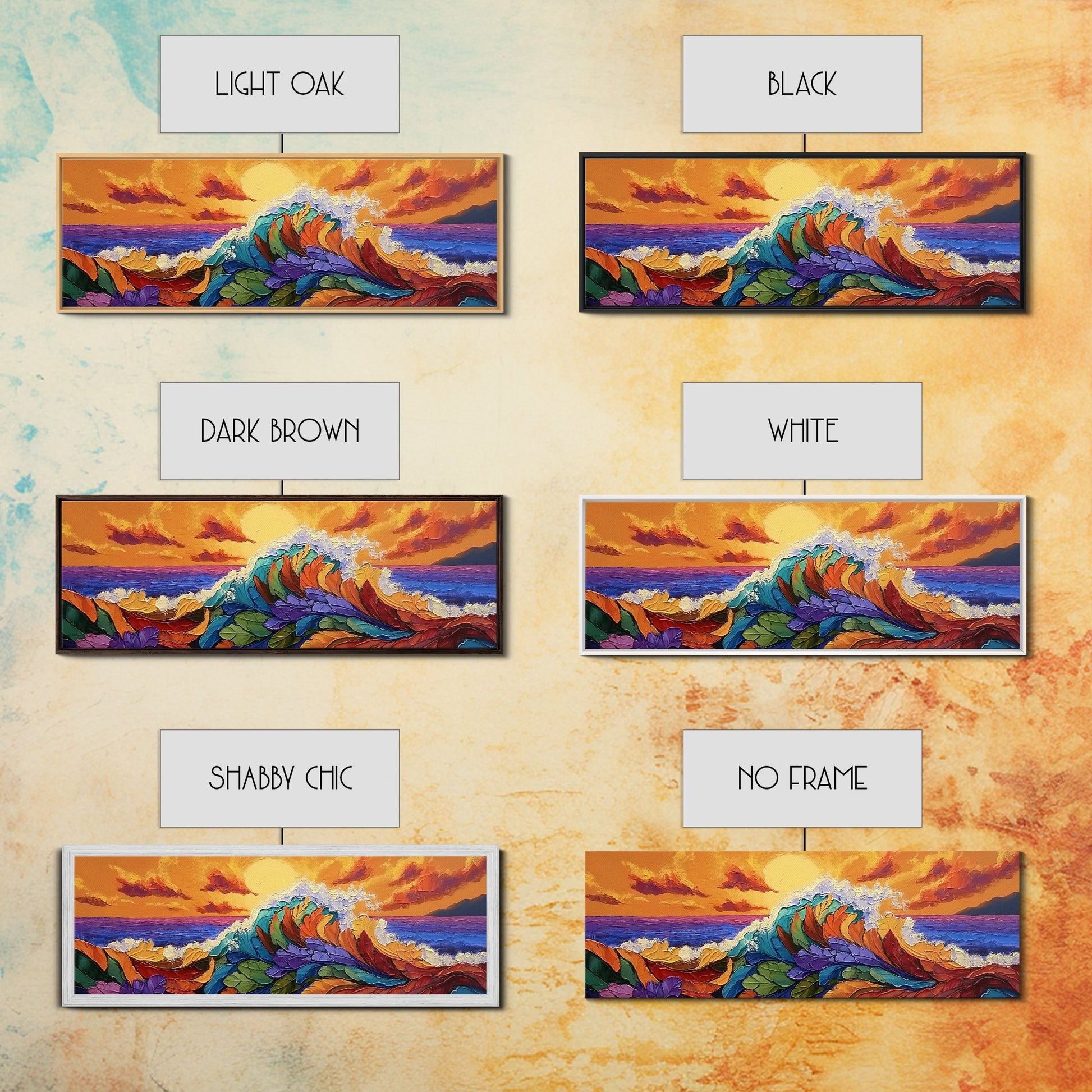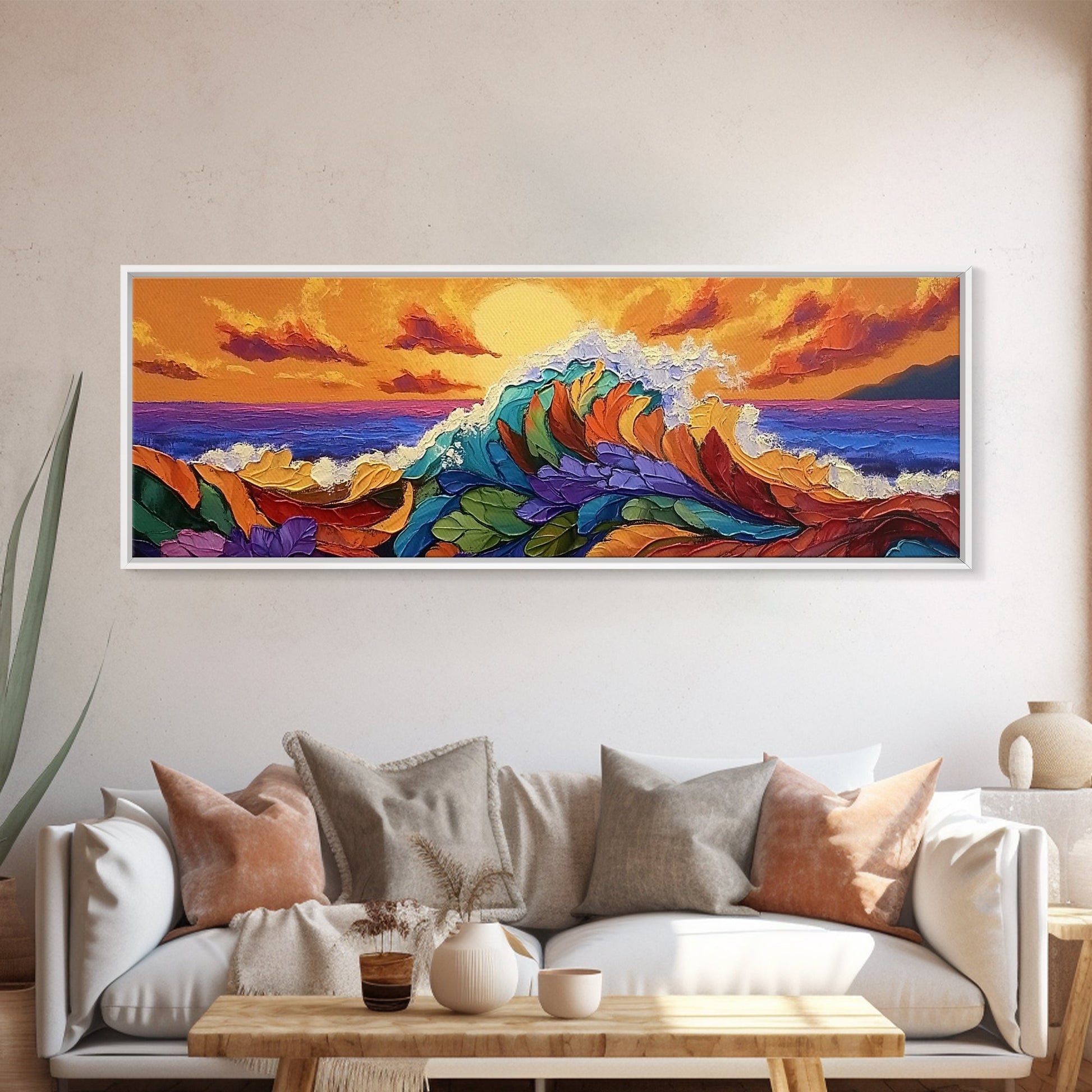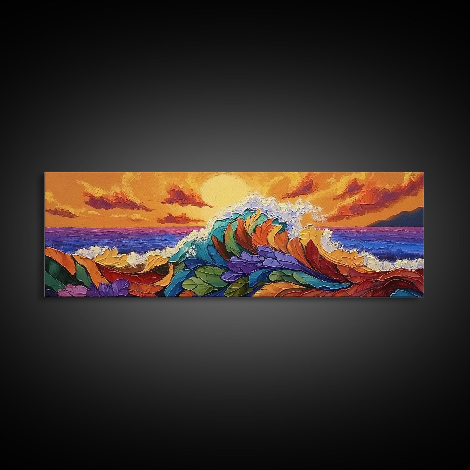 Floral Wave, Sunset Splash, Ocean Blooms, Whimsical Shore, Canvas Print, Bathroom Wall Art, Boho Coastal Decor, Vibrant Texture Art