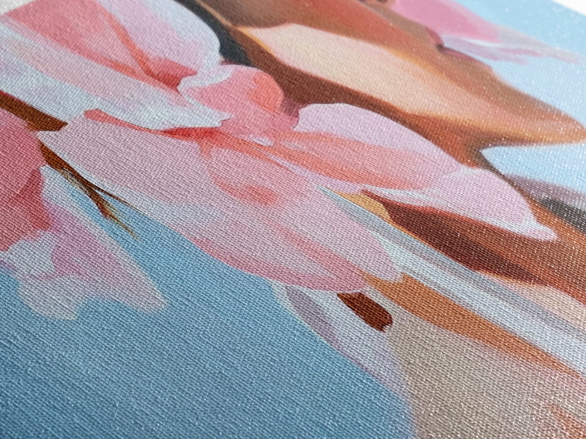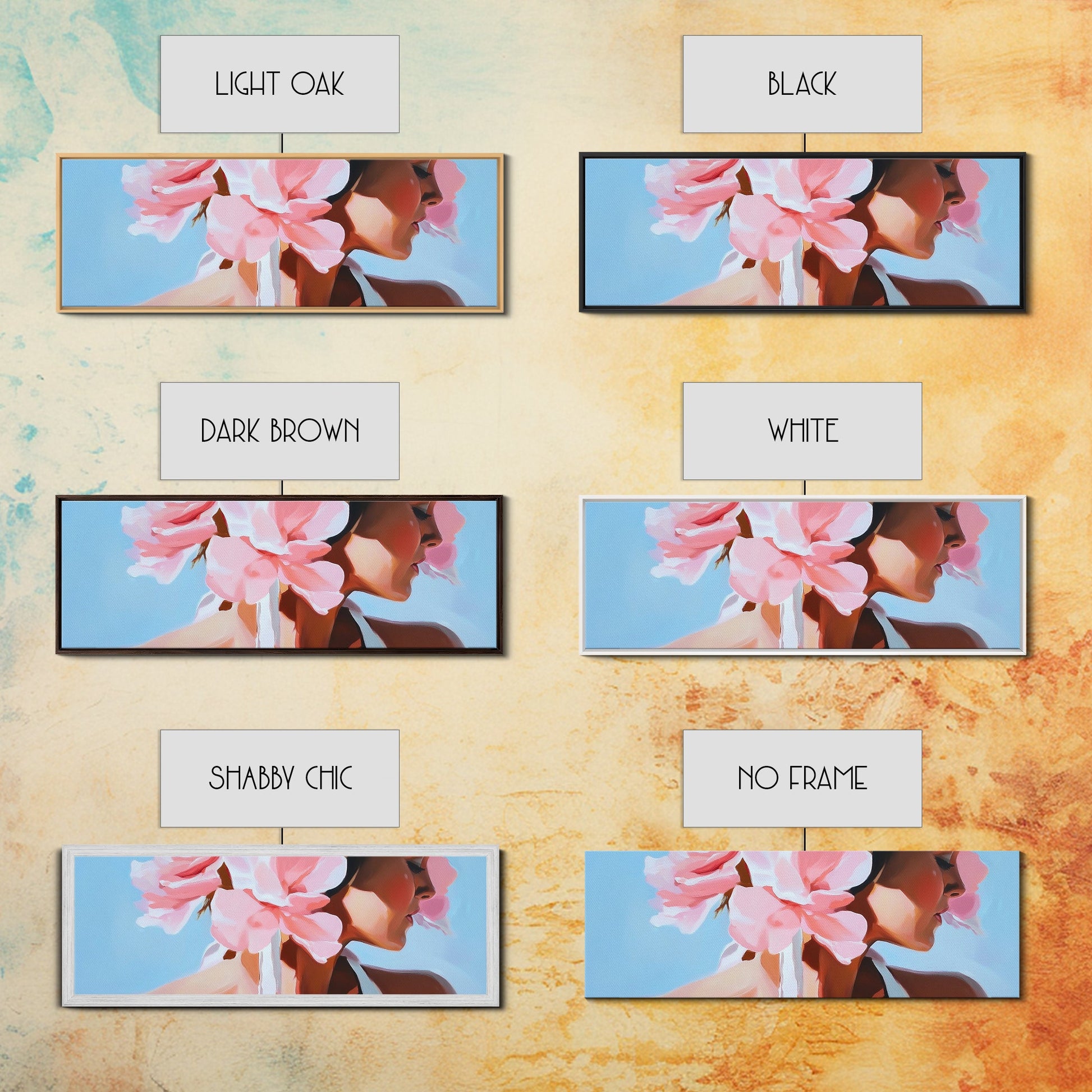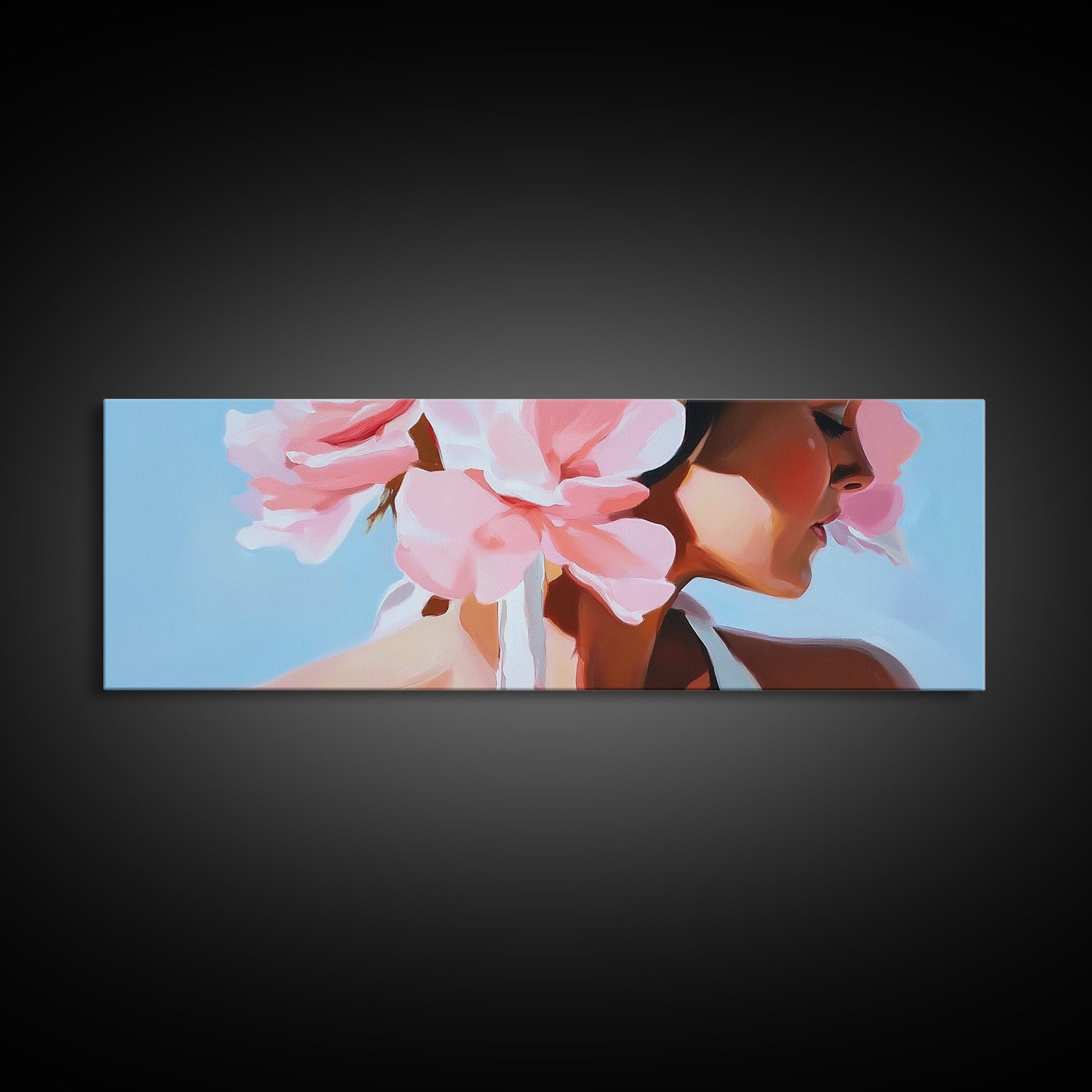 Floral Woman, Feminine Beauty, Elegant Portrait, Boho Canvas Print, Bedroom Wall Art, Modern Aesthetic, Pastel Pink Home Decor