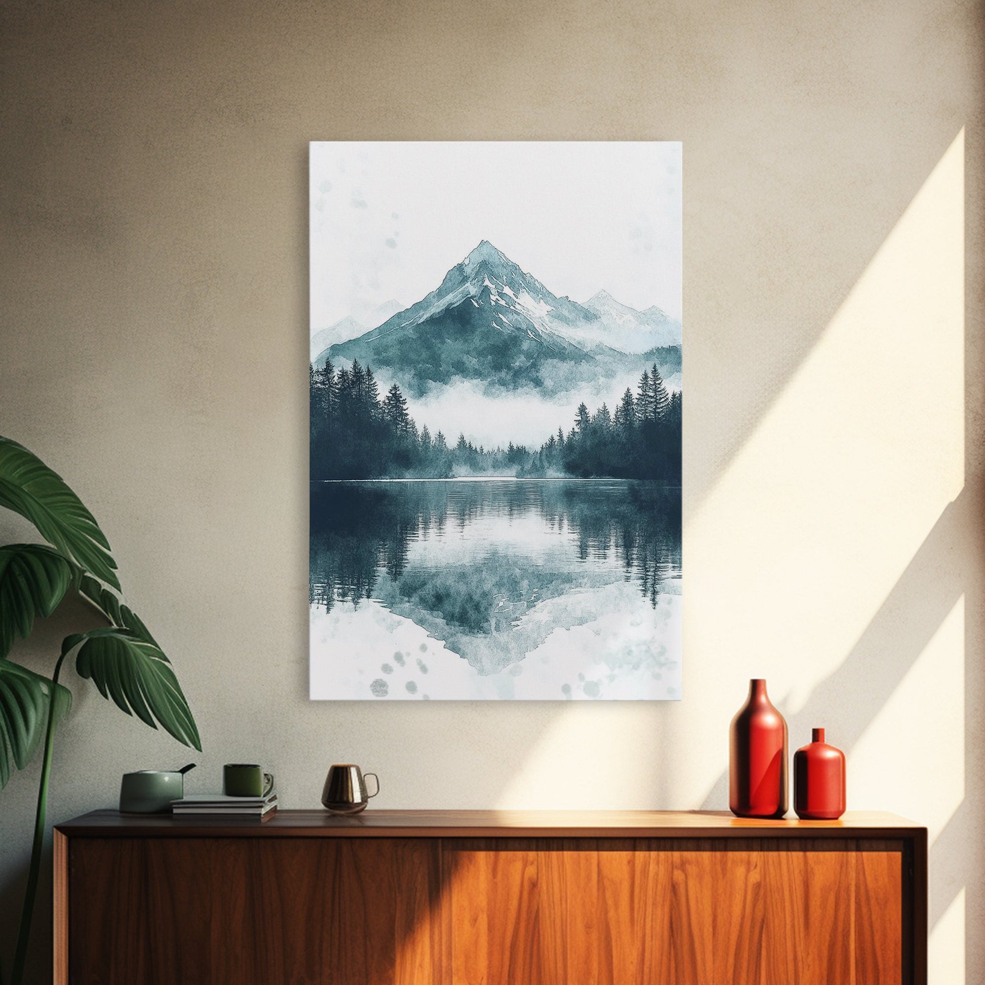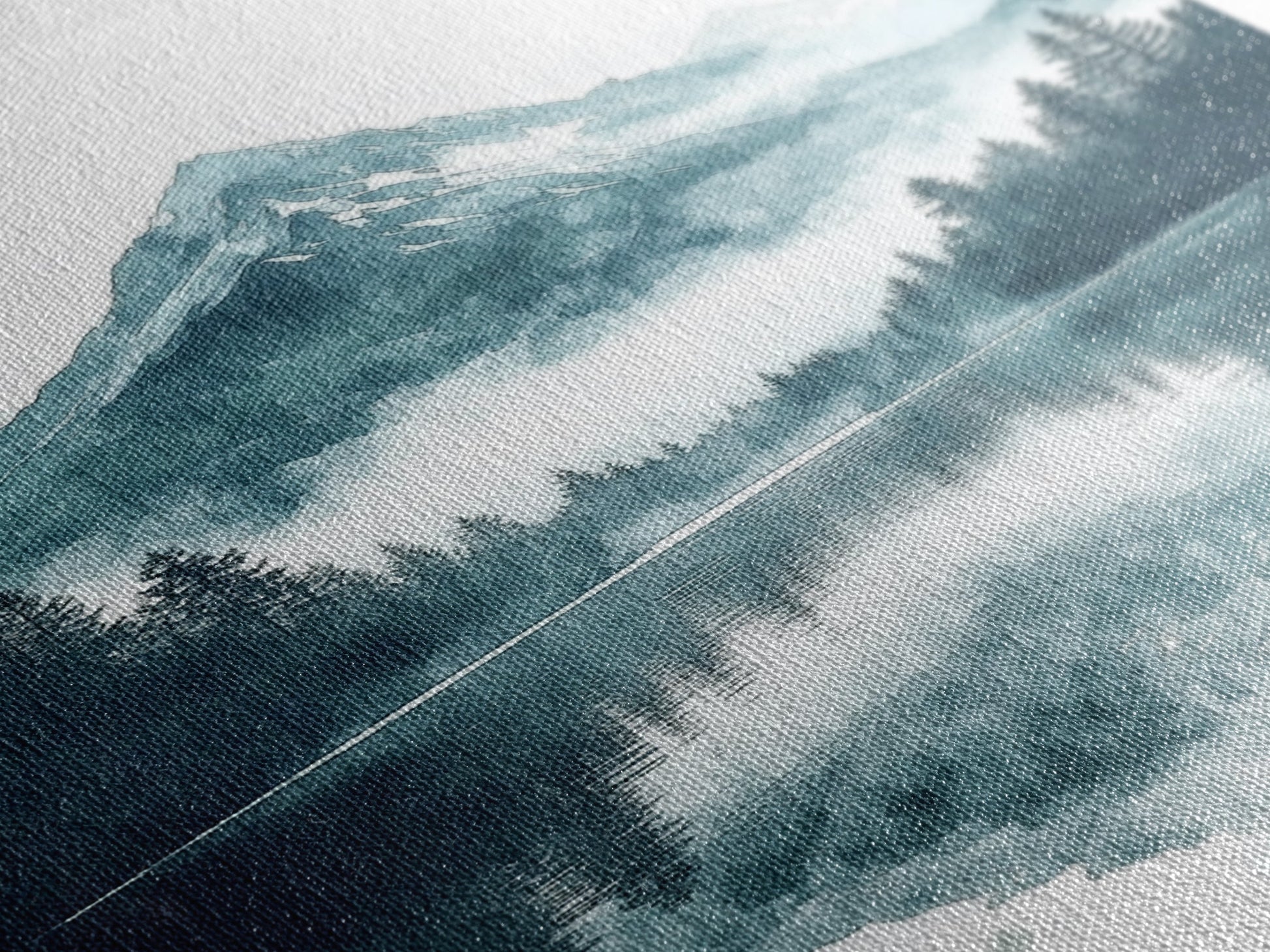 Fog In The Mountains, Framed Canvas Print, Pacific Northwest, Cascade Mountains, Emerald Green Landscape Painting, Boho Decor