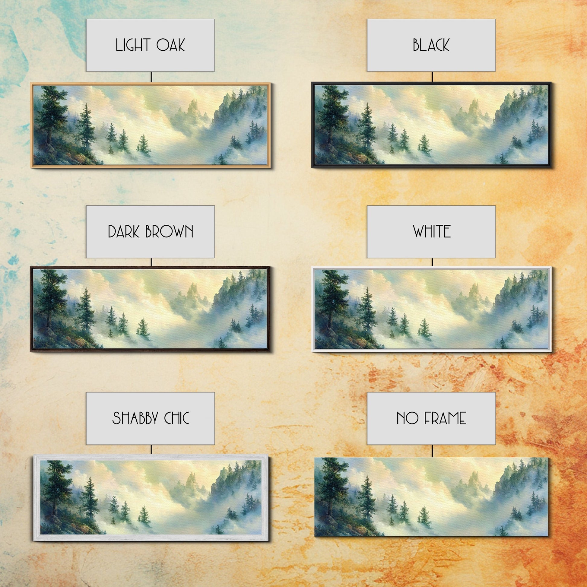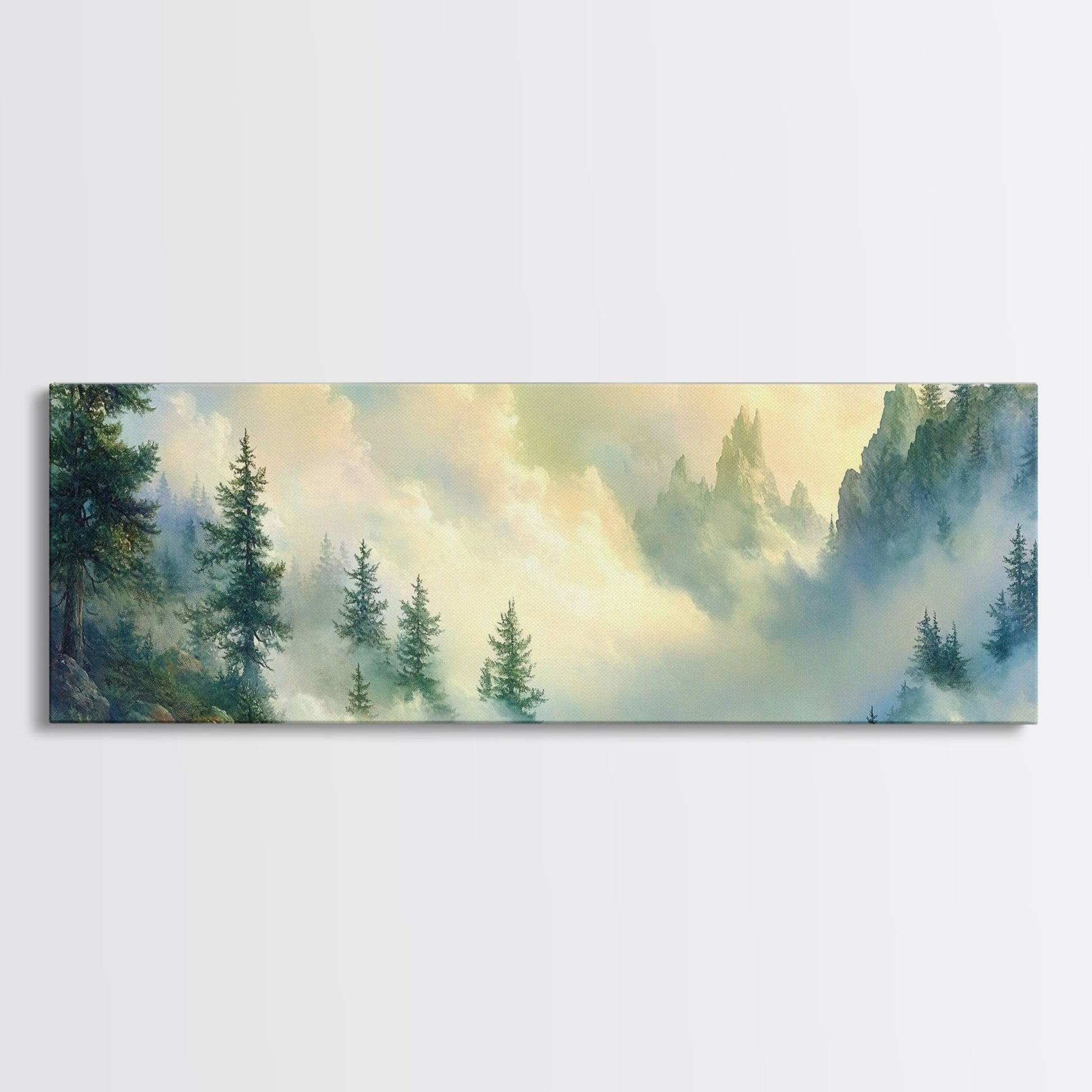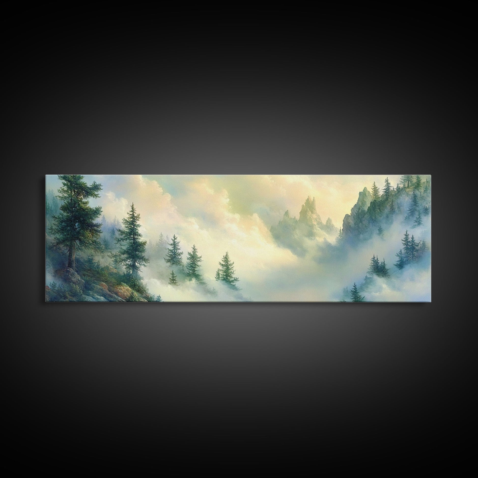 Fog In The Mountains - Framed Canvas Print - Panoramic North Carolina Painting - Blue Ridge Mountains - Original Painting Home Decor - Moody Art