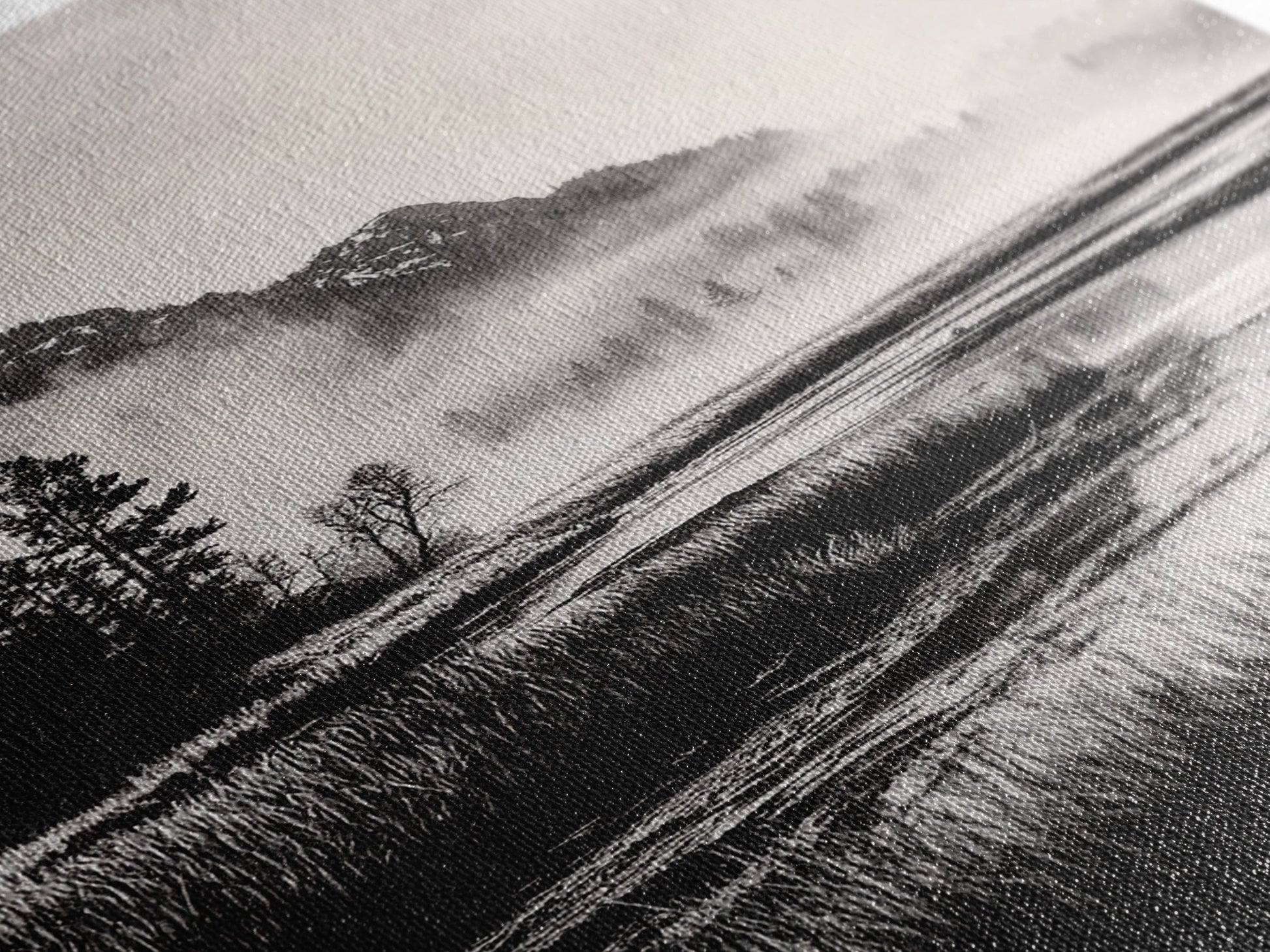 Foggy Forest, Monochrome Wall Art, Nature Landscape, Tranquil Painting, Living Room Decor, Rustic Style, Framed Canvas Print