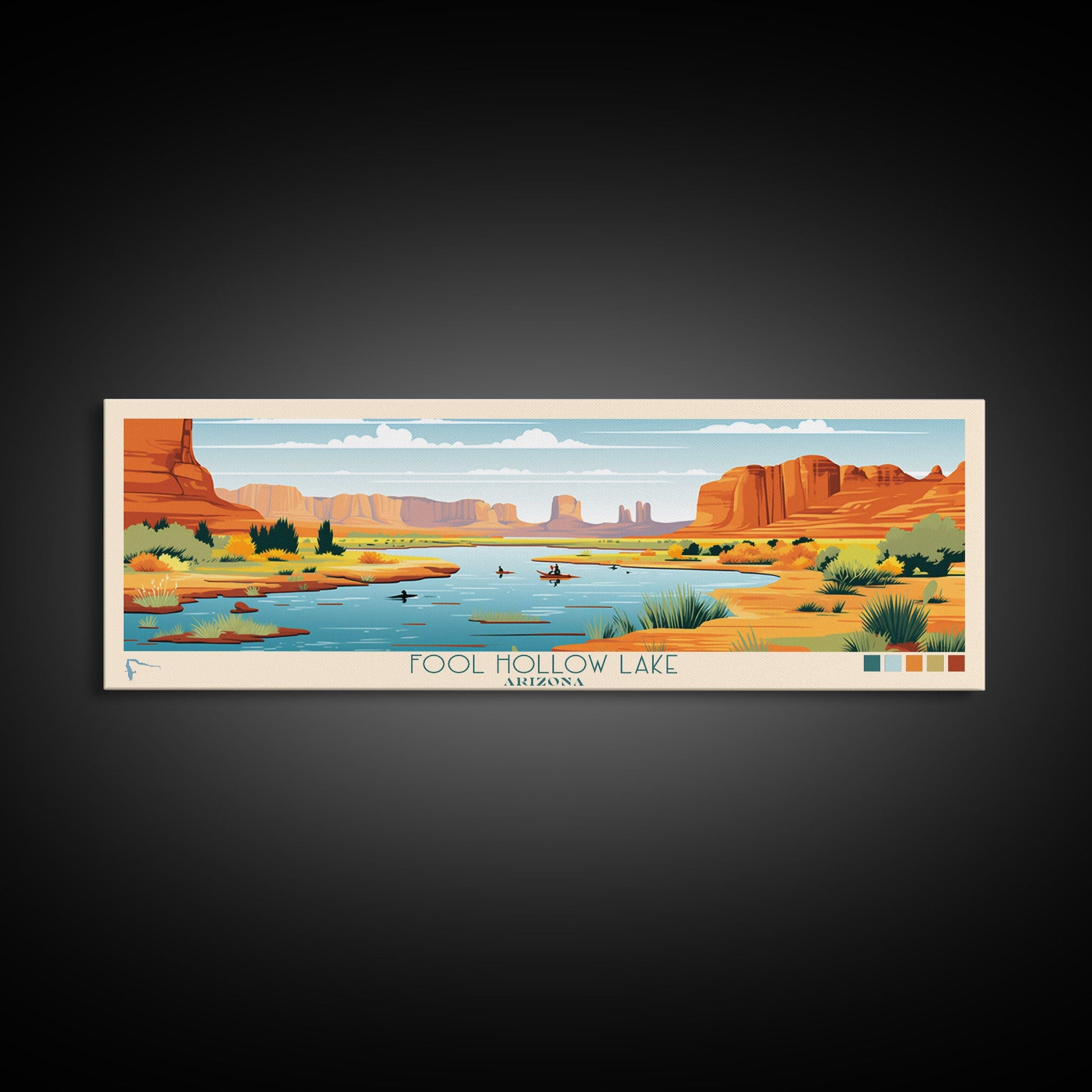 Fool Hollow Lake Arizona Framed Canvas Print, Panoramic Art, Midcentury Modern, Pop Art, Living Room Decor, Travel Poster, Lake Painting, Wall Art