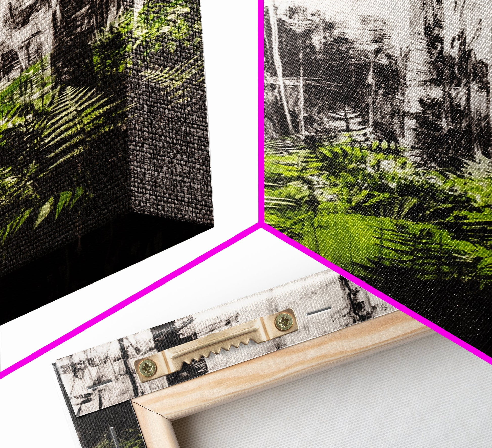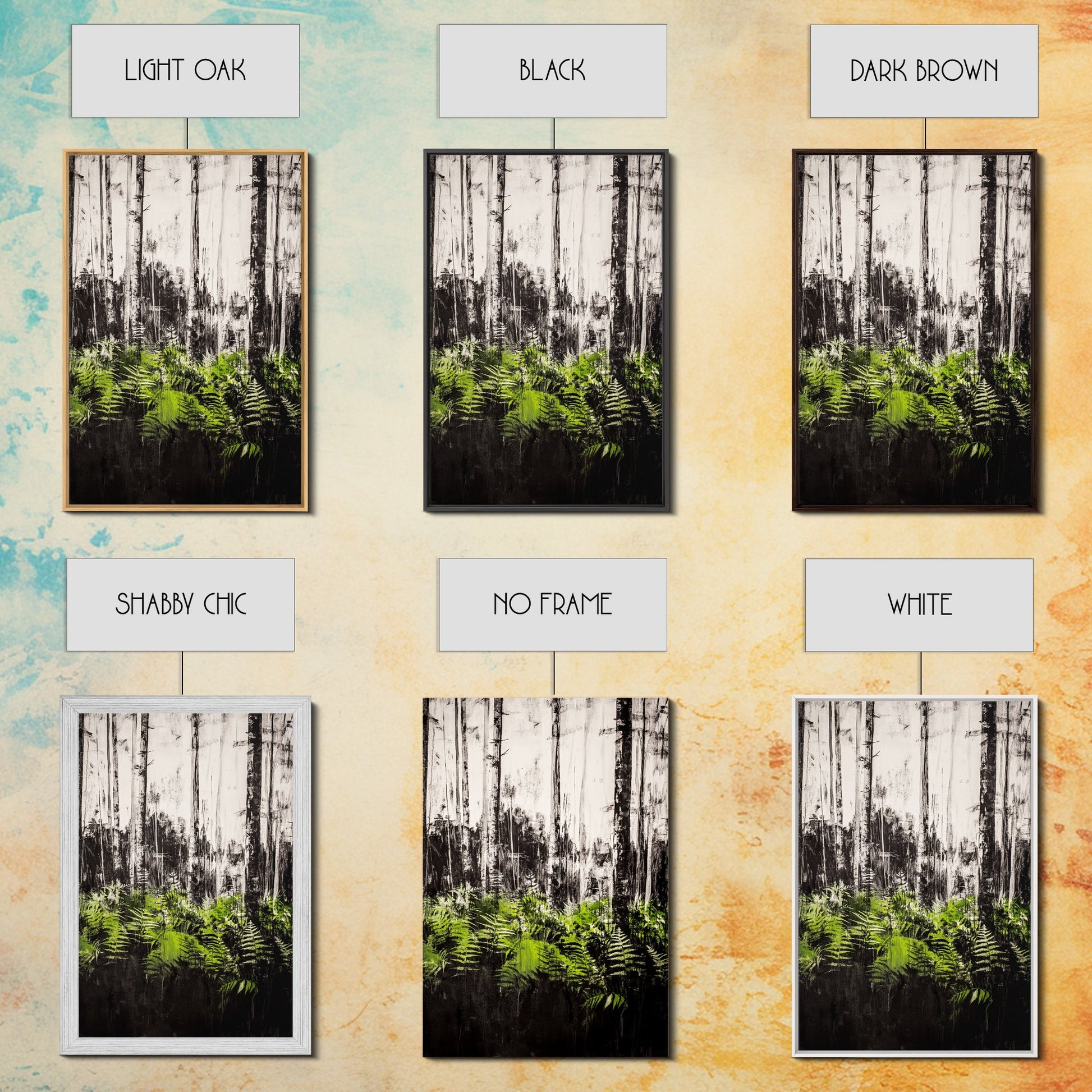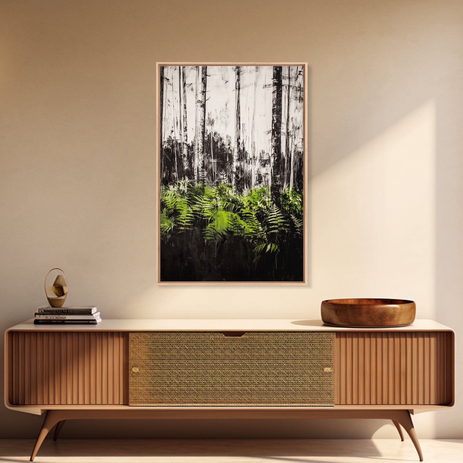 Forest Ferns, Green Botanical Art, Woodland Nature Print, Minimalist Home Decor, Black and White Wall Art, Framed Canvas Print
