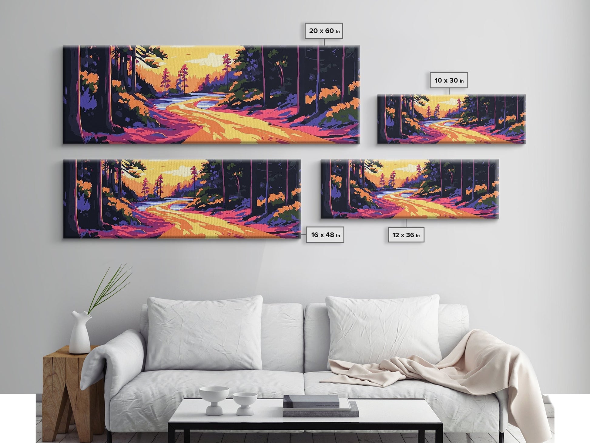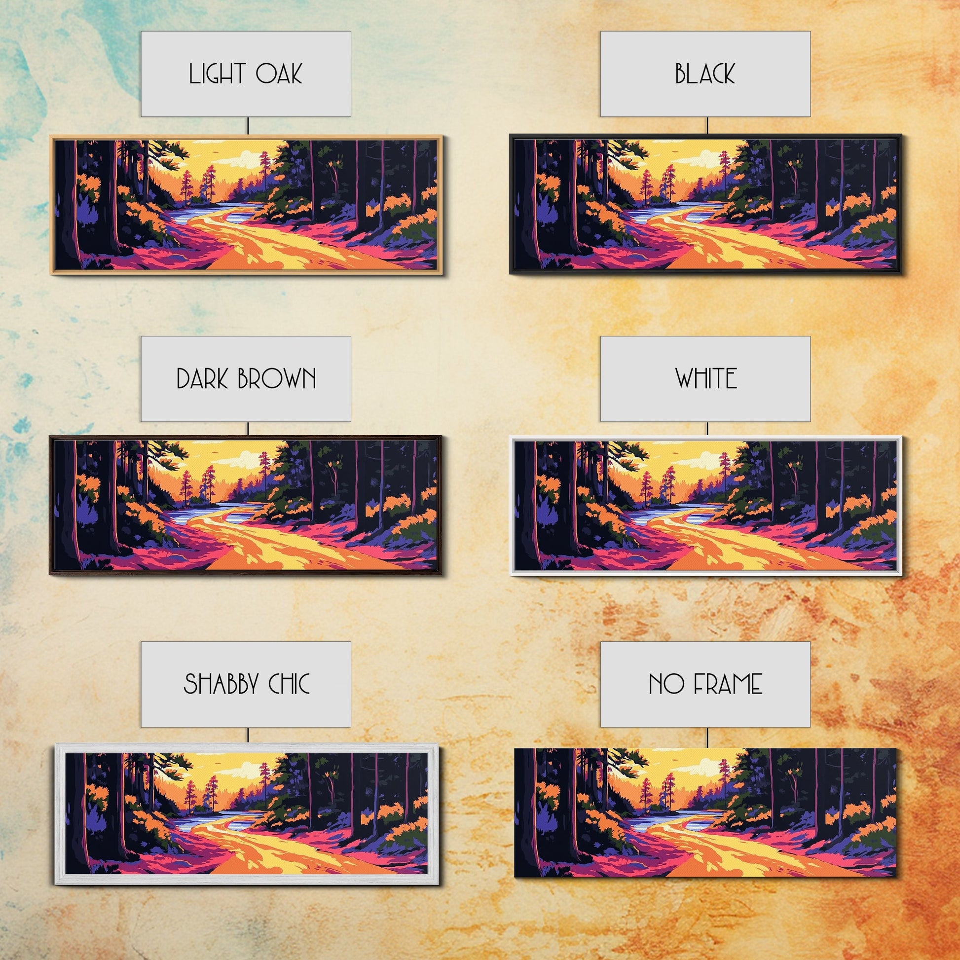 Forest Path, Scenic River, Golden Sunset, Framed Canvas Print, Rustic Home Decor, Nature Landscape Art, Cozy Cabin Decor, Fall Aesthetic