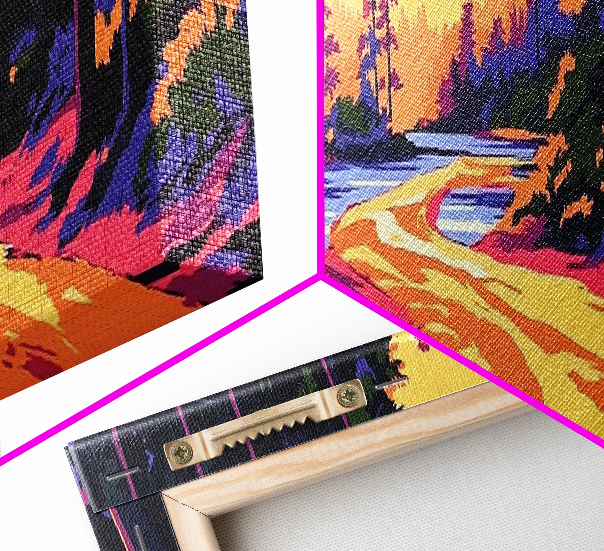 Hello and thank you for taking the time to view our modern high quality giclée artwork! We offer both posters and stretched canvas prints. Our posters are printed on Ultra Matte 60 lb / 230 GSM high quality photo paper, with a thickness of 10 mil. Our canvases are printed on museum grade 350 GSM canvas material with ECO friendly archival grade ink, then hand stretched and stapled over premium, FSC certified and shrink resistant frames. Designed and built to last a lifetime.