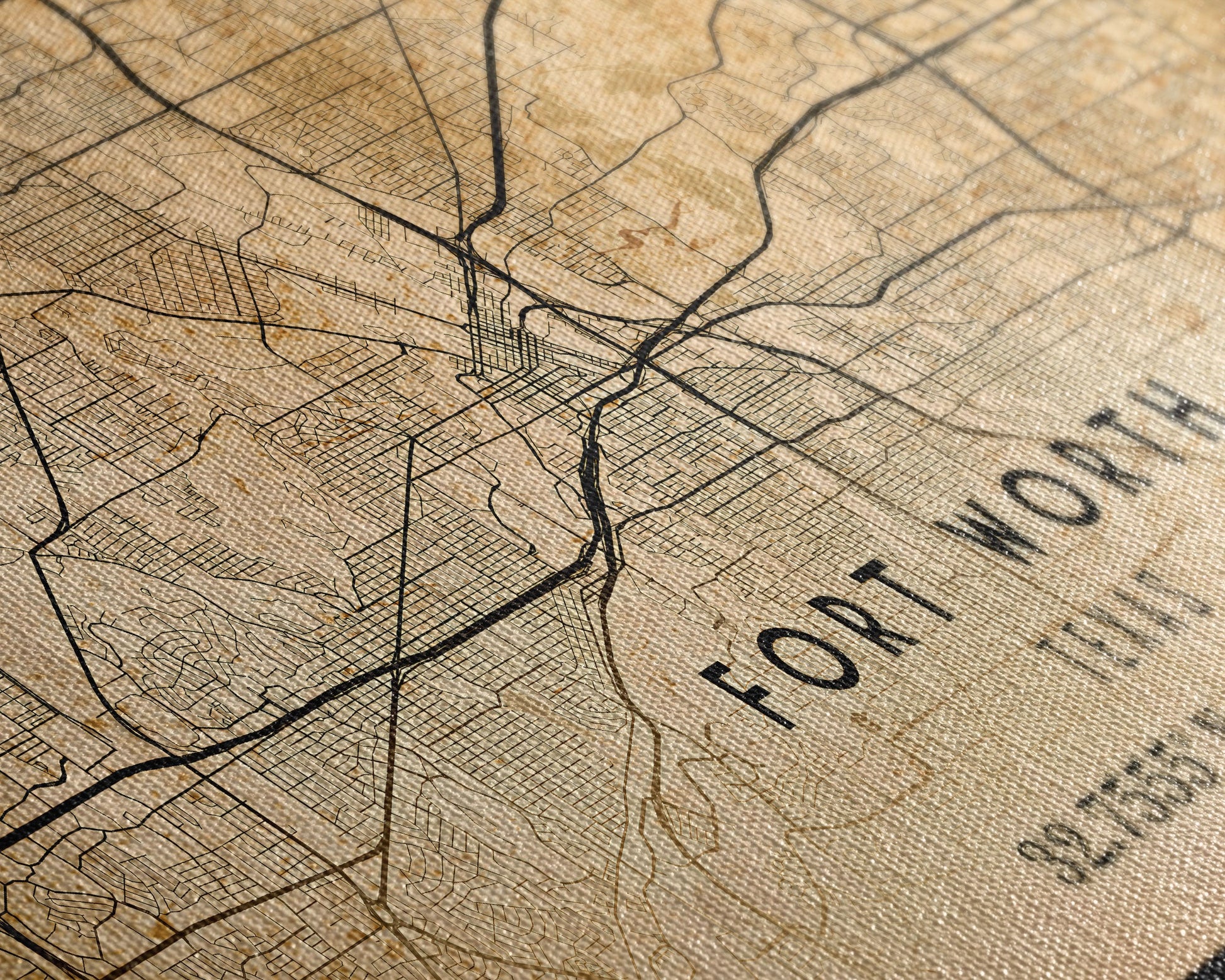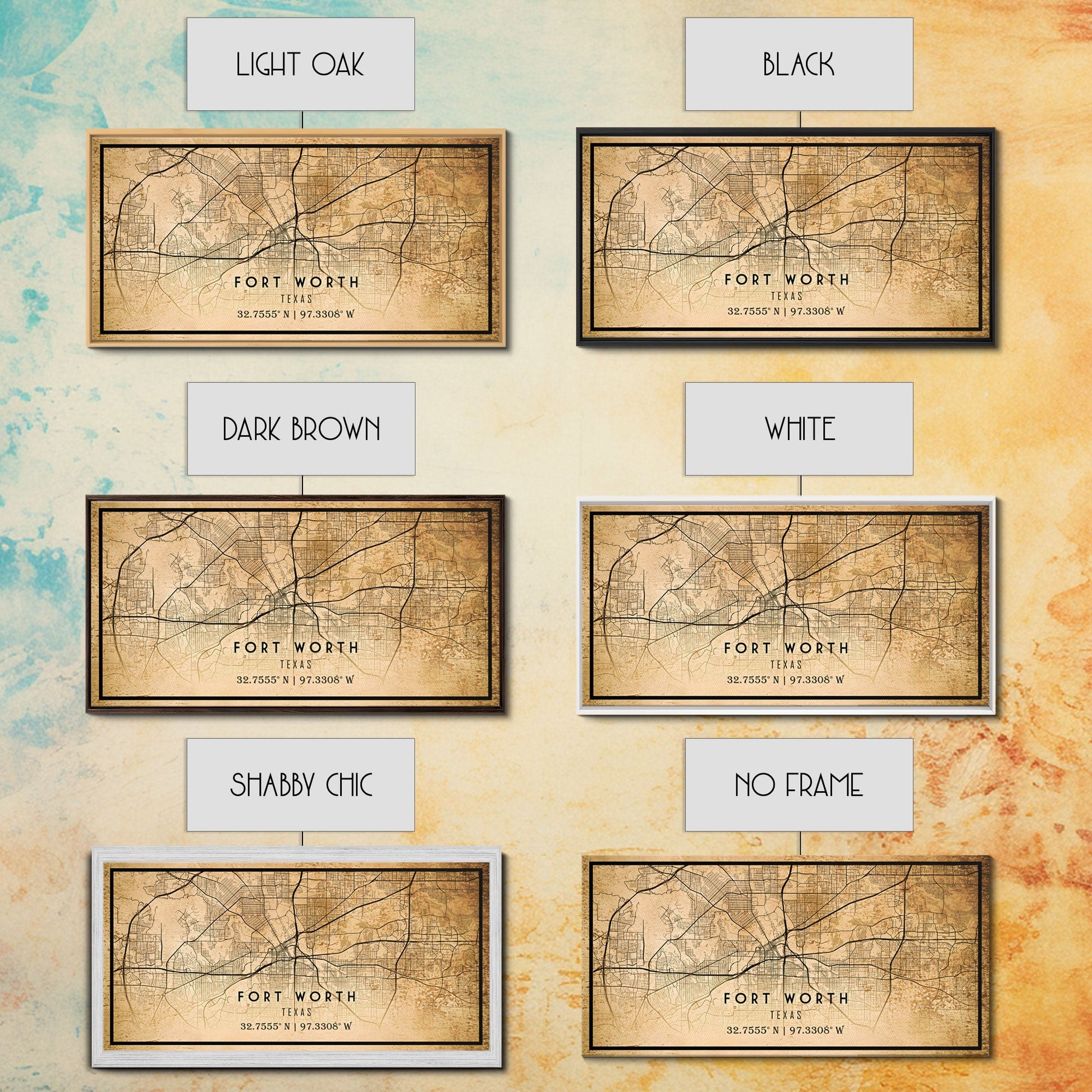 Fort Worth map print poster or framed canvas, Texas map print poster canvas, Fort Worth city map print poster canvas, Panther City
