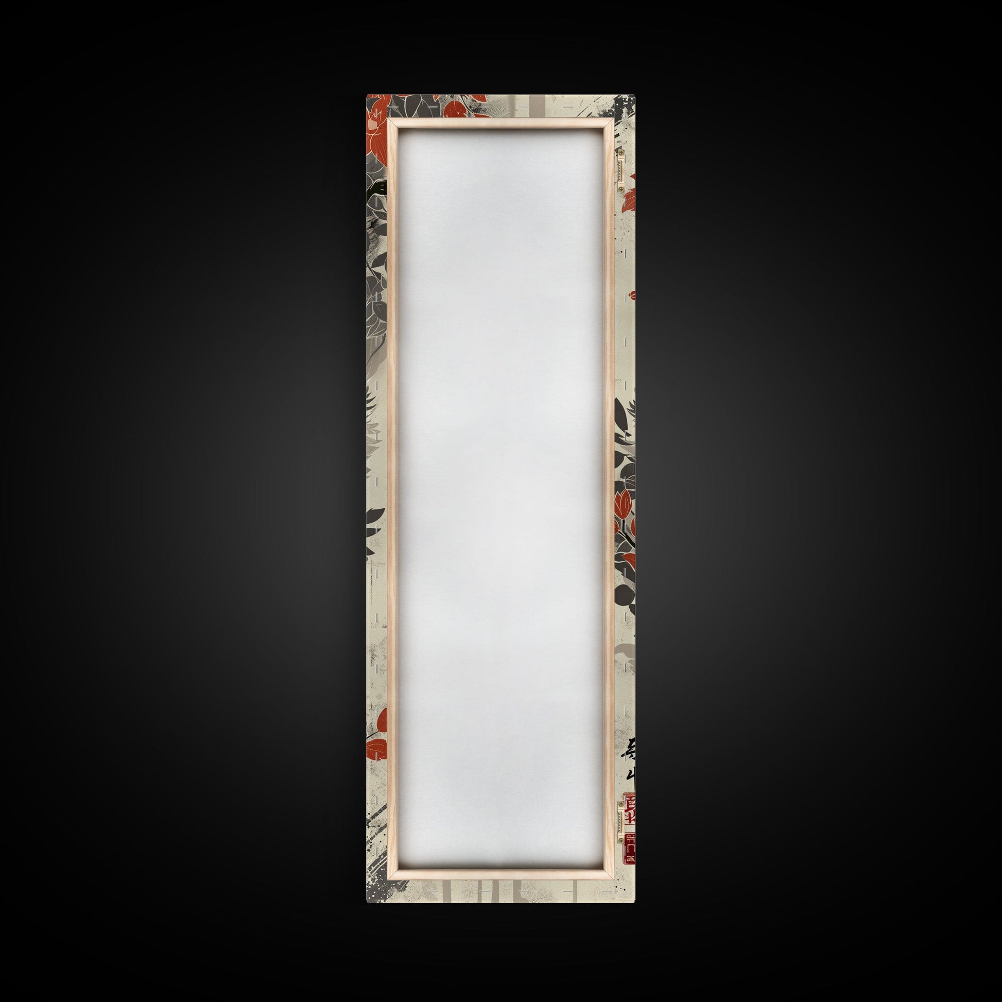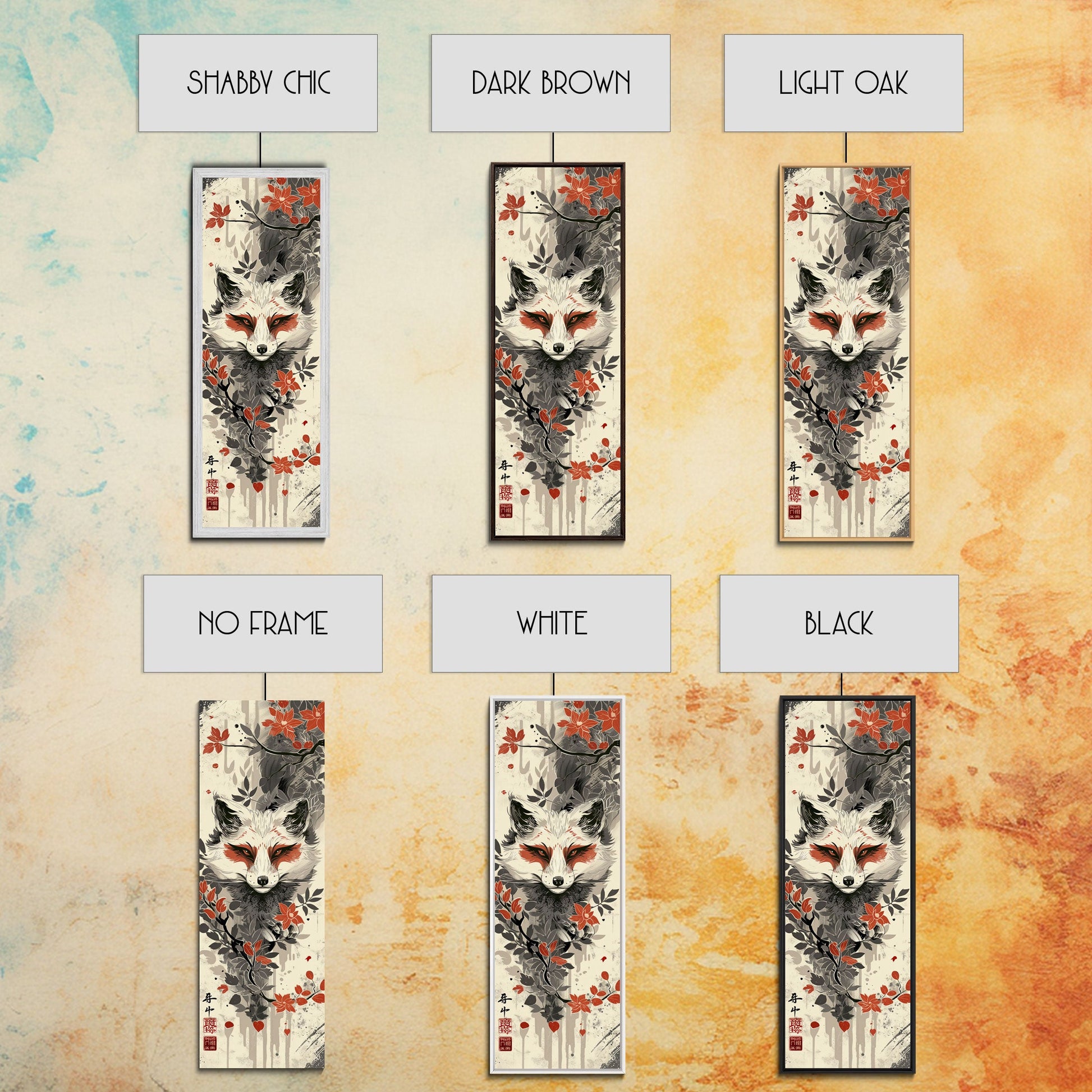 Fox Head Amidst Red Flowers On Textured Background Skinny Art Wood Block Print Framed Canvas Print