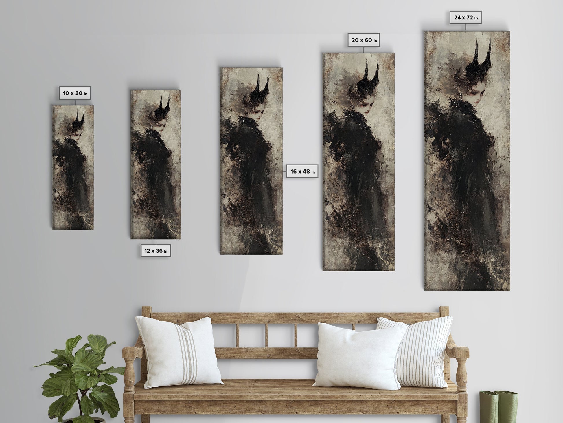 Framed Canvas Print of Dark Angels Wall Art with Gothic Aesthetic, Moody Art, Ozymandias Art, Unique Gift Idea, Long Narrow Wall Art, Tall Skinny Art