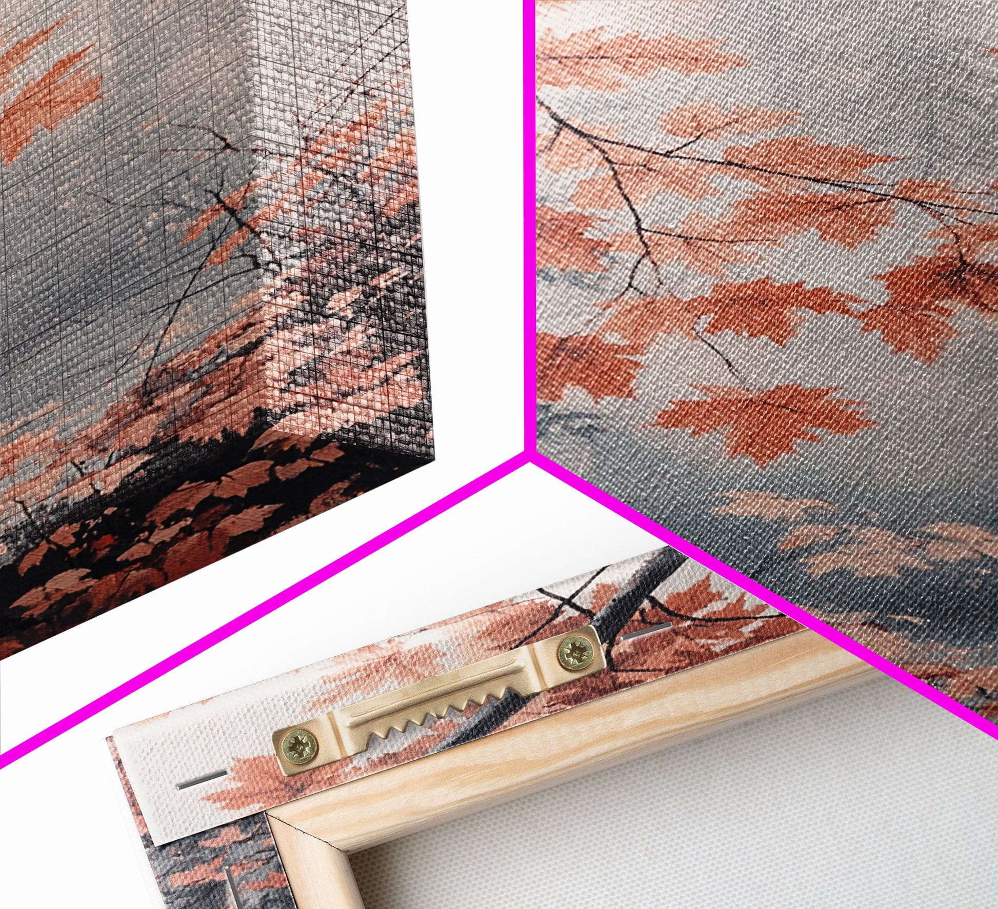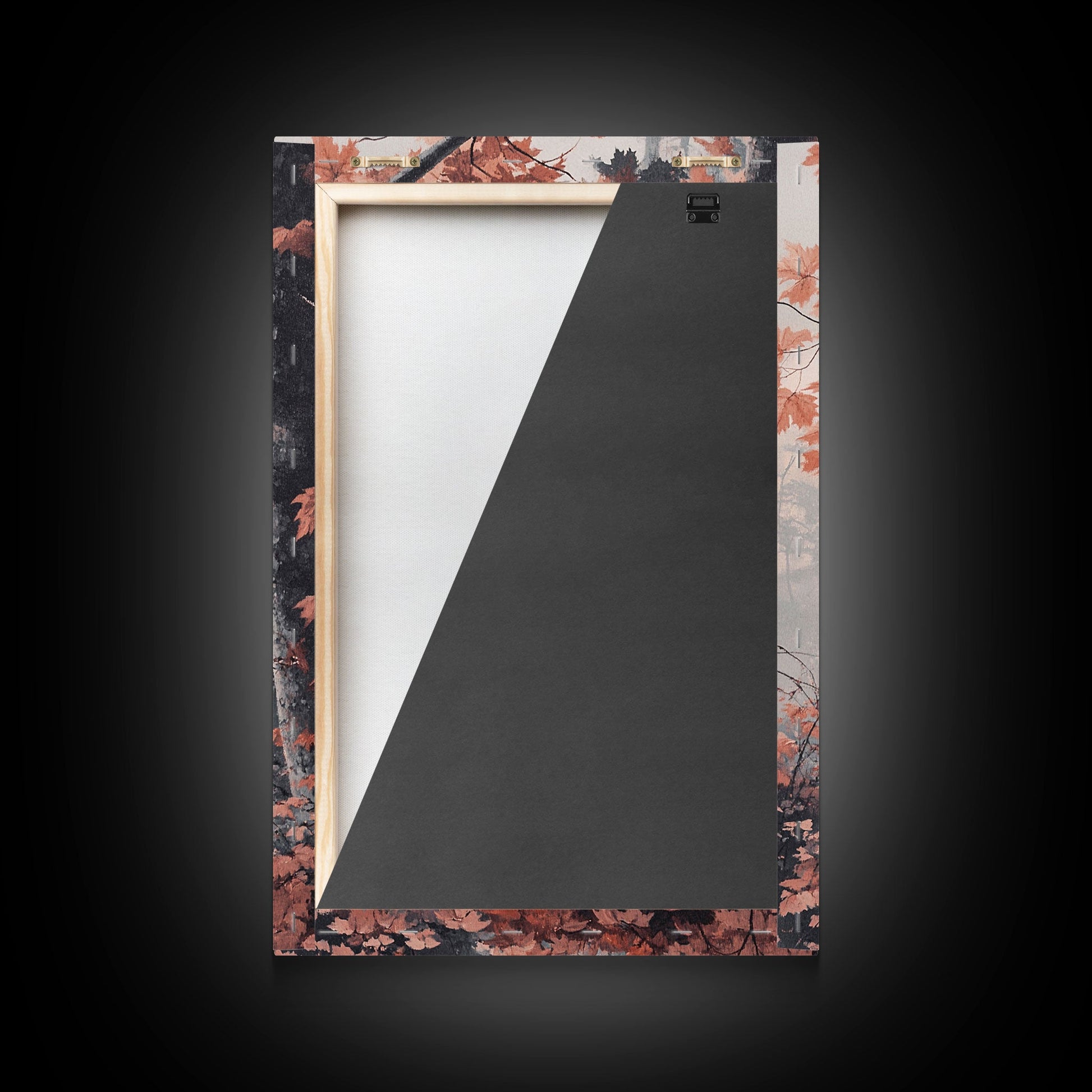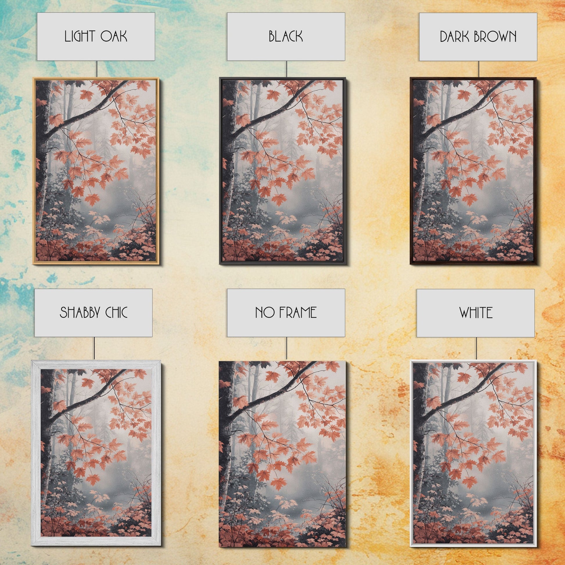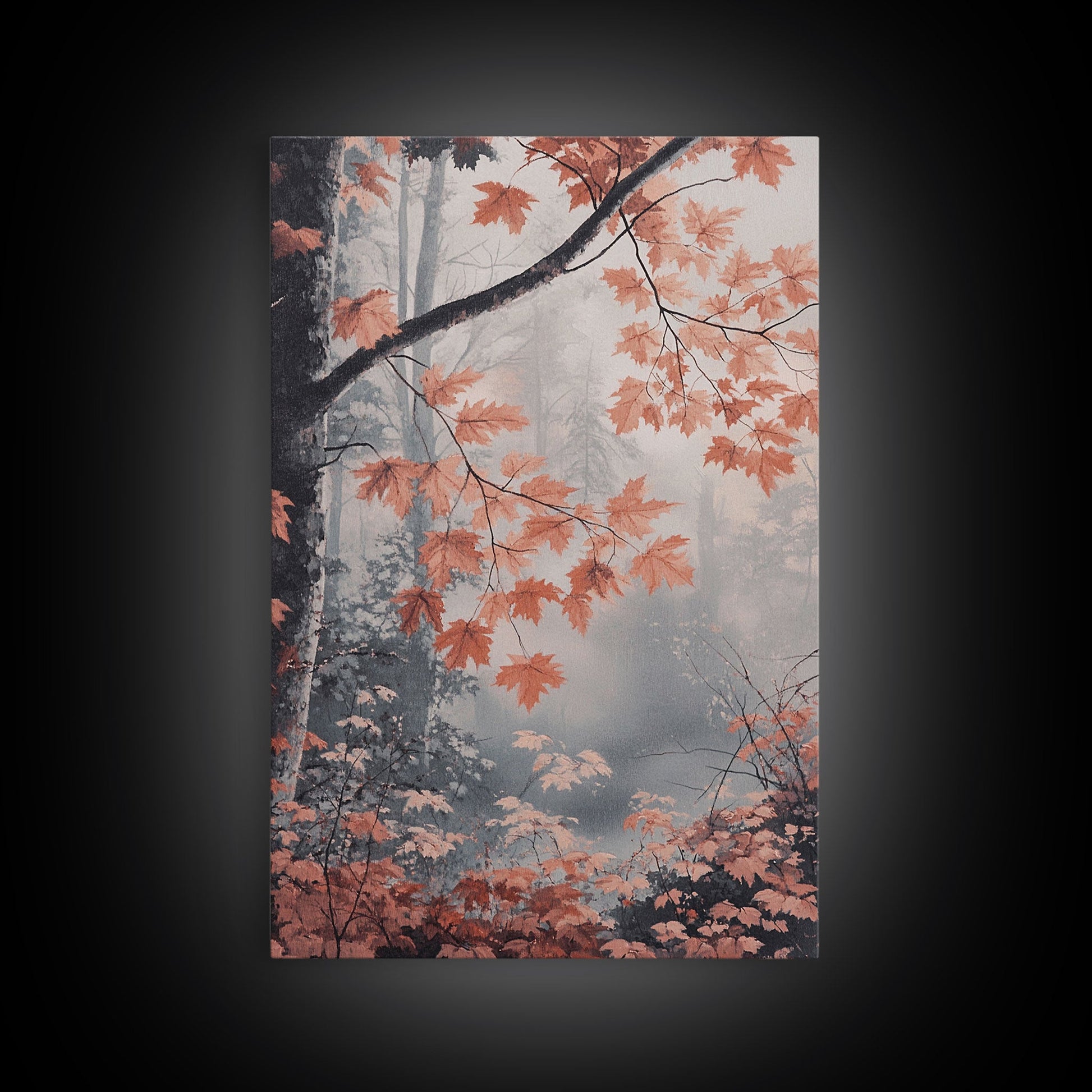 Framed Canvas Print of Fall Leaves on Branches in Misty Forest, Moody Landscape Wall Art, Fall Decor, Gift Idea, Farmhouse Seasonal Art