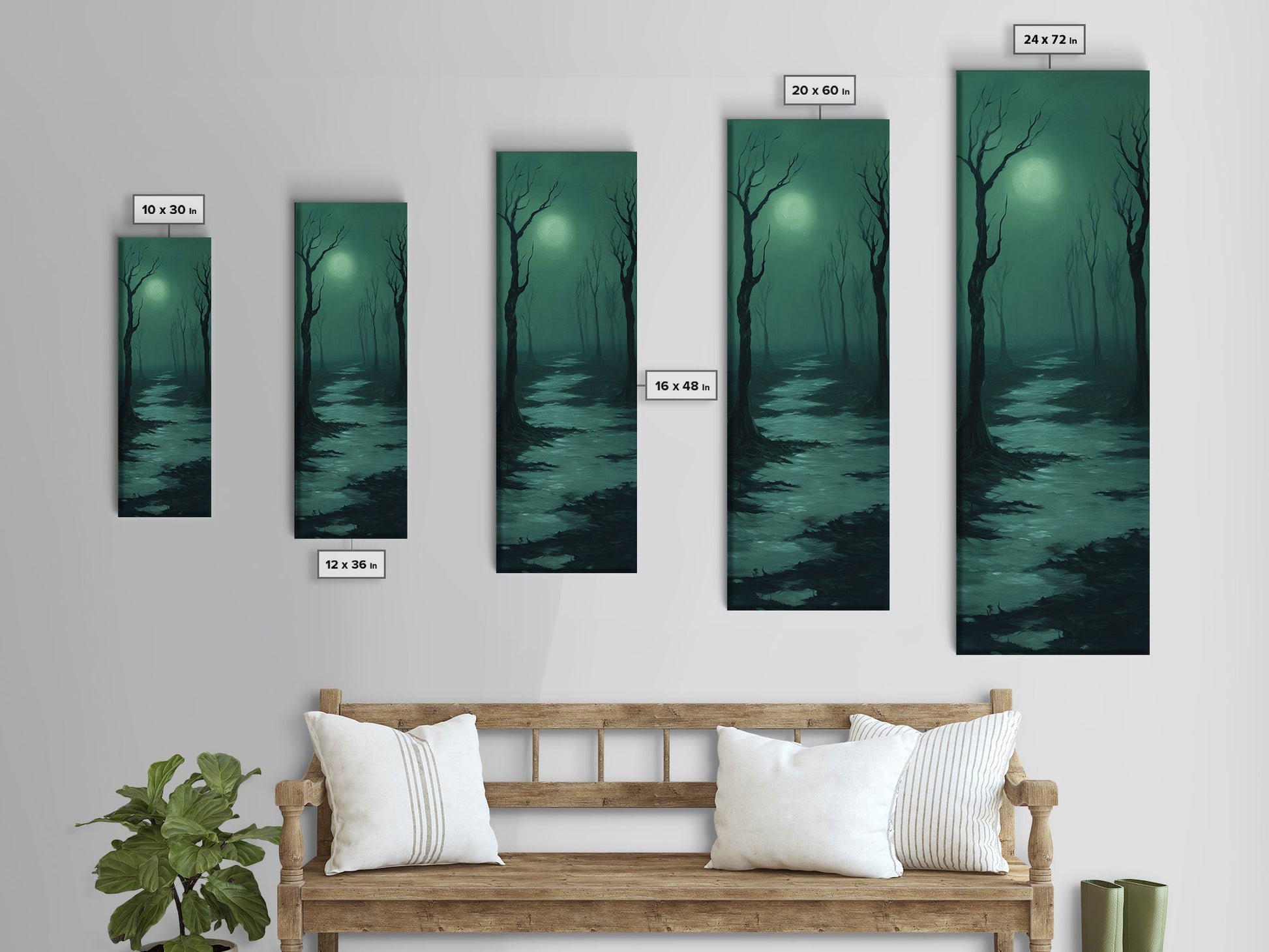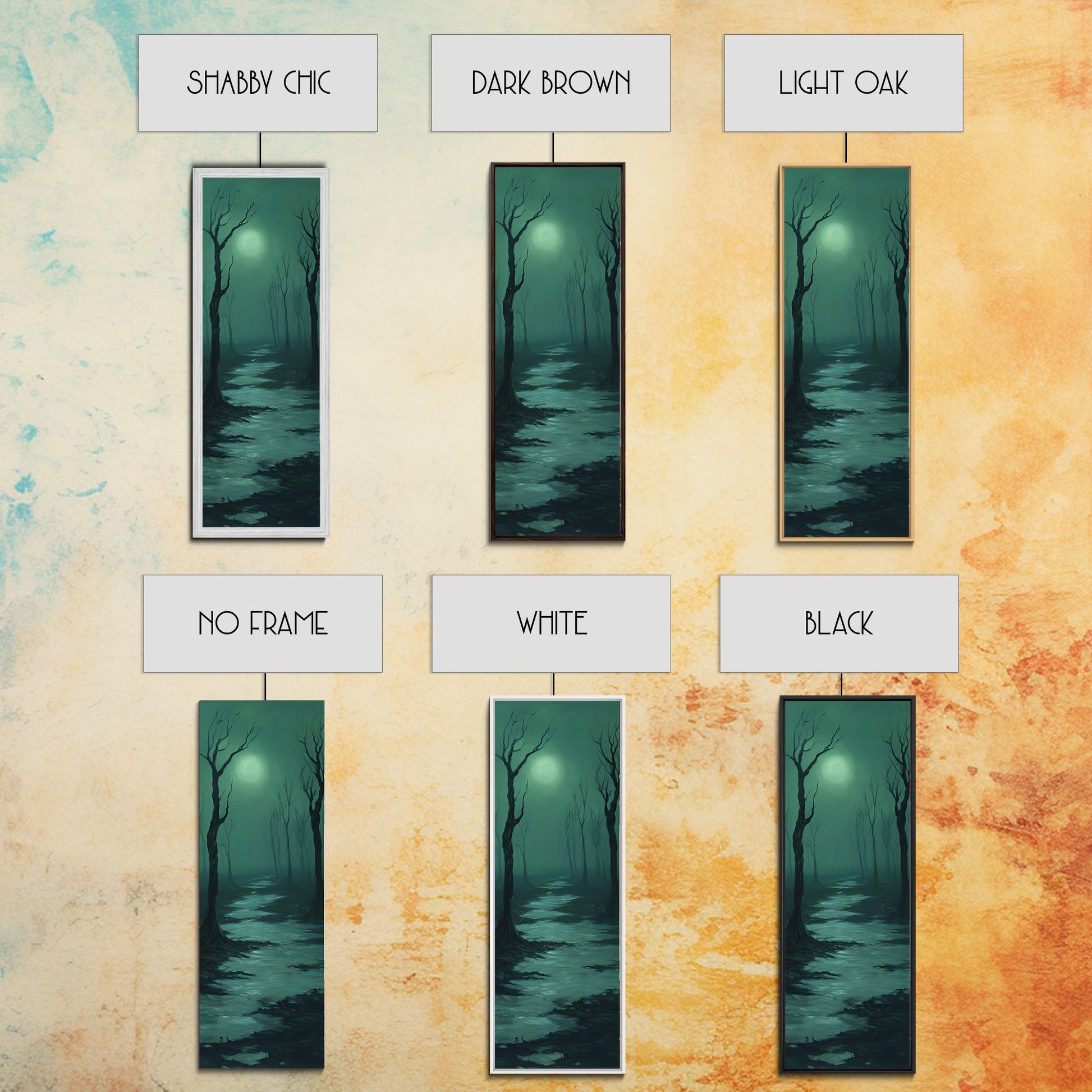 Framed Canvas Print of Forest at Dusk Painting in Teal, Moody Art, Dark Romance Painting, Above Bed Wall Art, Tall Narrow Art, Unique Gift Idea