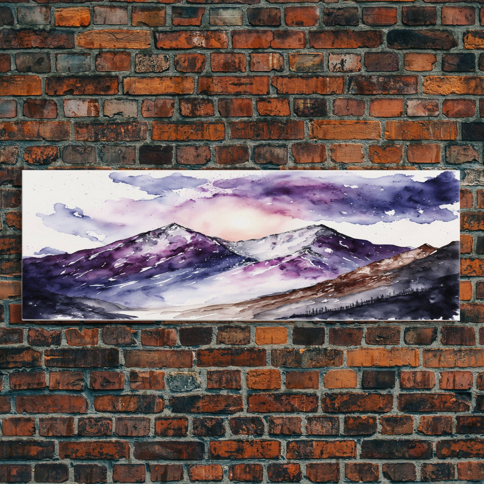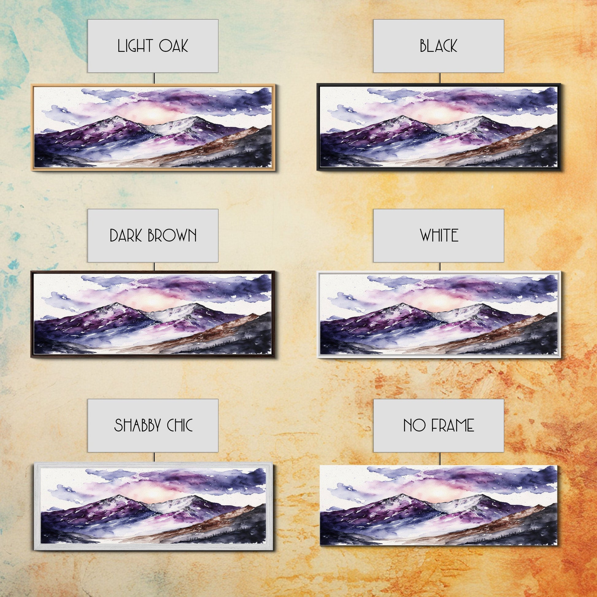 Framed Canvas Print of Majestic Mountain Landscape | Vibrant Hues | Watercolor Painting | Ready-to-Hang | Home Decor