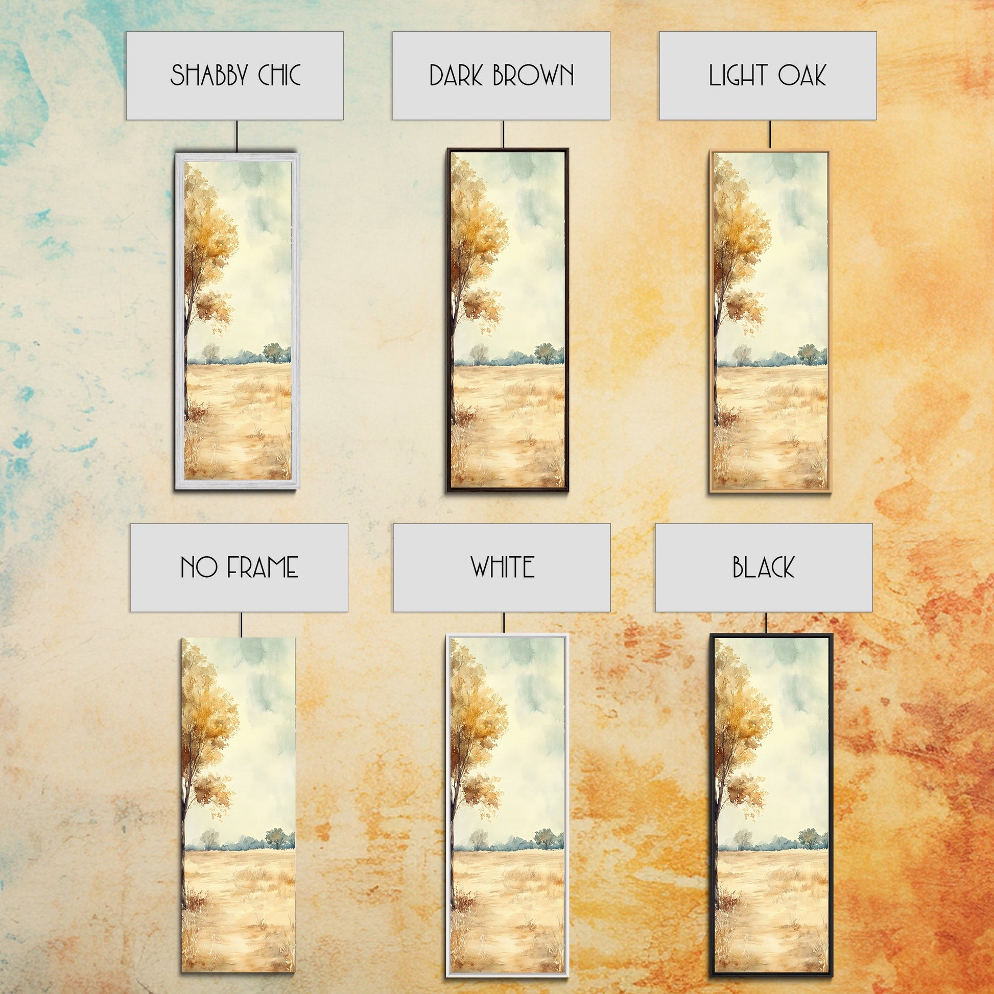 Framed Canvas Print of Oak Tree Art with Golden Autumn Leaves, Tall Skinny Art, Extra Wide Rustic Wall Art, Nature Gift Idea, Above Couch Decor