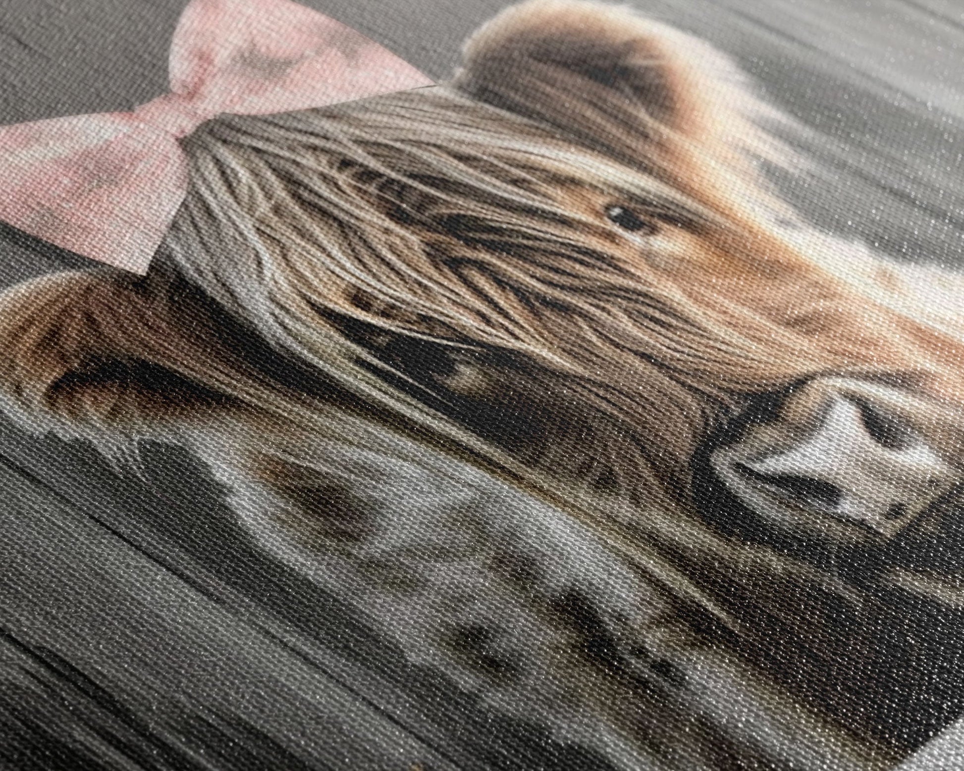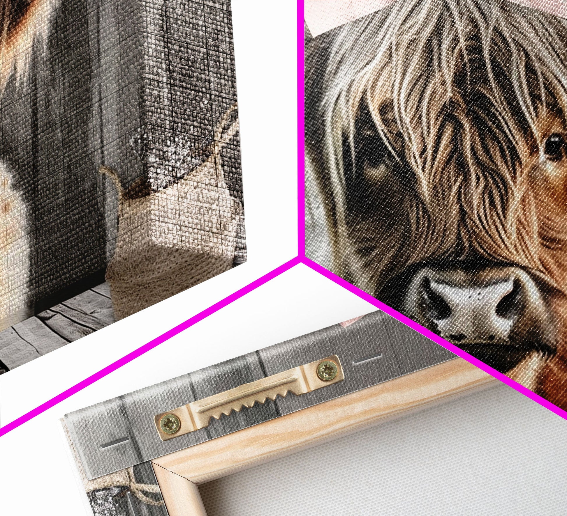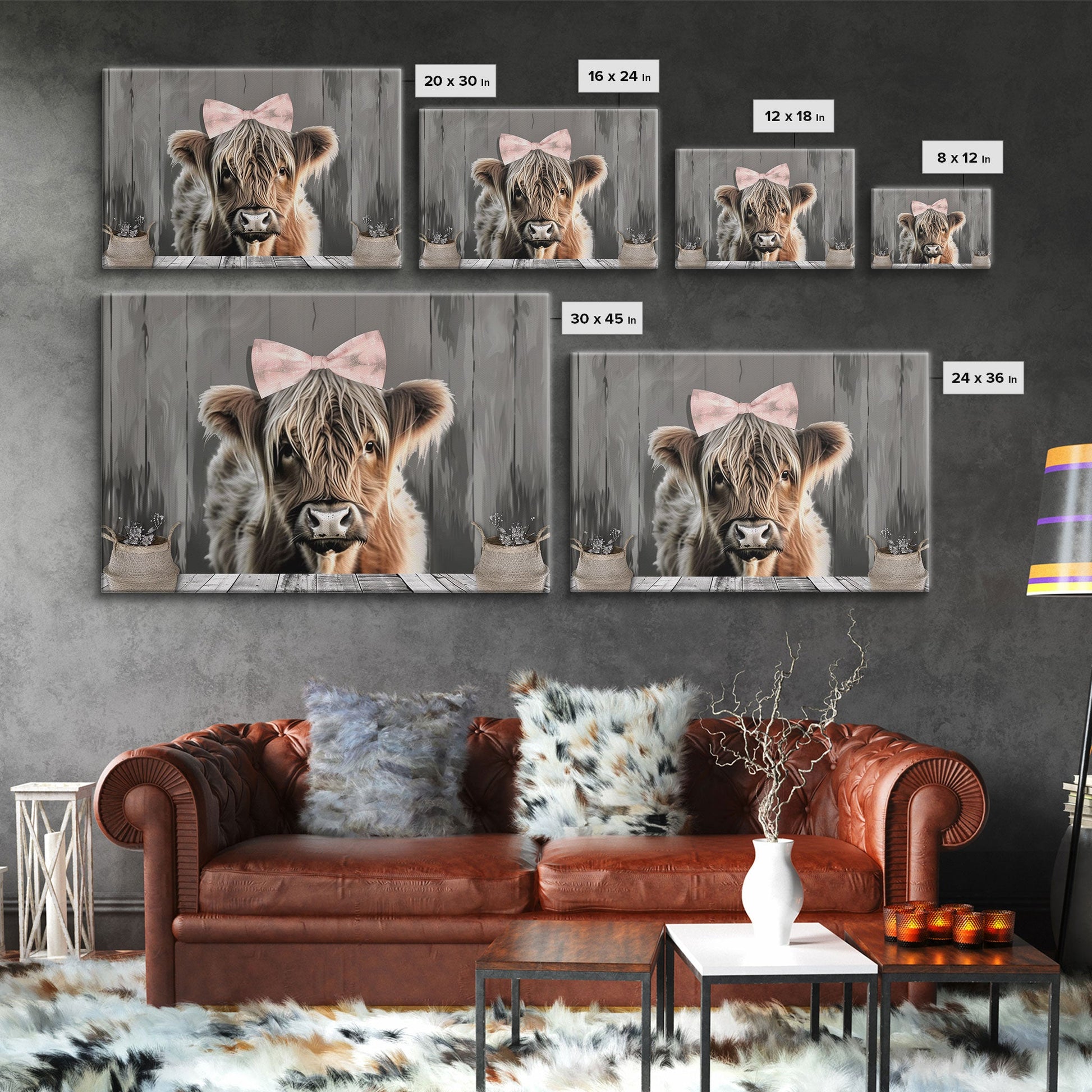 Framed Wall Art Texas Cattle, Wood Framed Canvas Print, Farmhouse Decor, Minimalist Rustic Farmhouse Painting, Cute Nursery Wall Art