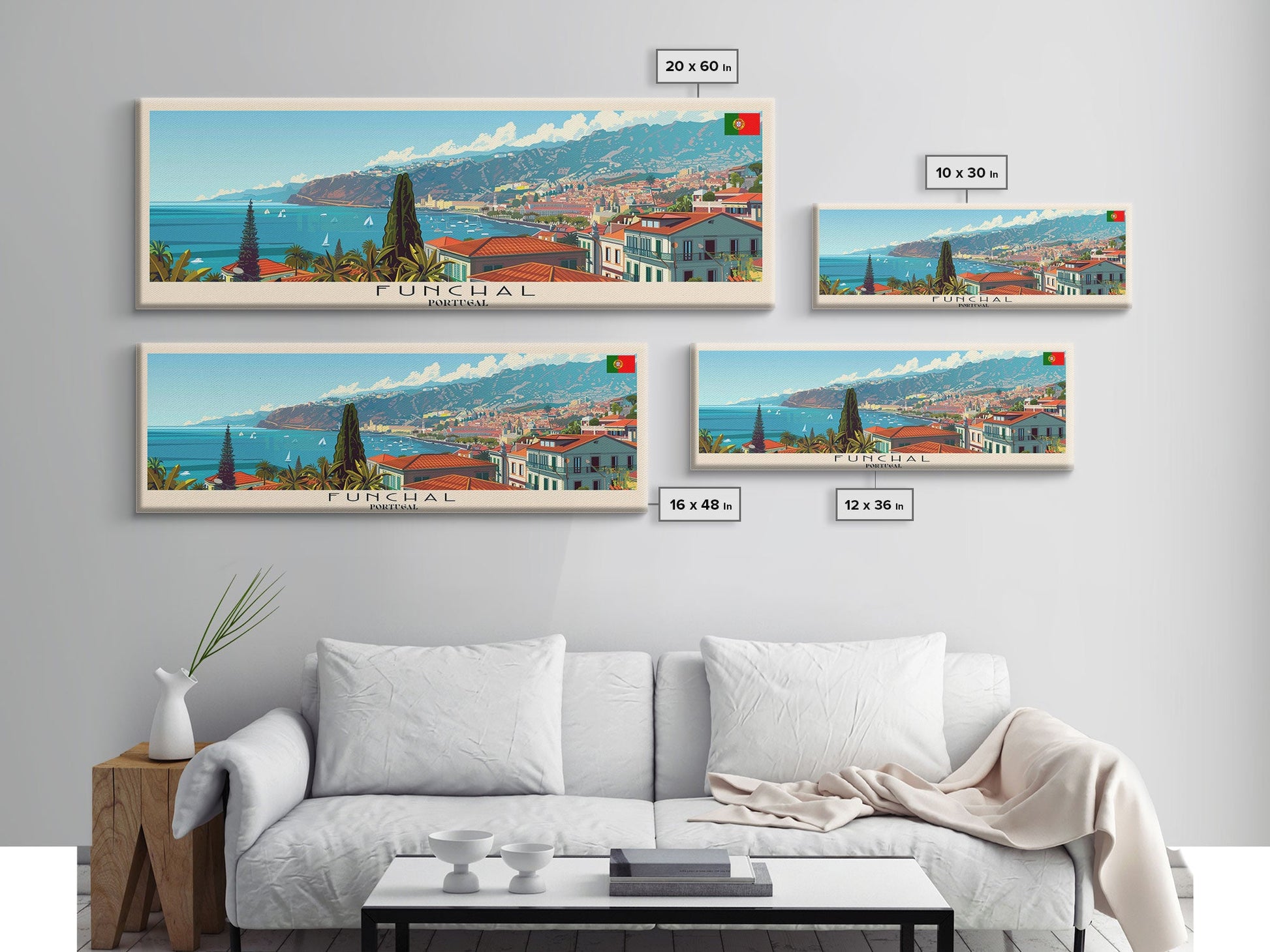 Funchal Portugal Travel Print Wall Art, Panoramic City Art, Travel Art, Wall Decor, Vacation Gift, Framed Canvas Print Or Metal Art