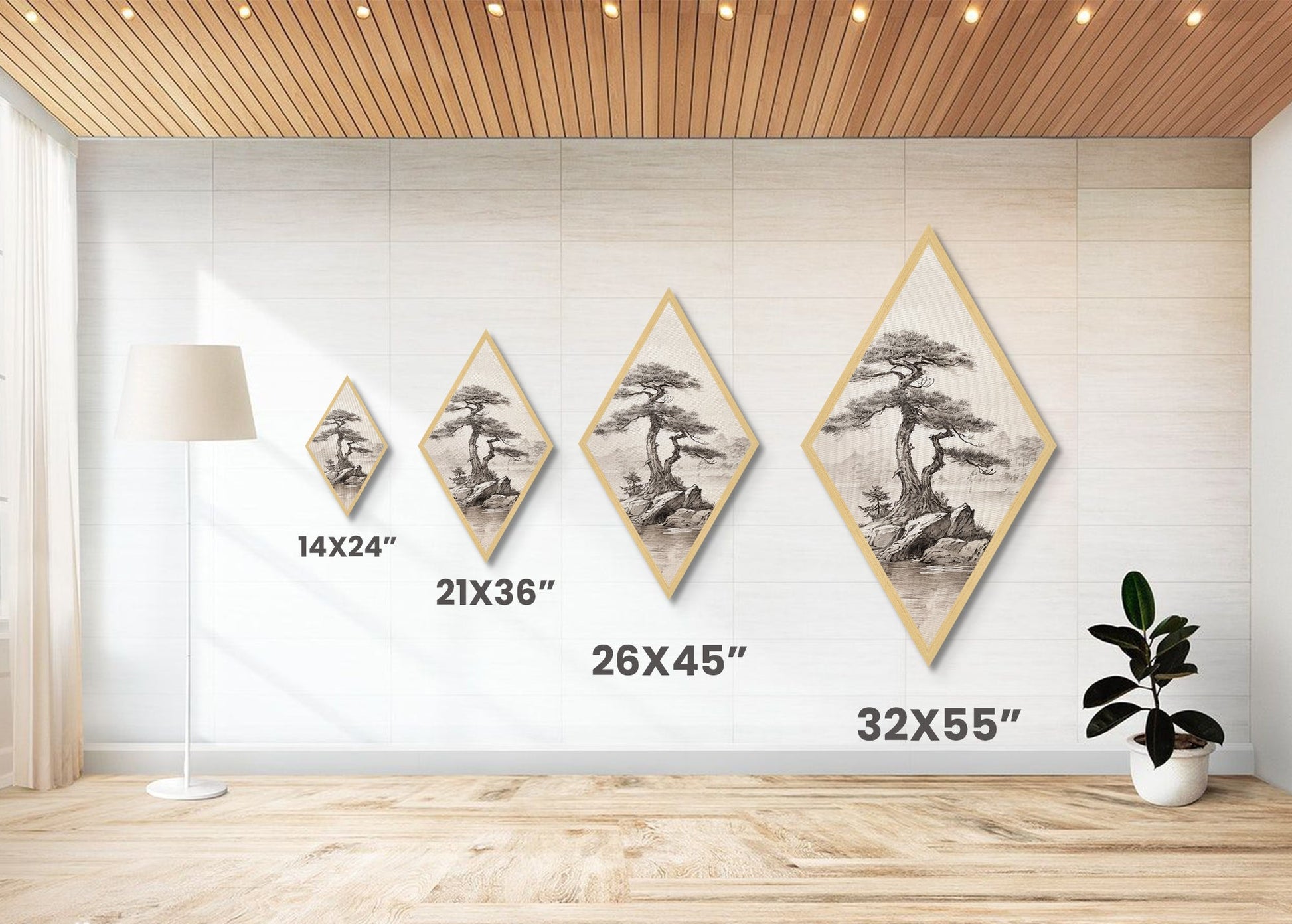 Funky Bonsai Tree Charcoal Sketch Canvas Art Print, Embossed Canvas Wall Art, Diamond Shaped Decor, Alternative Decor, Modern Art