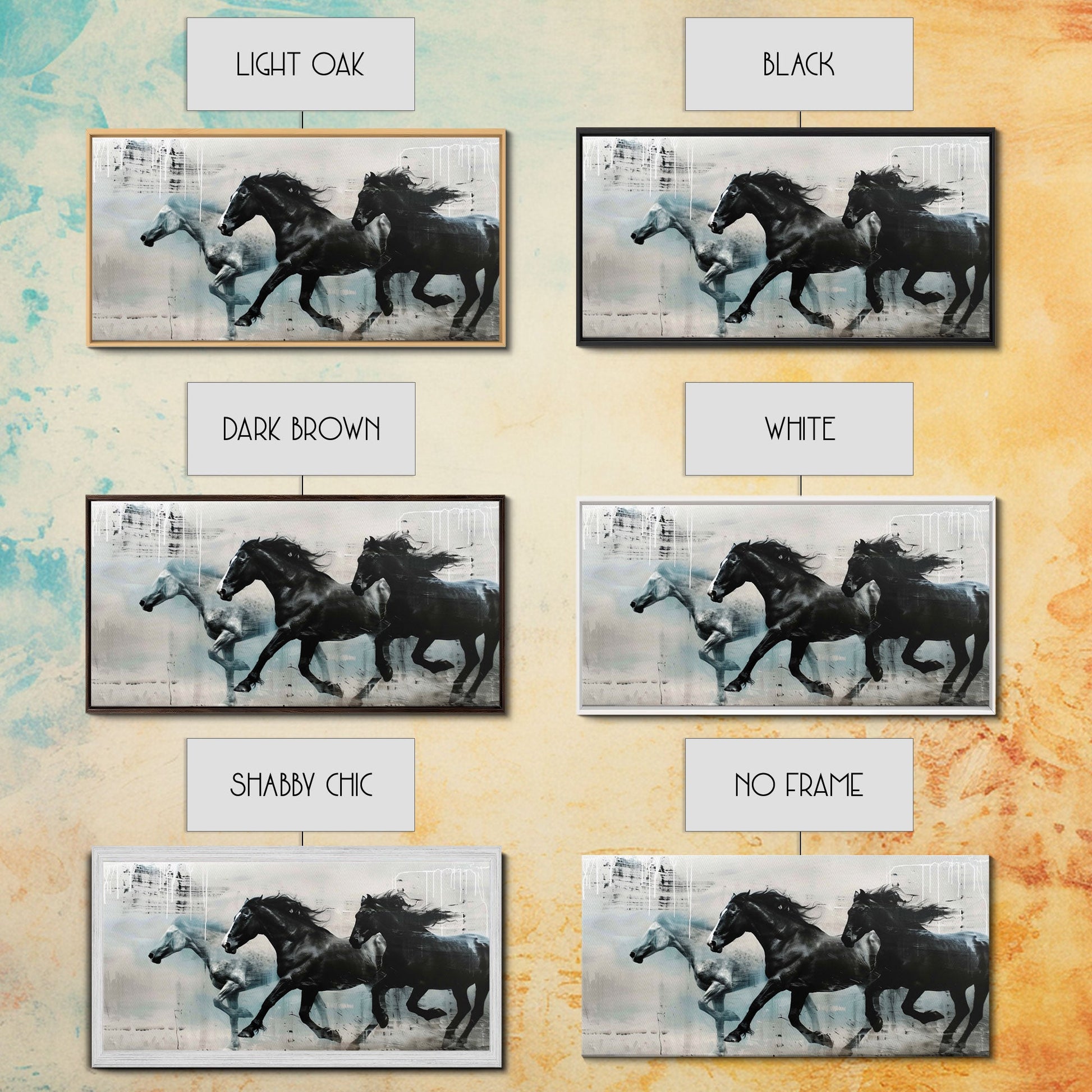 Galloping Horses in Monochrome Abstract Landscape, Perfect Wall Art, Framed Canvas Print for Living Room or Bedroom Decor, Equestrian Art