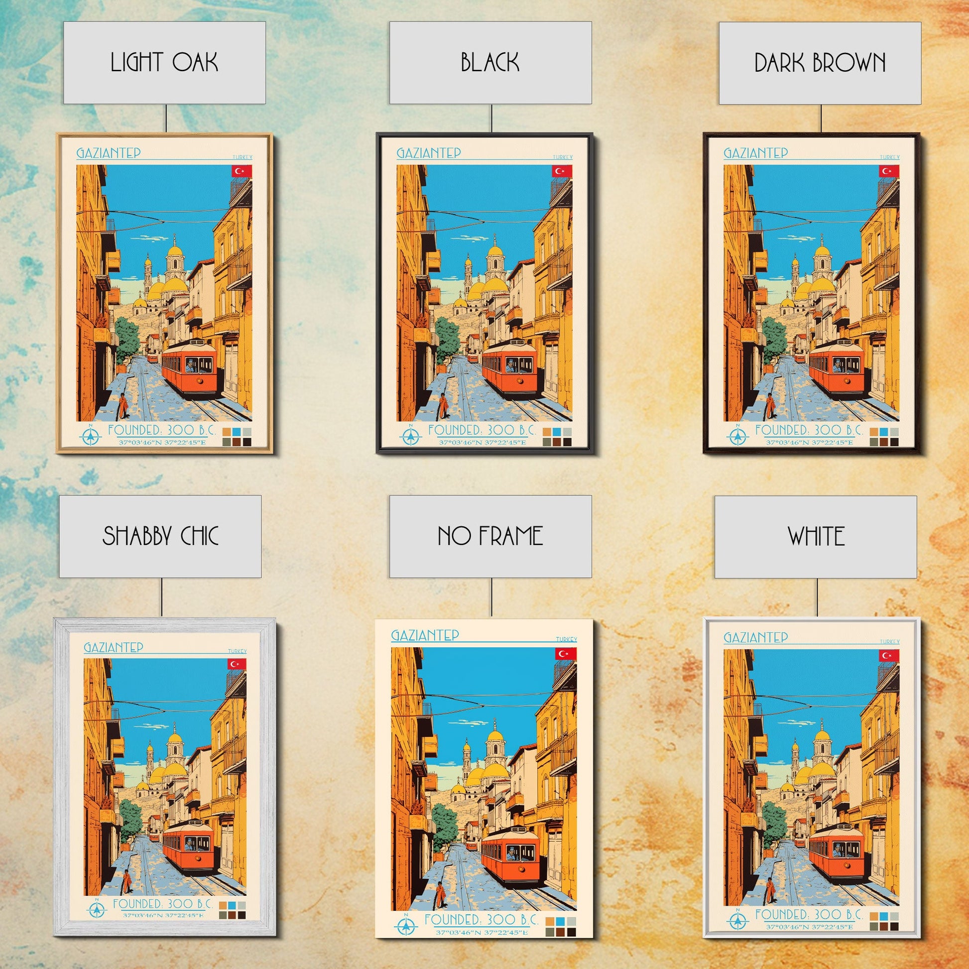 Gaziantep Turkey Travel Poster Framed Canvas Print, Midcentury Modern Art, Pop Art Wall Decor, Scenic Living Room Art, Bedroom Decor