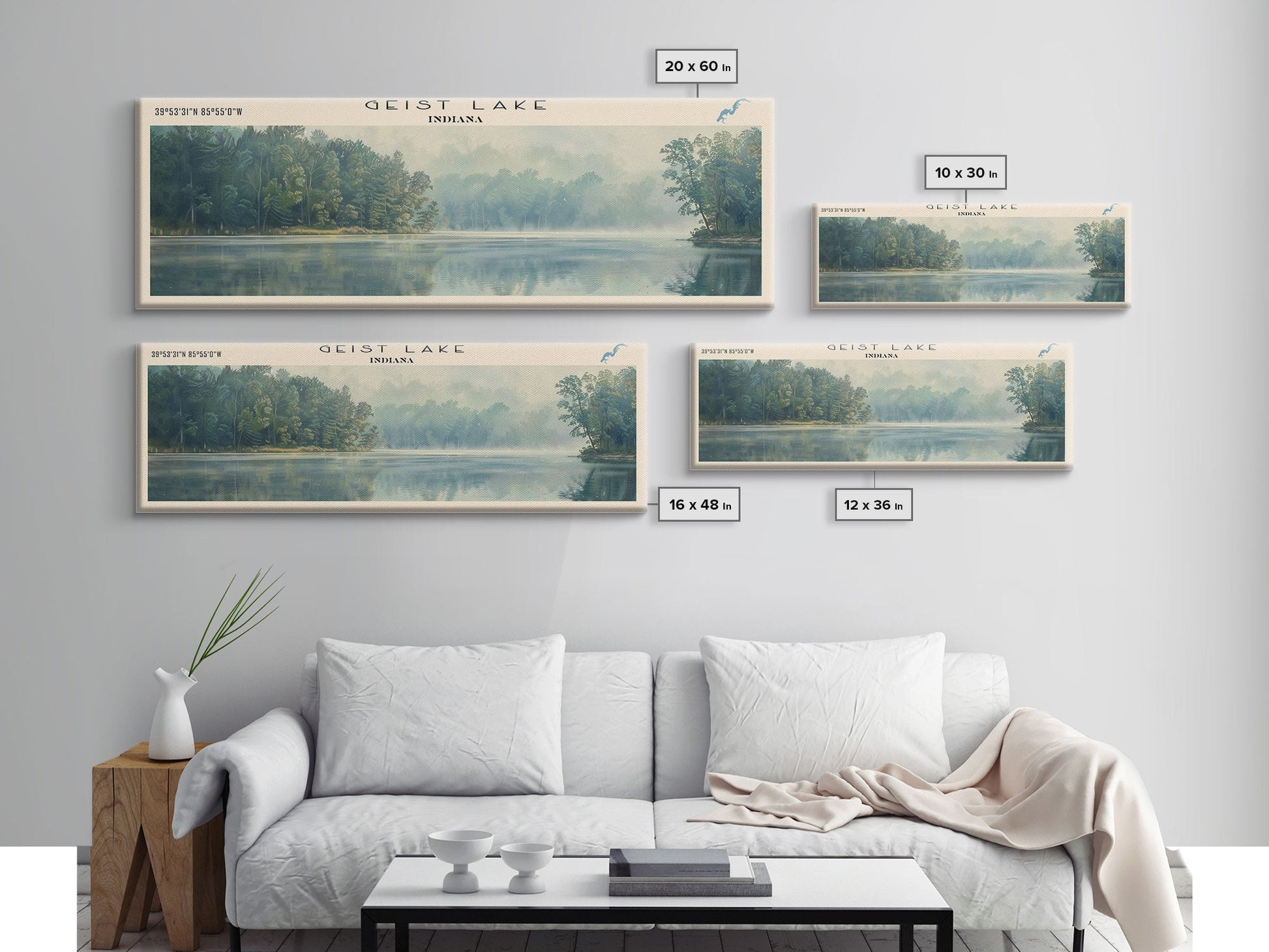 Geist Lake Indiana Framed Canvas Print, Panoramic Lake House Decor, Wall Art, Travel Poster, Peaceful Lake Painting, Nature Art