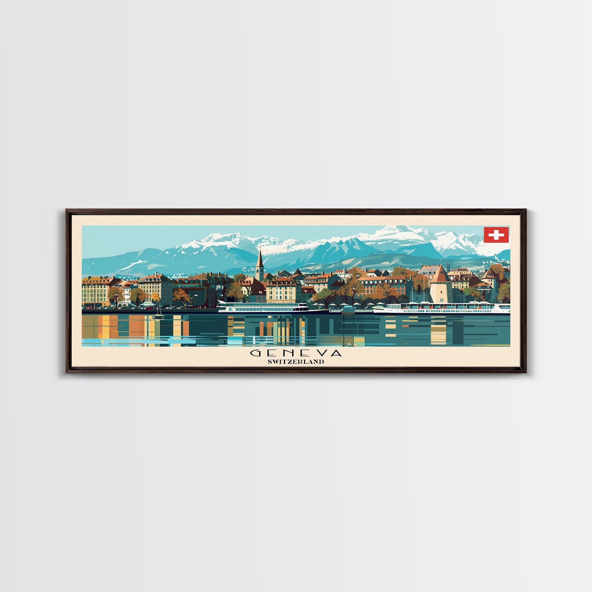 Geneva Switzerland Wall Art, Panoramic Travel Poster, Panoramic Framed Canvas Print, City Wall Art, Wall Hanging Home Decor, Travel Art