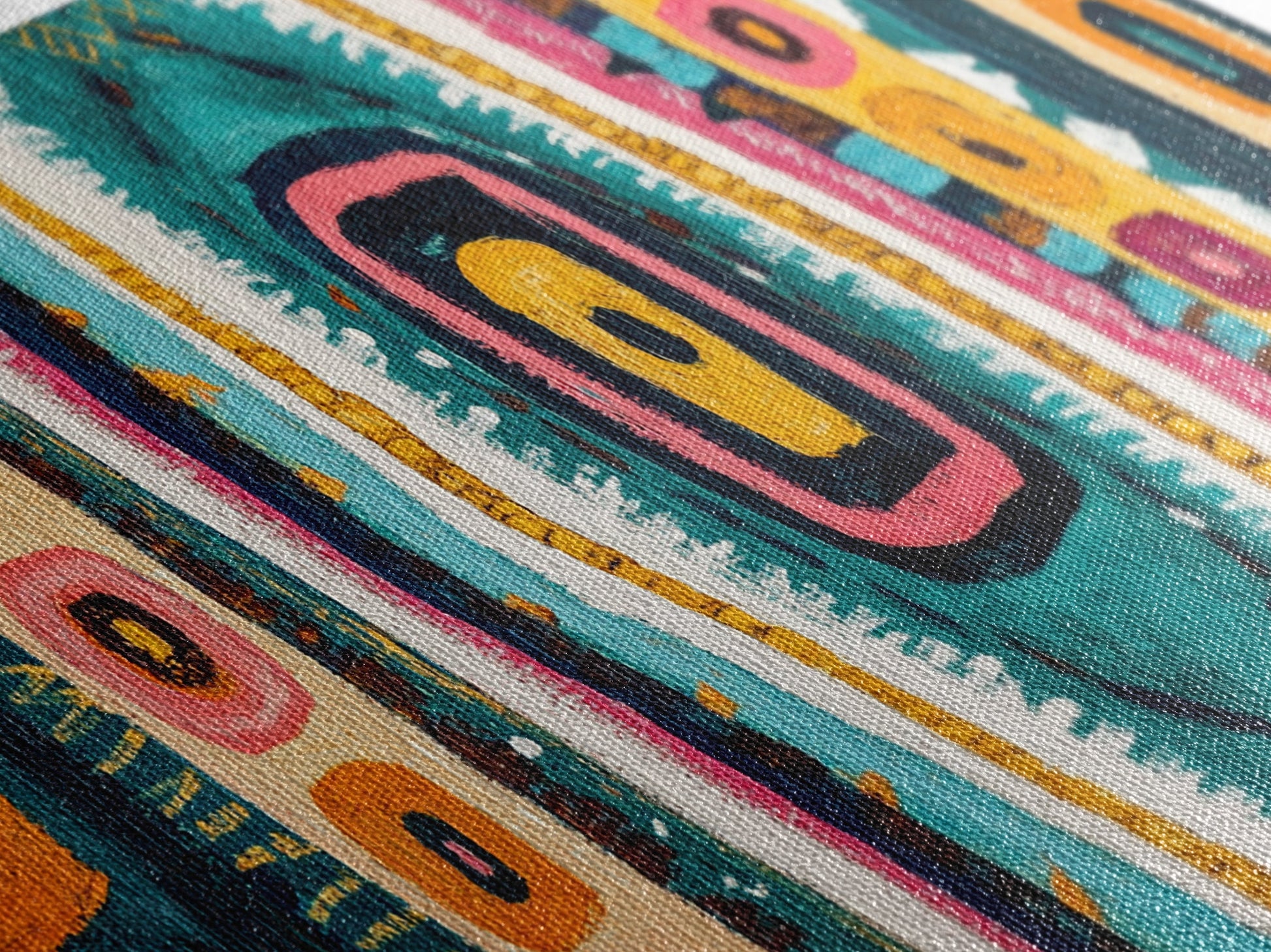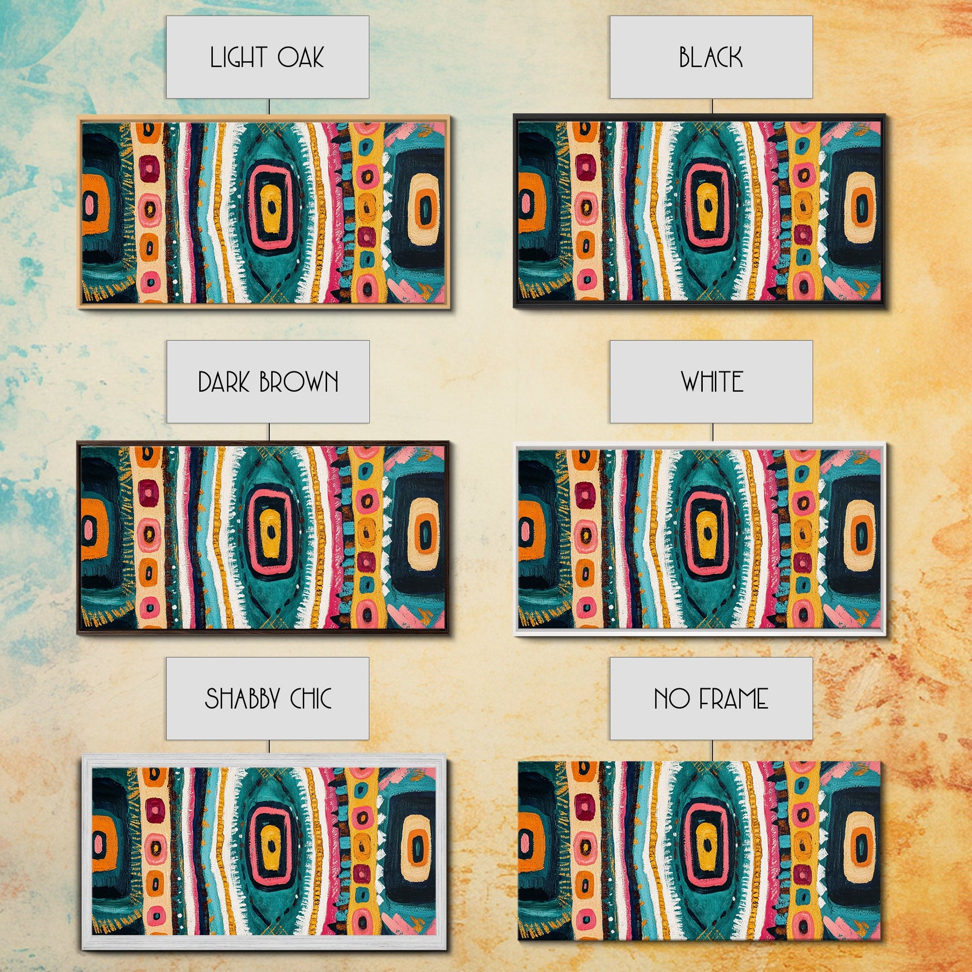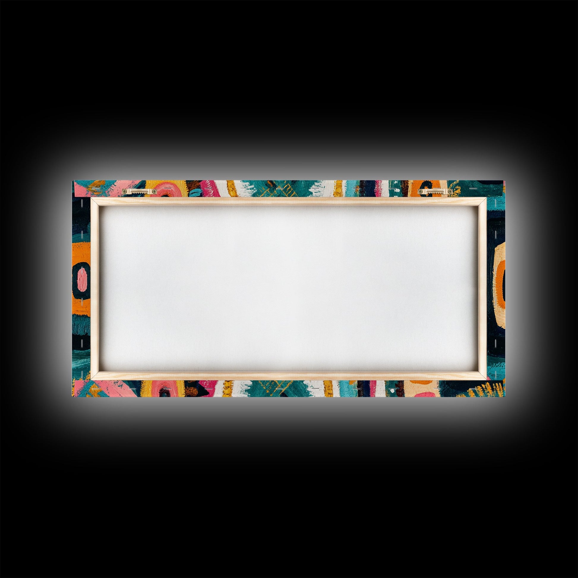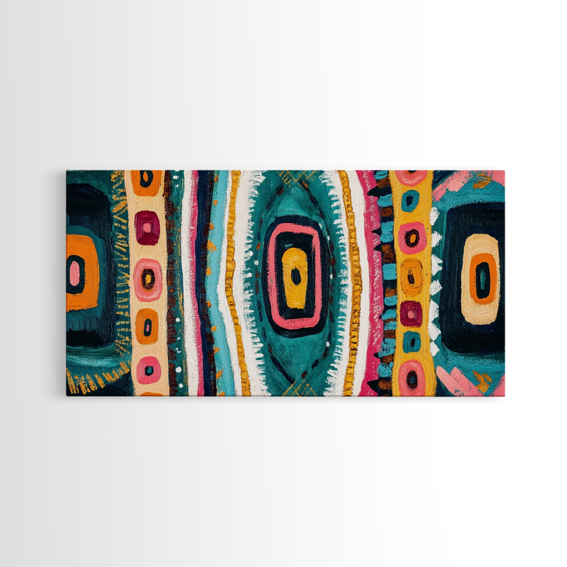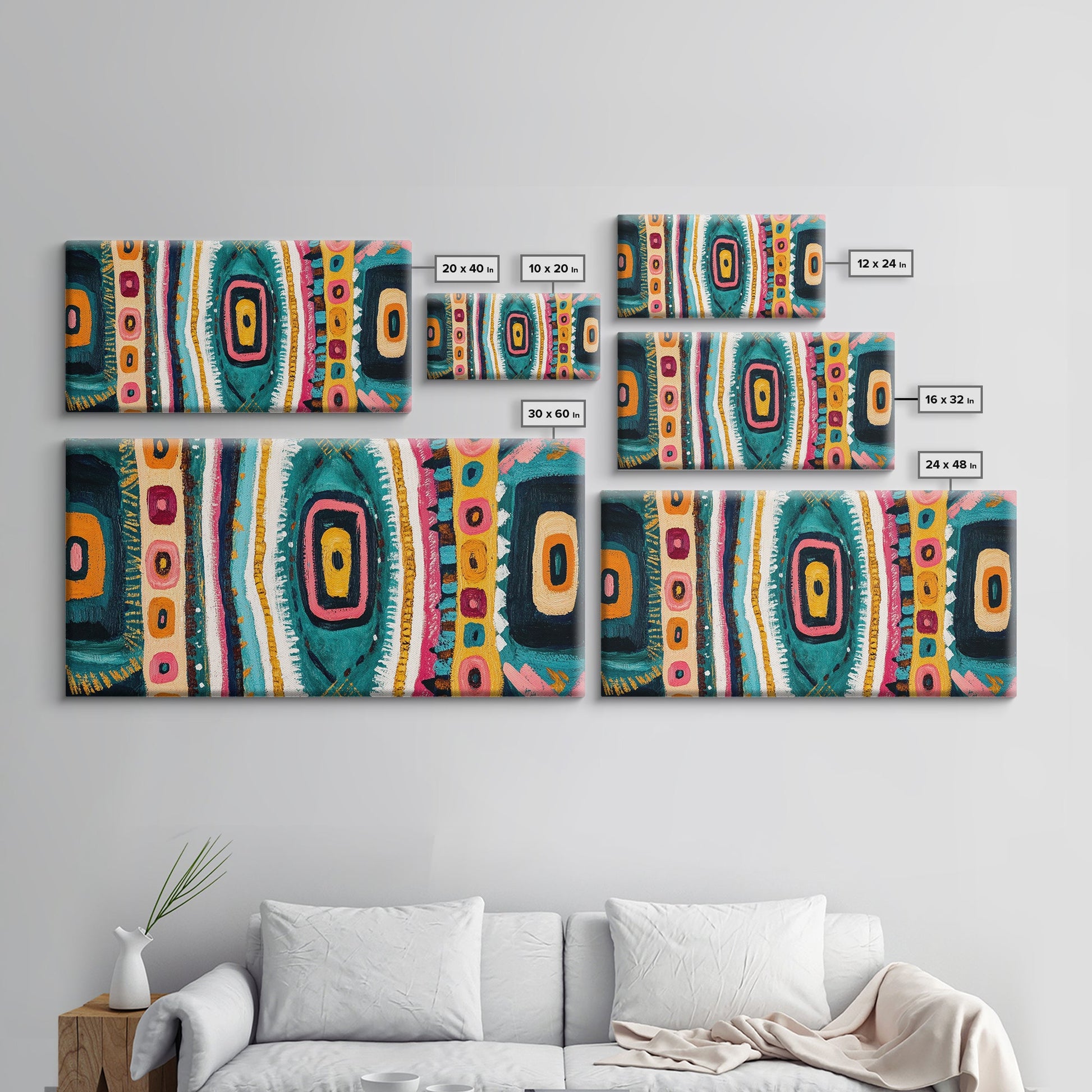 Geometric Abstract, bold colors, sacred geometry art, tribal design, vibrant patterns, extra wide art, Framed Canvas Print, boho art