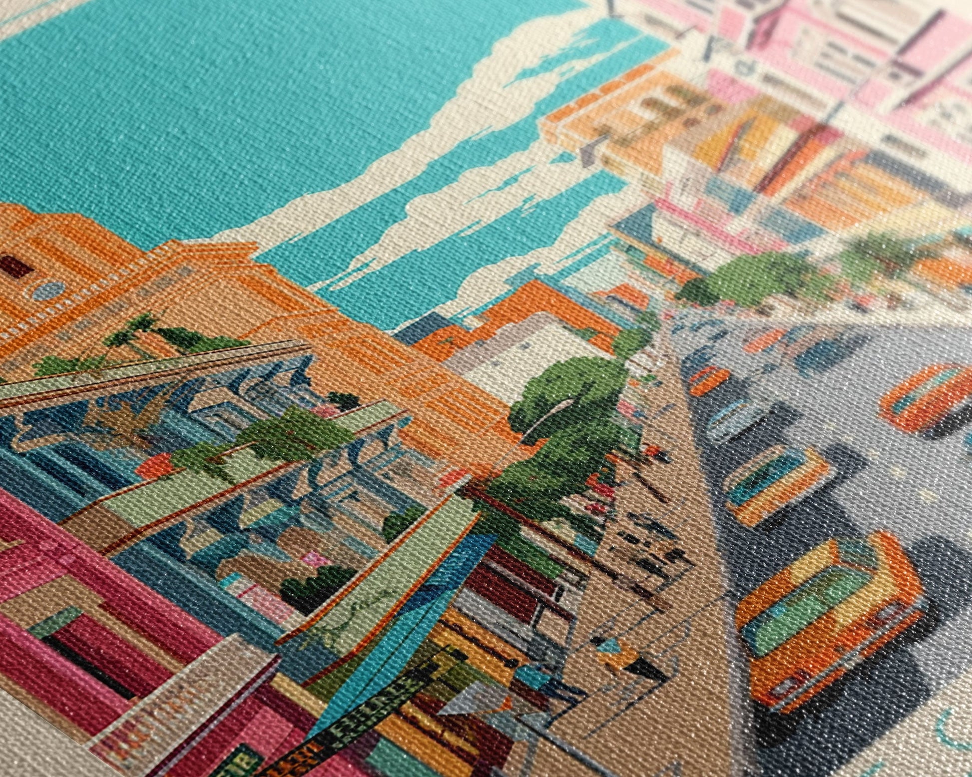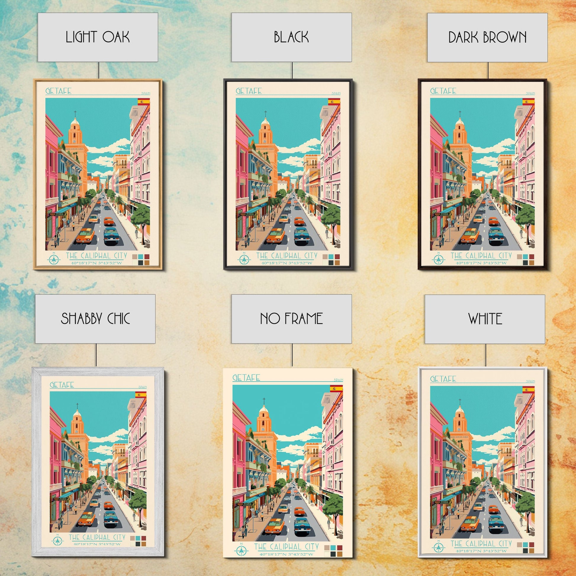 Getafe Spain Travel Poster Framed Canvas Print, Midcentury Modern Art, Pop Art Wall Decor, Scenic Wall Art, Bedroom Decoration