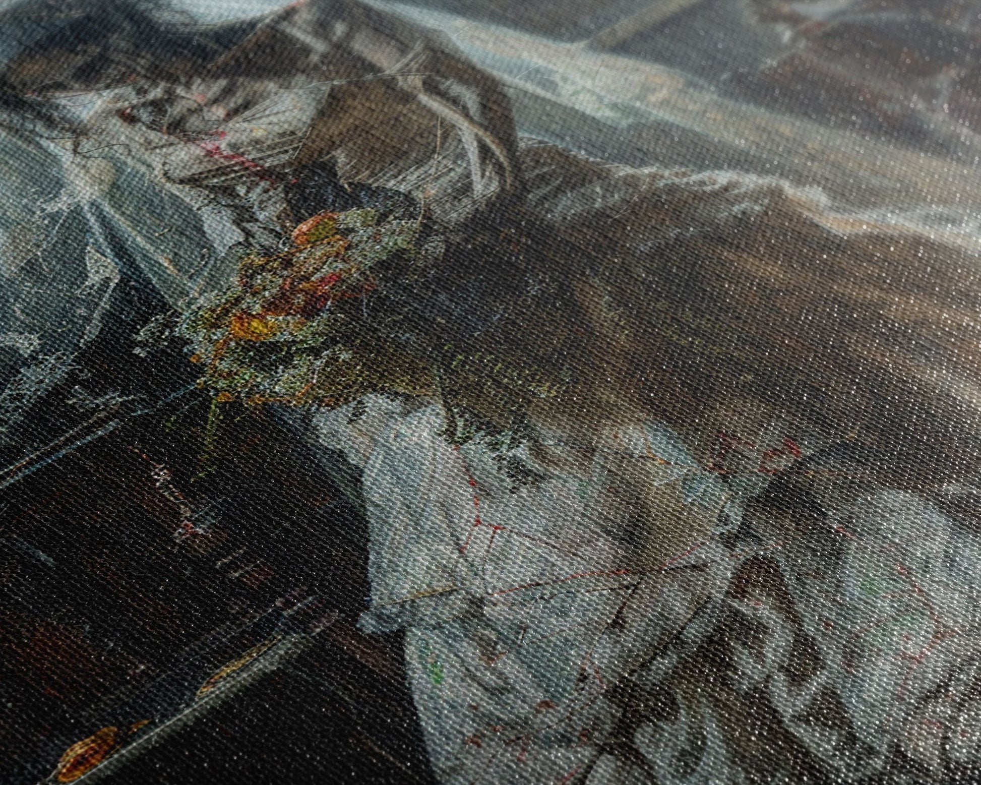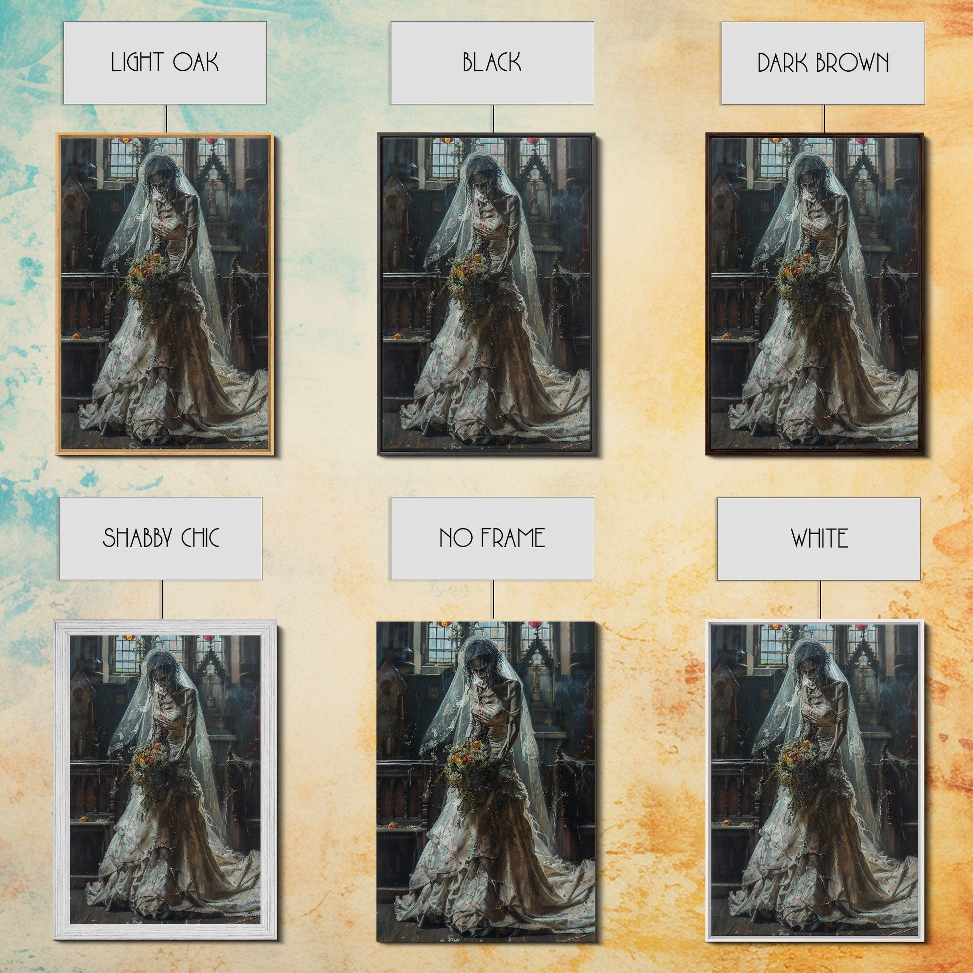 Ghostly Bride in Abandoned Church Framed Canvas Print | Halloween Bride Art | Eerie Bride Decor for Home | Haunted Wedding Artwork