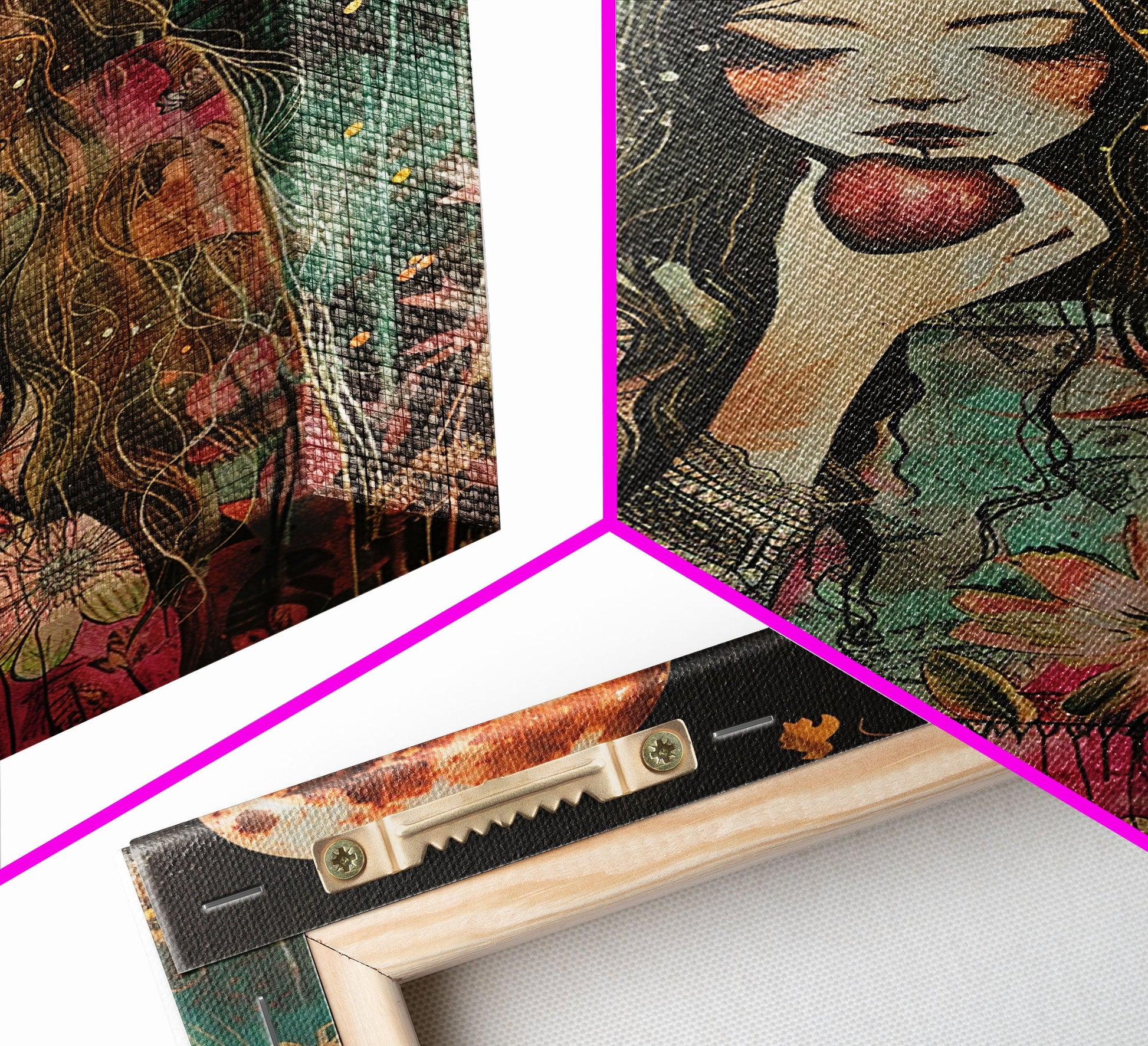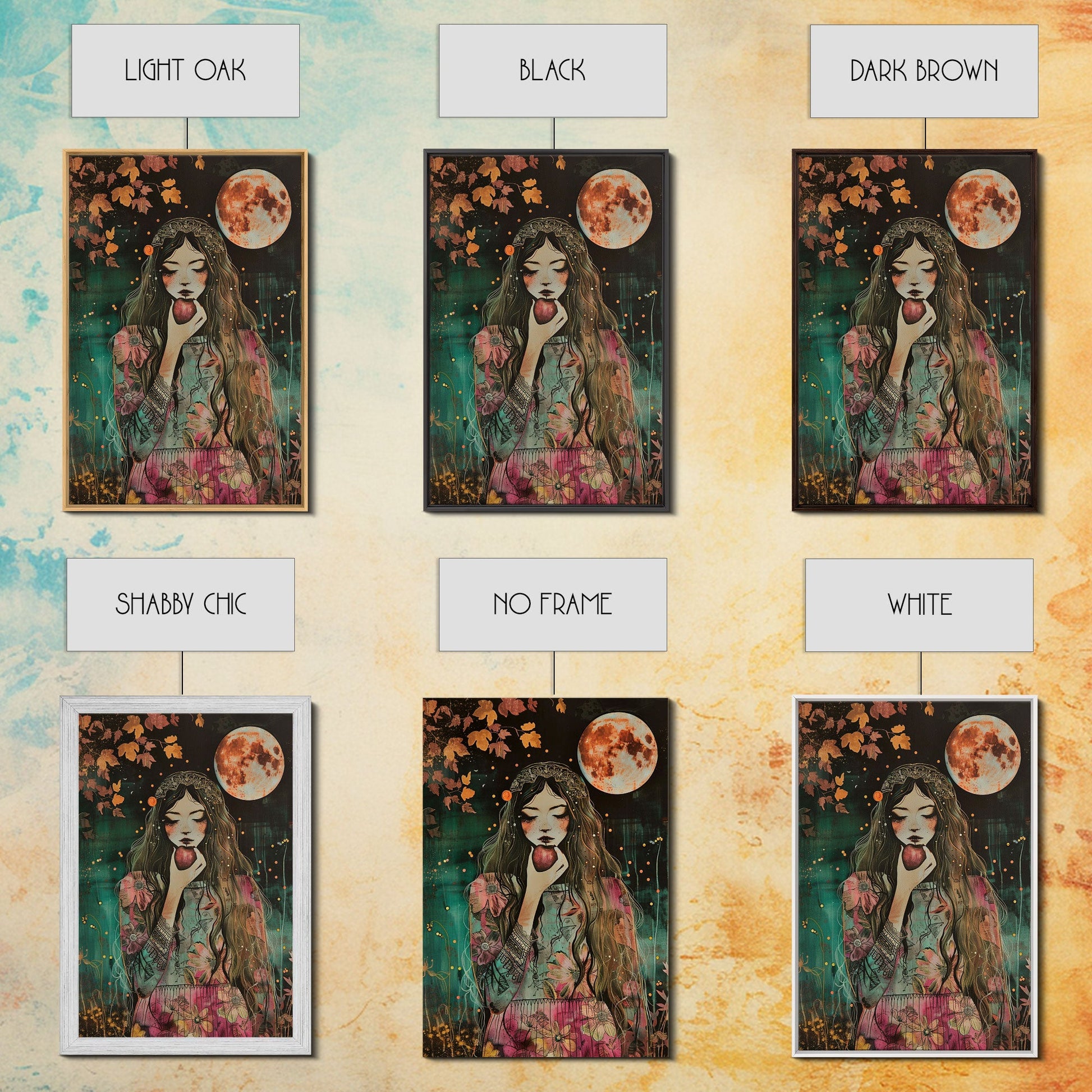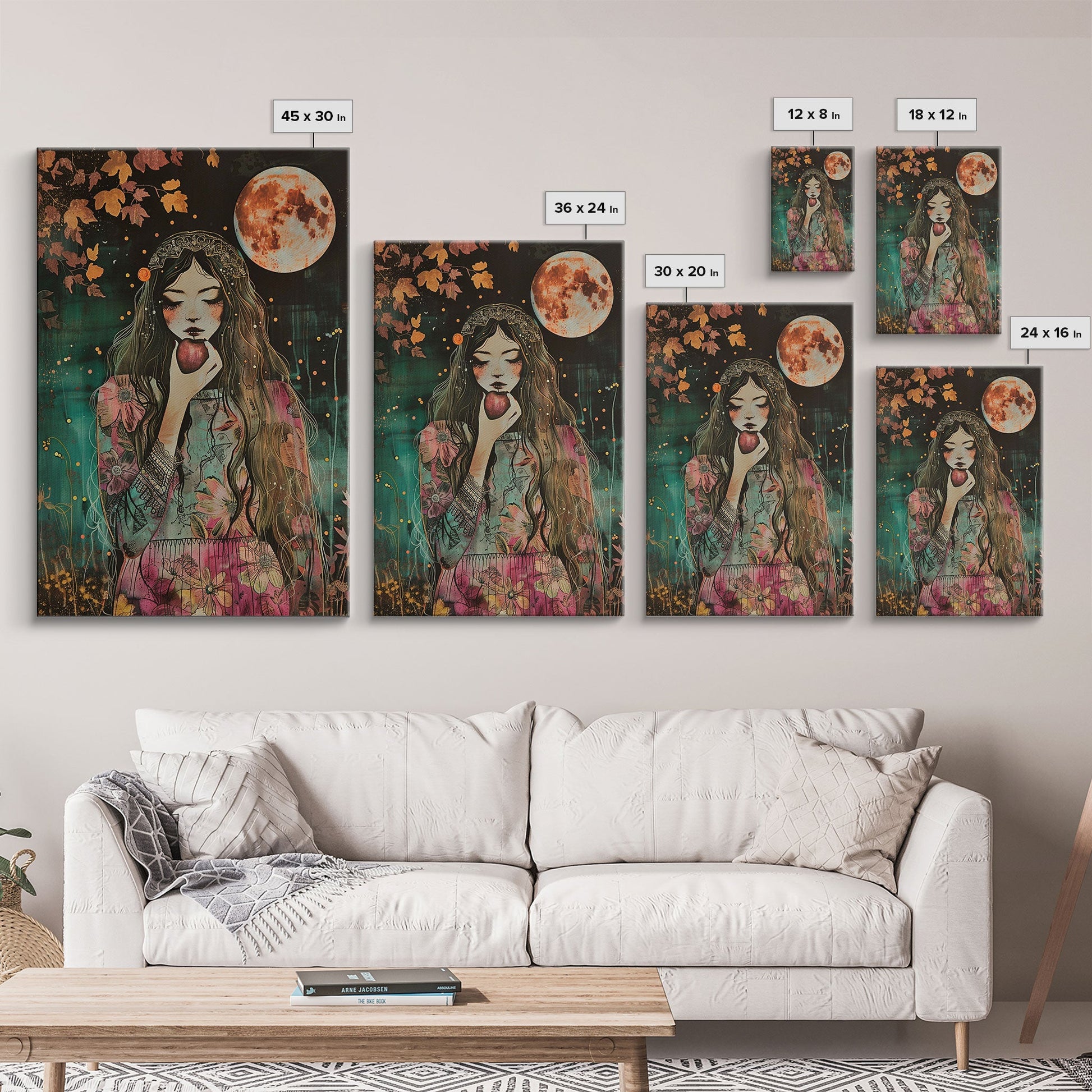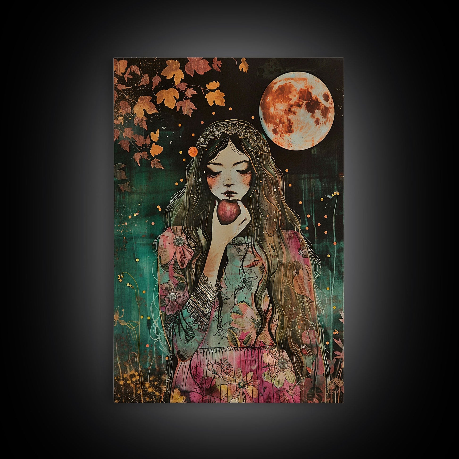 Ghostly Witch With Red Apple, Framed Canvas Print, Wall Art, Spooky Decor, Halloween Decoration, Living Room Art, Unique Gift
