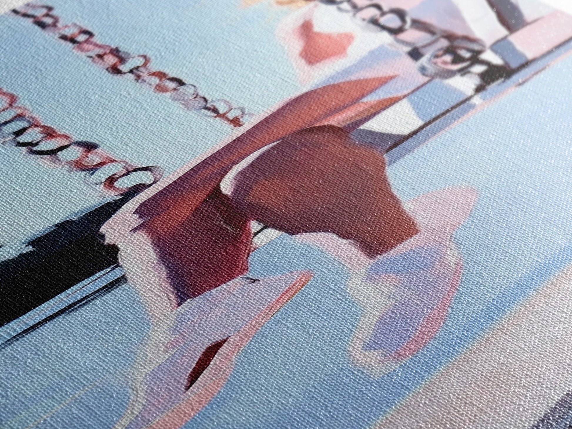 Girl on Swing, Soft Pastel Art, Minimalist Decor, Canvas Print, Whimsical Wall Art, Bedroom Aesthetic, Contemporary Art, Dreamy Home