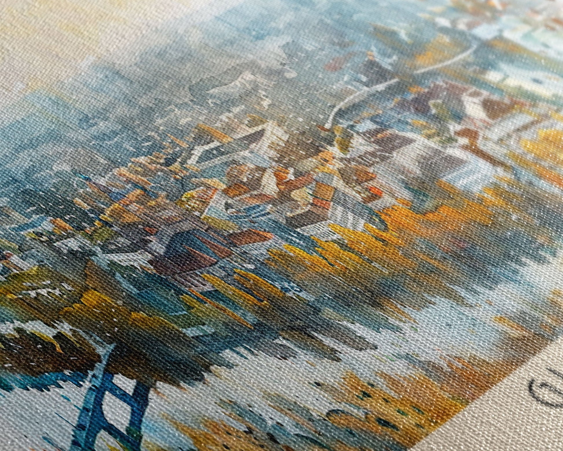 Most of our canvases are made in the USA, with the exception of canvases ordered with the light oak unstained frames, and any large canvases (24x48, 30x60, 16x48 and 20x60) ordered WITH a frame. These are temporarily made in and shipped from Europe, while we try to find a more consistent supplier in the USA.