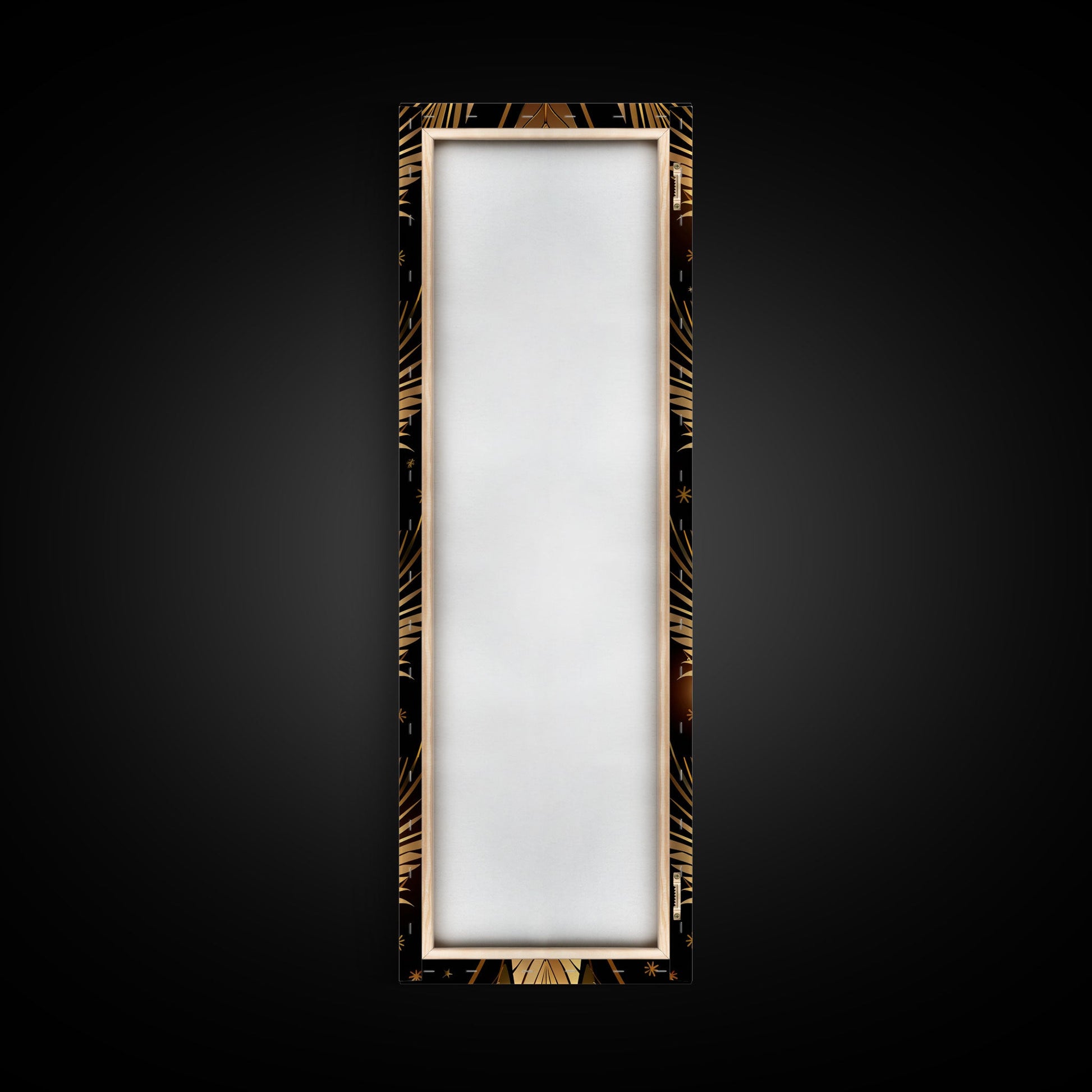 Gold Leaf Pattern on Black Background - Framed Canvas Print, Midcentury Modern Art, Skinny Art, Tall Art, Living Room Wall Decor, Minimalist Art