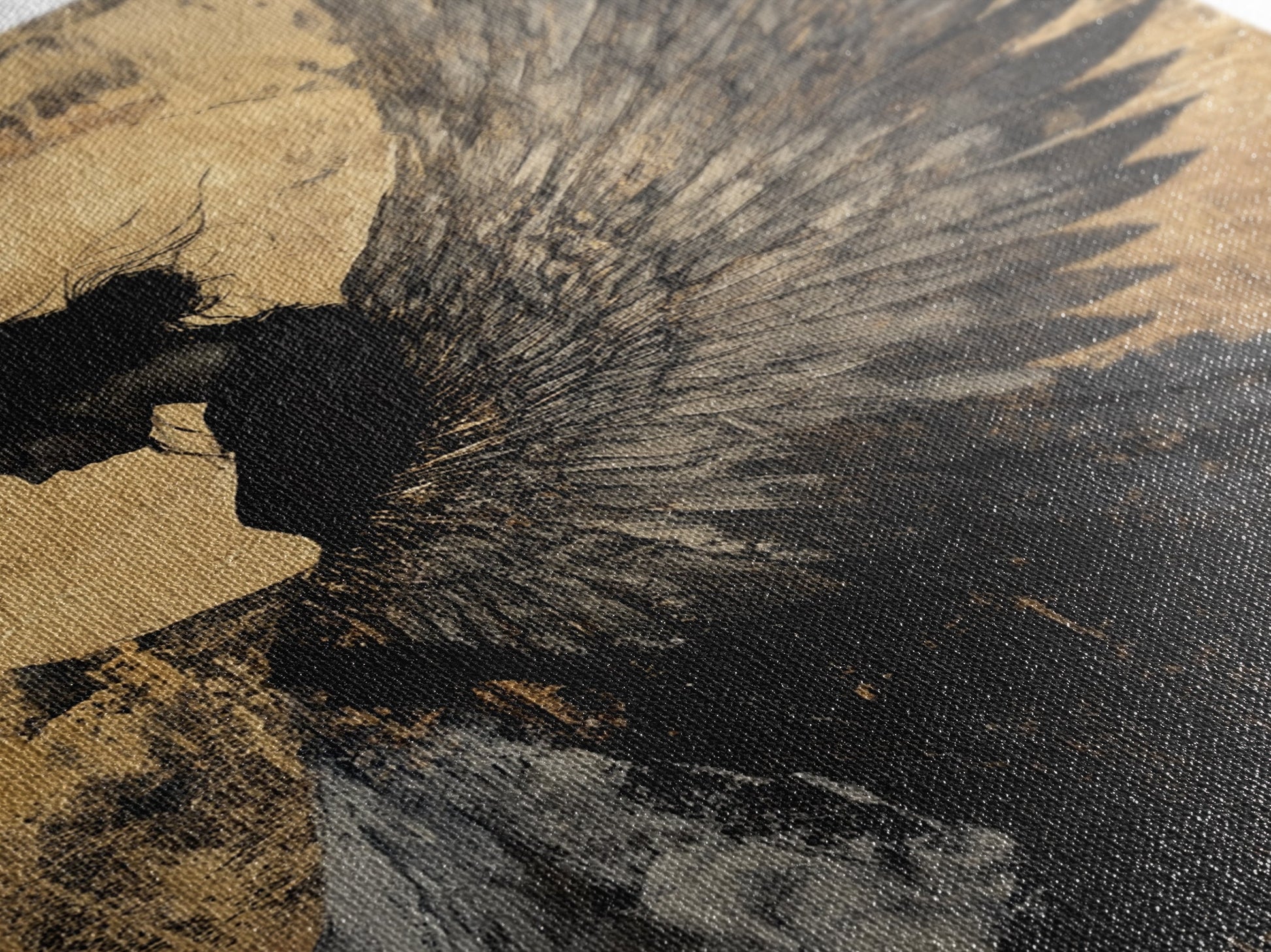 Golden Angel Wings Framed Canvas Print Dark Angel Wall Art Moody Gothic Artwork Gold Abstract Print Rustic Wall Decor Gift Idea