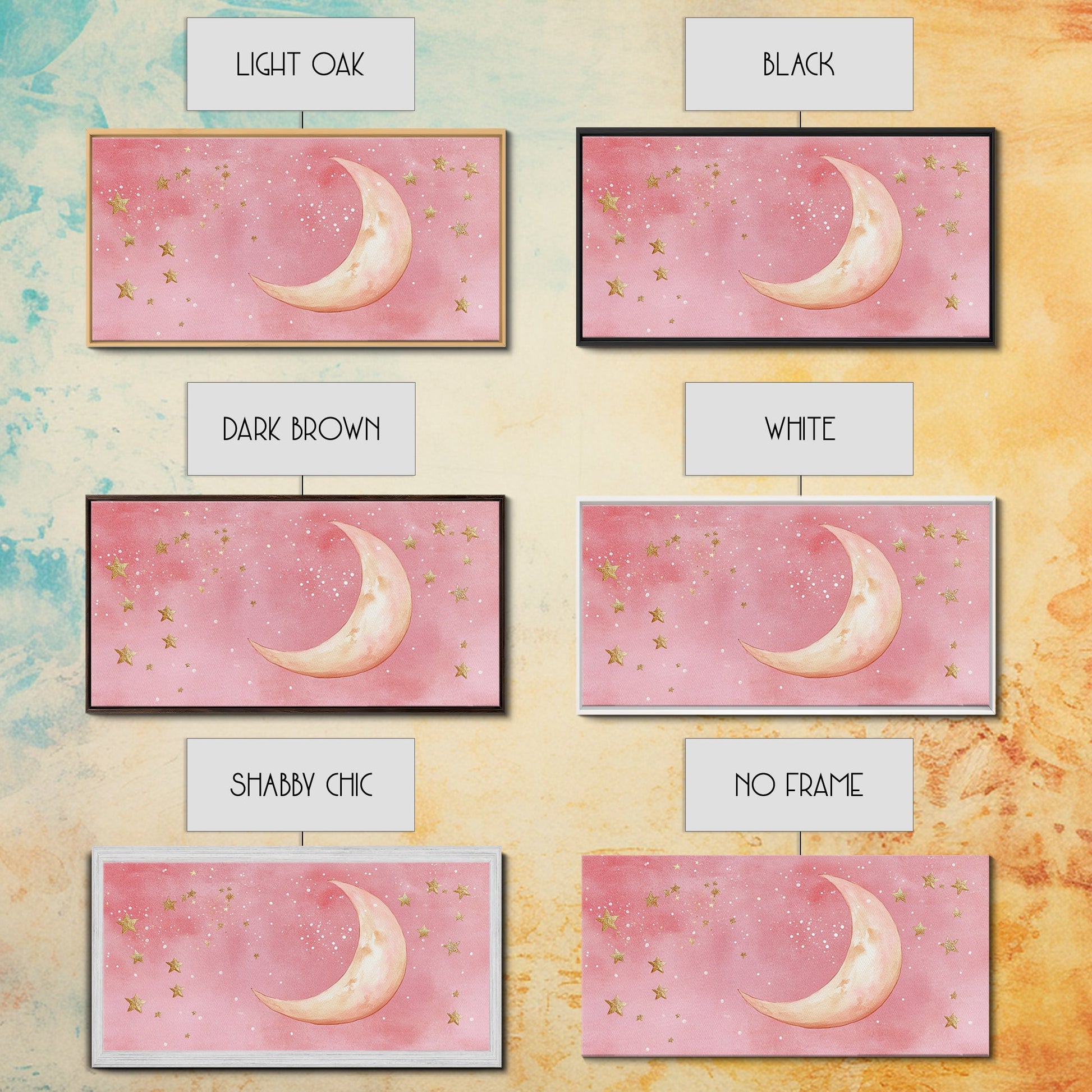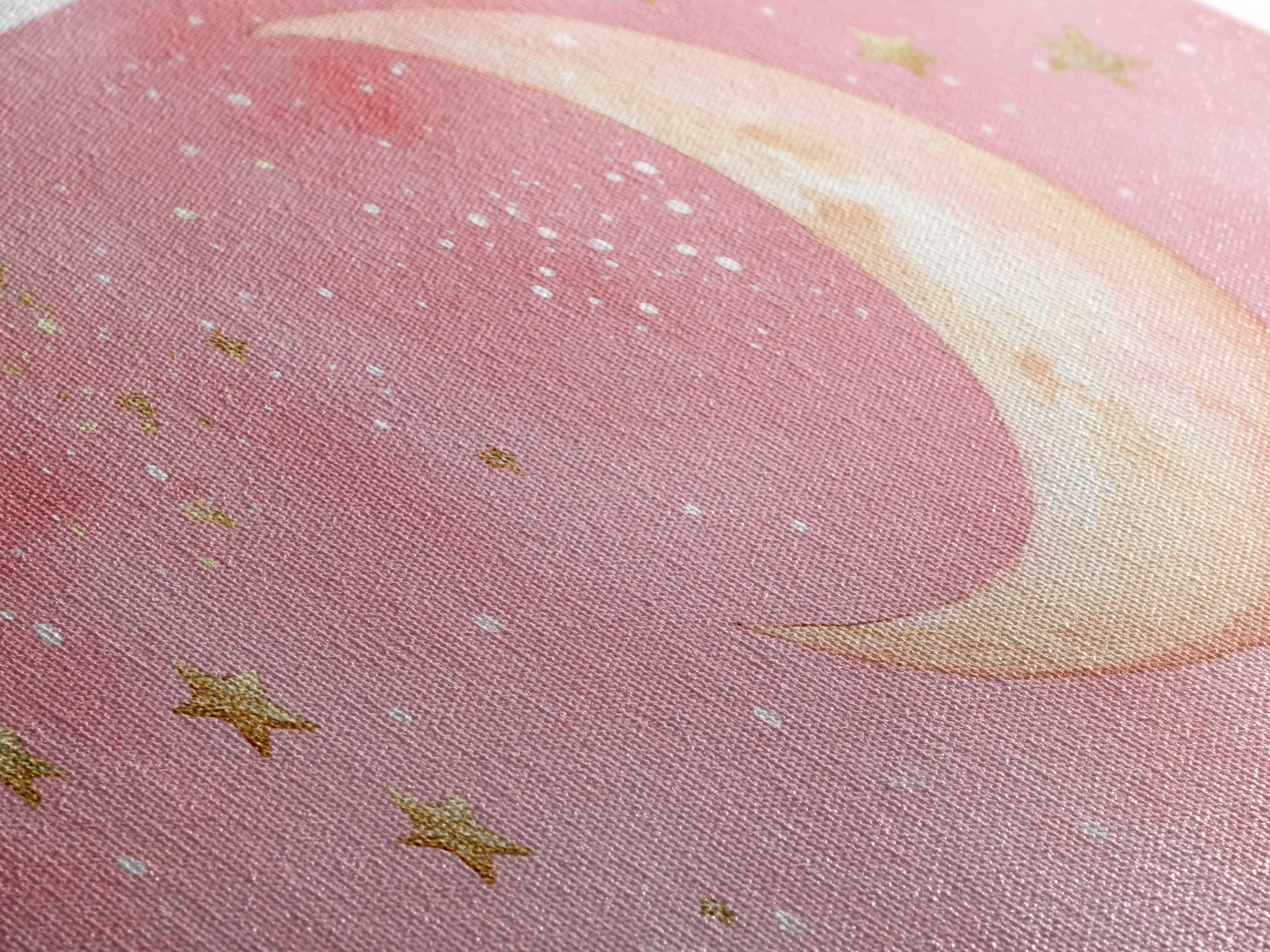 Golden Crescent Moon Canvas Print, Light Pink Wall Art, Whimsical Celestial Art, Bedroom or Dorm Decor, Christmas Gift Idea