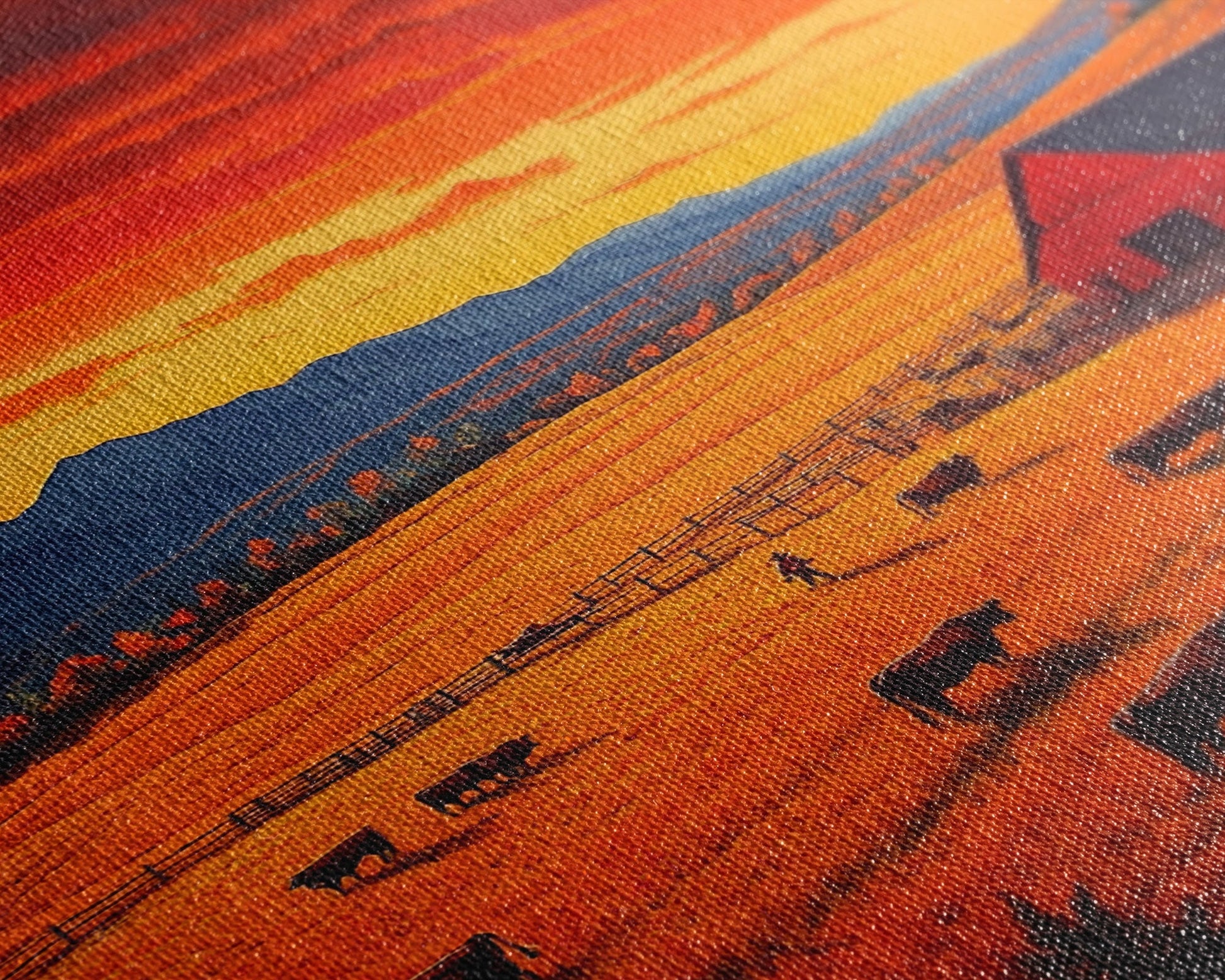 Most of our canvases are made in the USA, with the exception of canvases ordered with the light oak unstained frames, and any large canvases (24x48, 30x60, 16x48 and 20x60) ordered WITH a frame. These are temporarily made in and shipped from Europe, while we try to find a more consistent supplier in the USA.