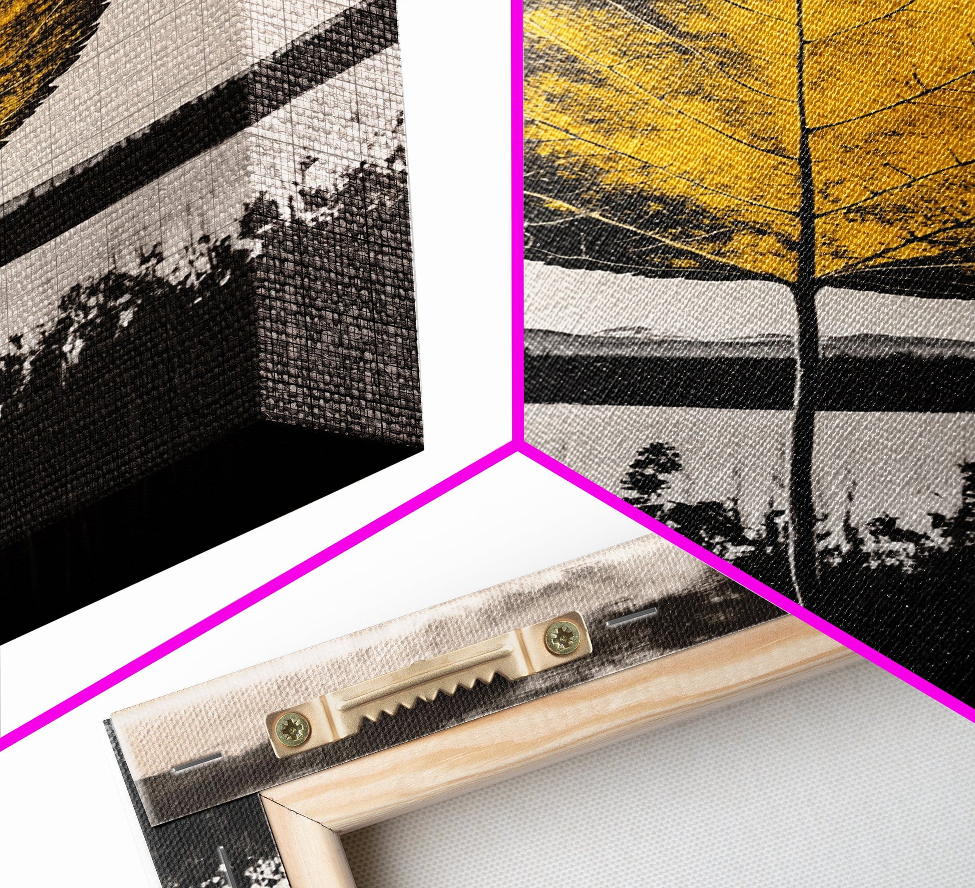 Golden Leaf, Minimalist Nature, Autumn Wall Art, Botanical Decor, Framed Canvas Print, Living Room Art, Black and White, Nature Print