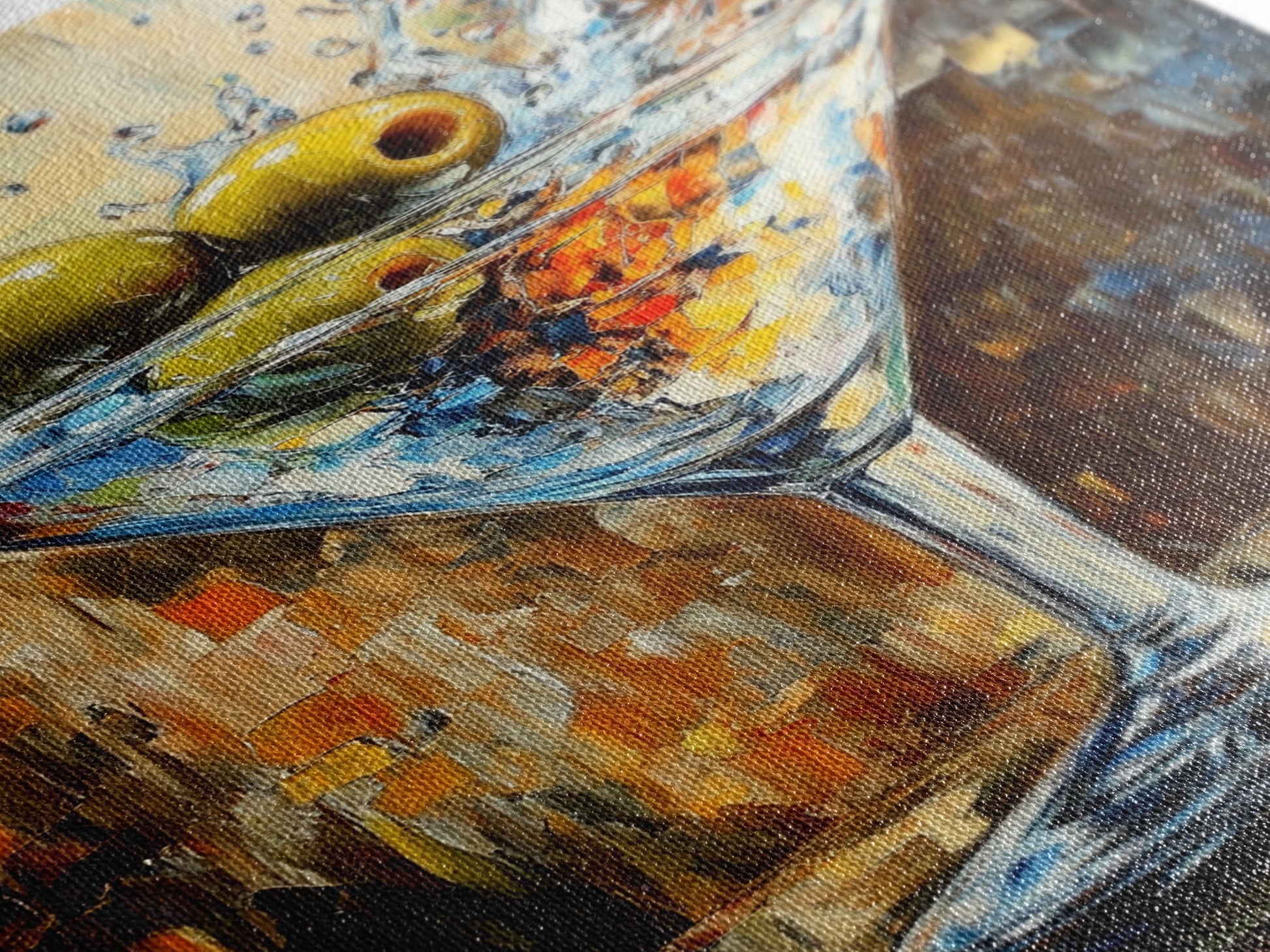 Golden Olive Martini Canvas Print with Rustic Cocktail Art Perfect Kitchen Decor, Espresso Martini Wall Art