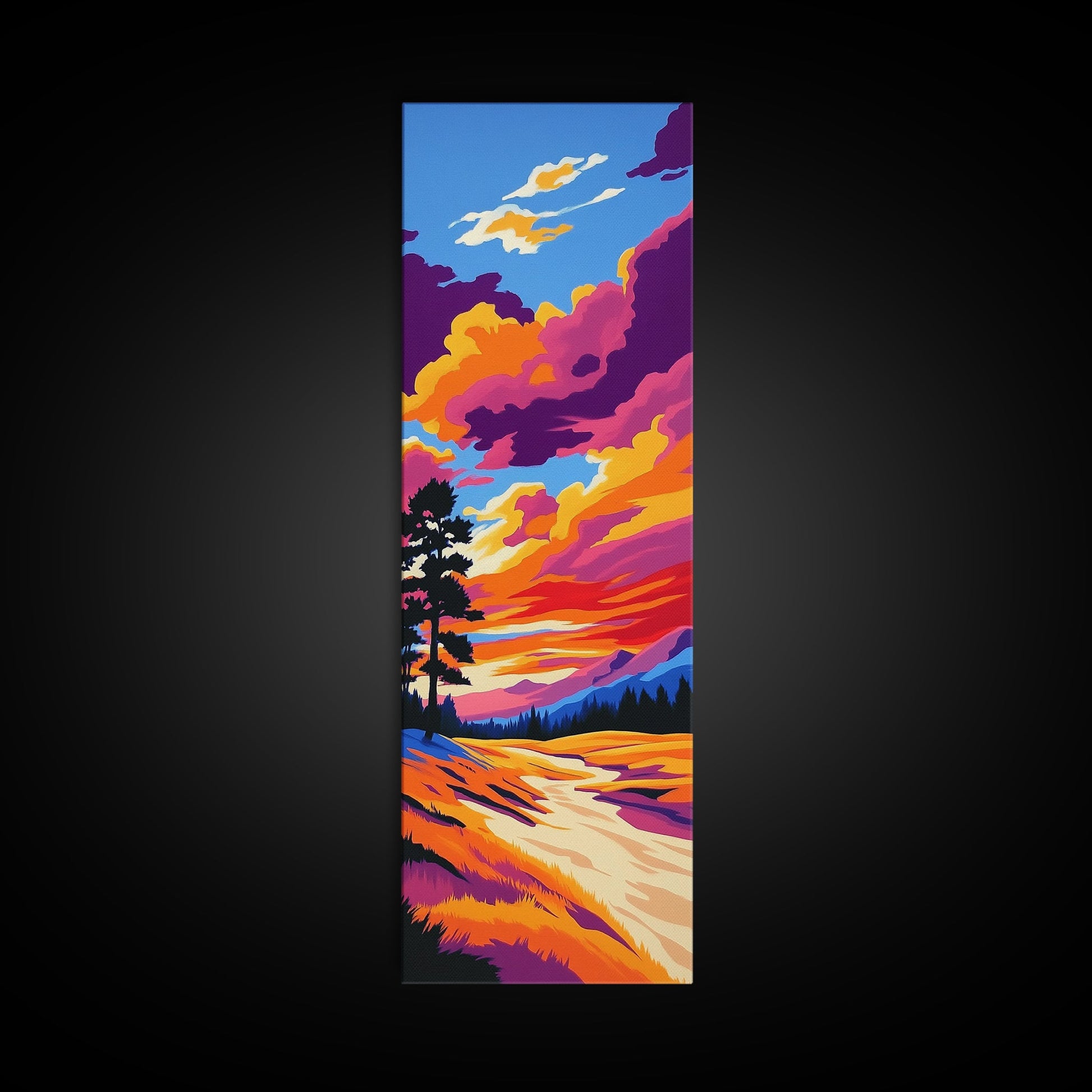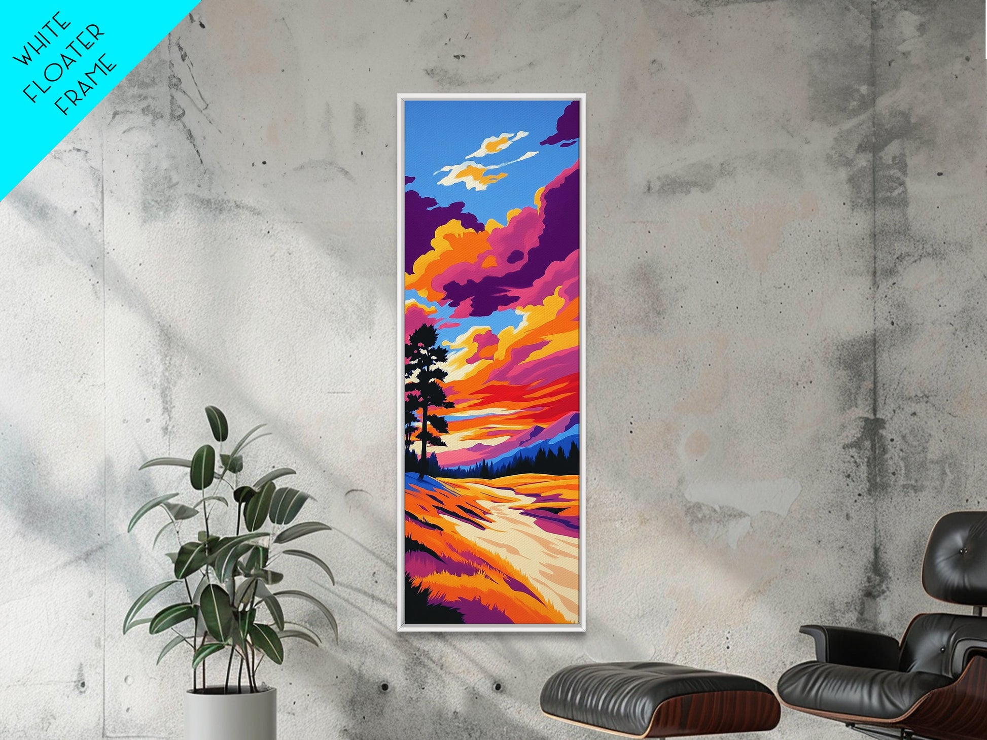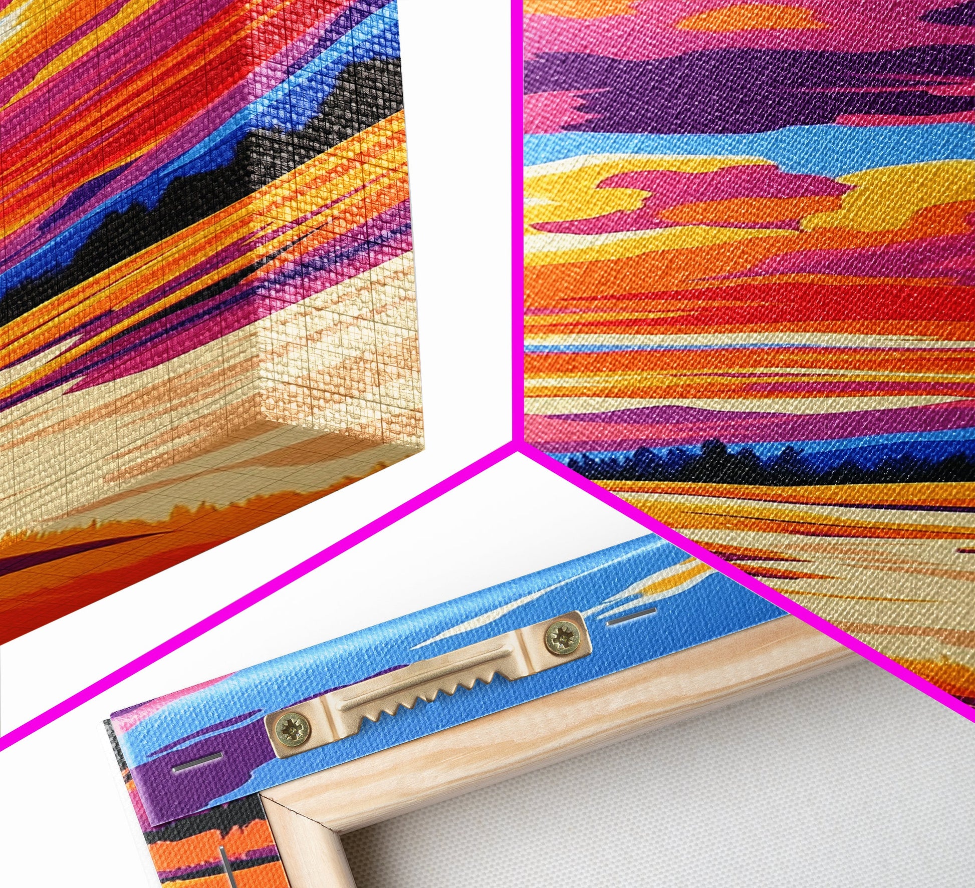 Golden River, Sunset Meadow, Vibrant Sky, Nature Wall Art, Framed Canvas Print, Boho Home Decor, Peaceful Landscape Aesthetic