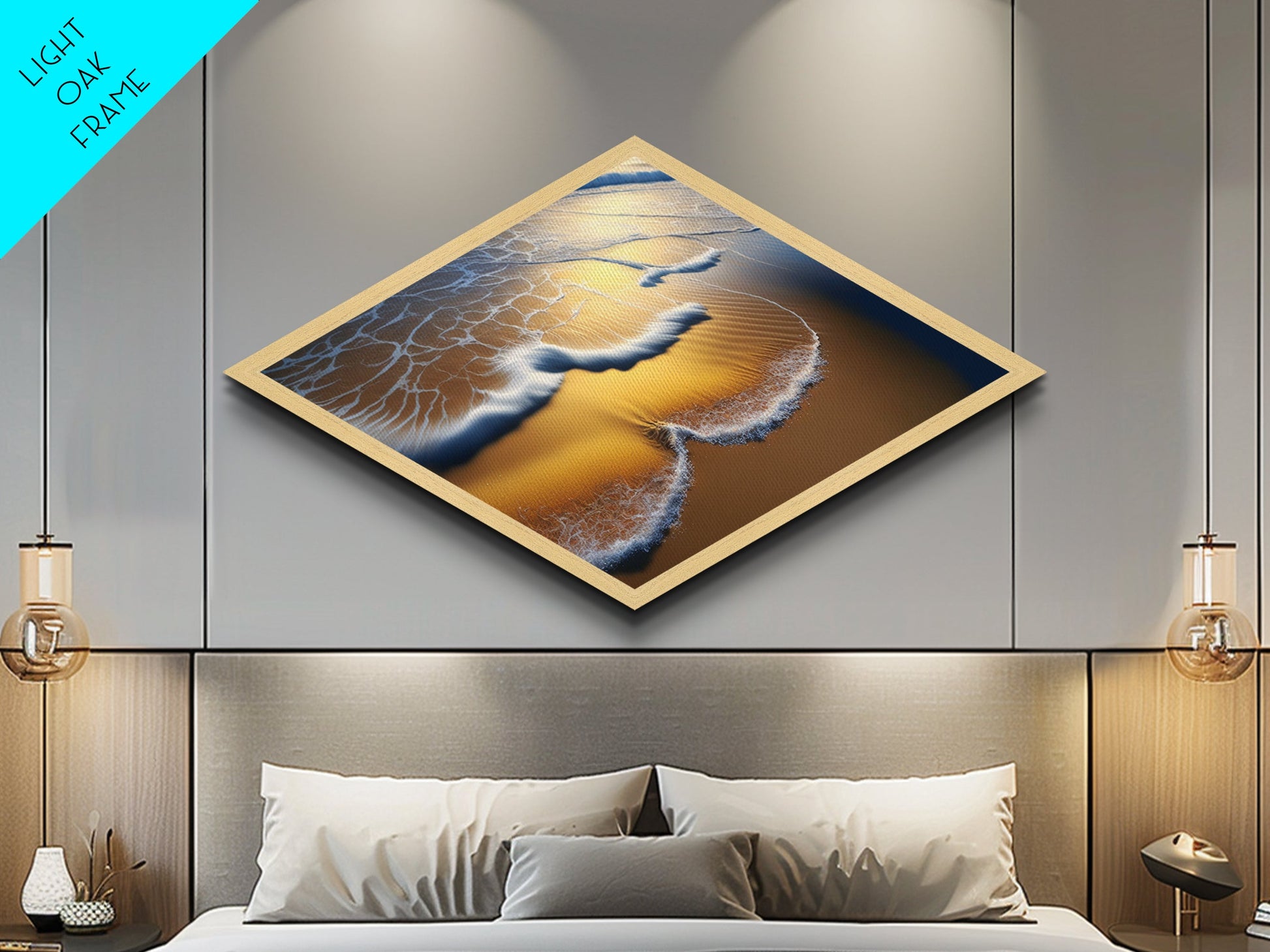 Golden Shoreline Tide – Diamond Shaped Ocean Wave Wall Decor, Coastal Nature Canvas Embossed Print, Beach Sunset Home Accent