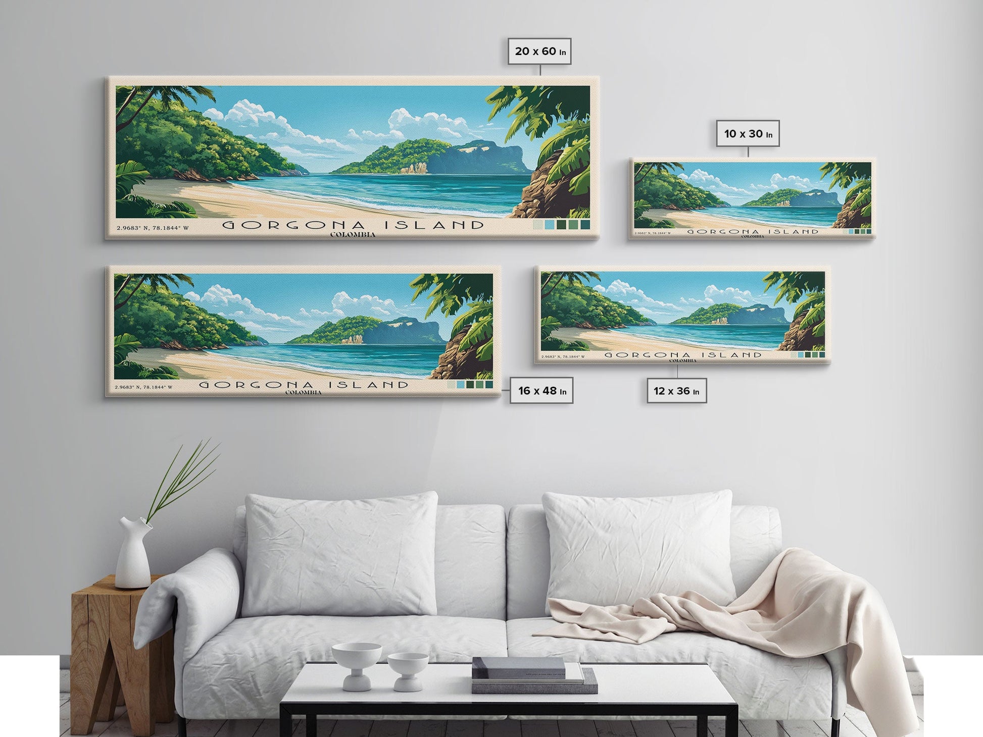 Gorgona Island, Colombia Panoramic Beach Print, Vacation Gift, Colombia Wall Art, Beach Painting, Beach Decor, Beach Painting