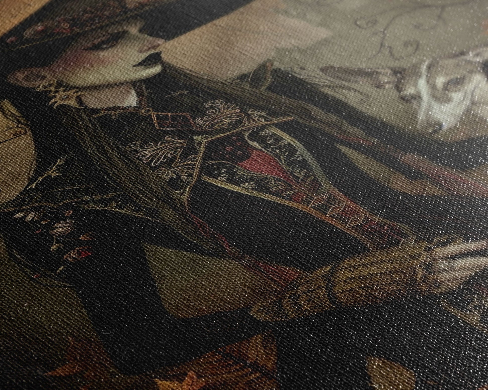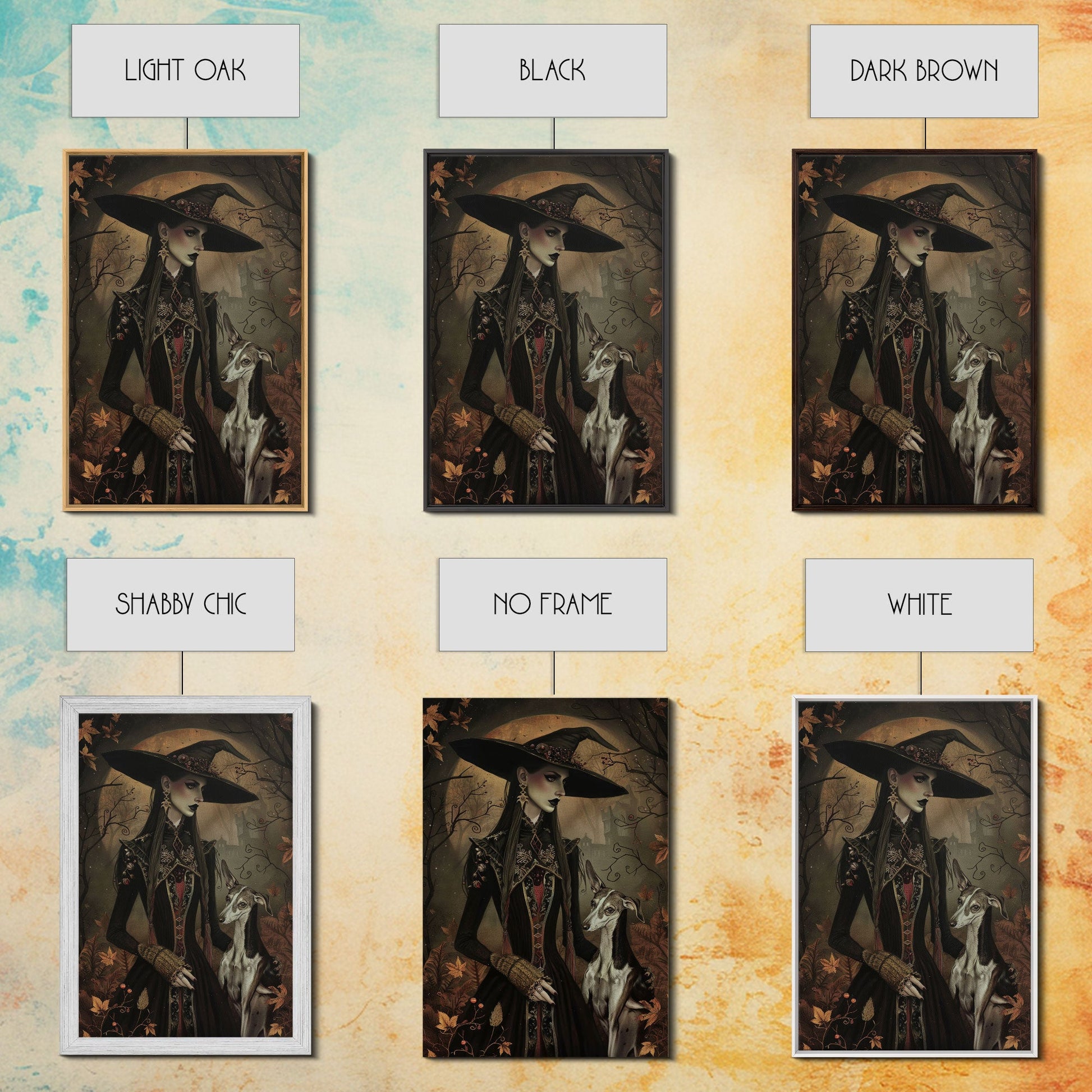 Gothic Witch with Elegant Dog, Framed Canvas Print, Dark Witch Art, Victorian Witch, Halloween Witch Decor, Gothic Home Decor