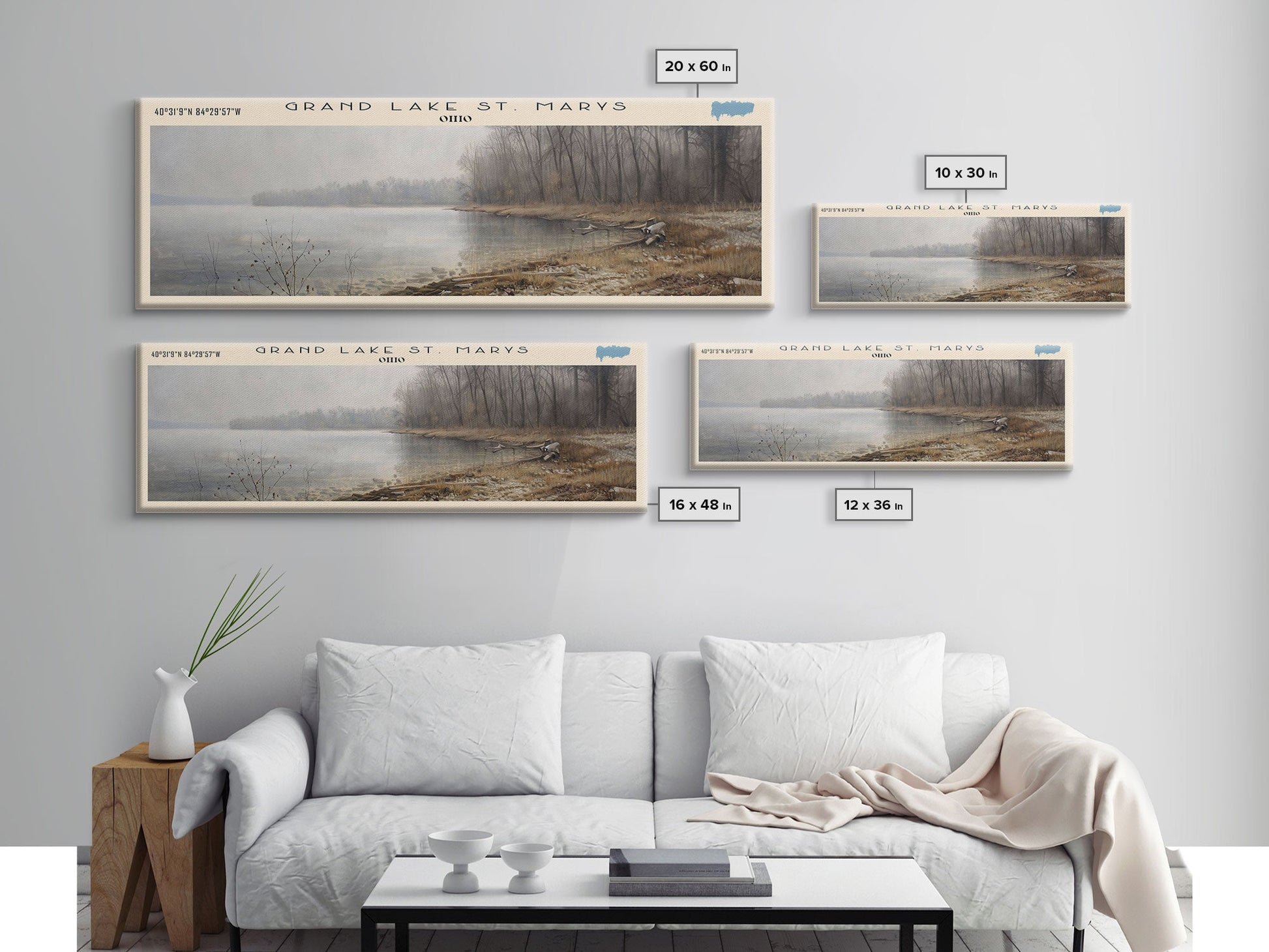 Grand Lake St. Marys Ohio Framed Canvas Print, Lake House Art, Panoramic Wall Art, Travel Poster, Captivating Lake Painting, Home Decor