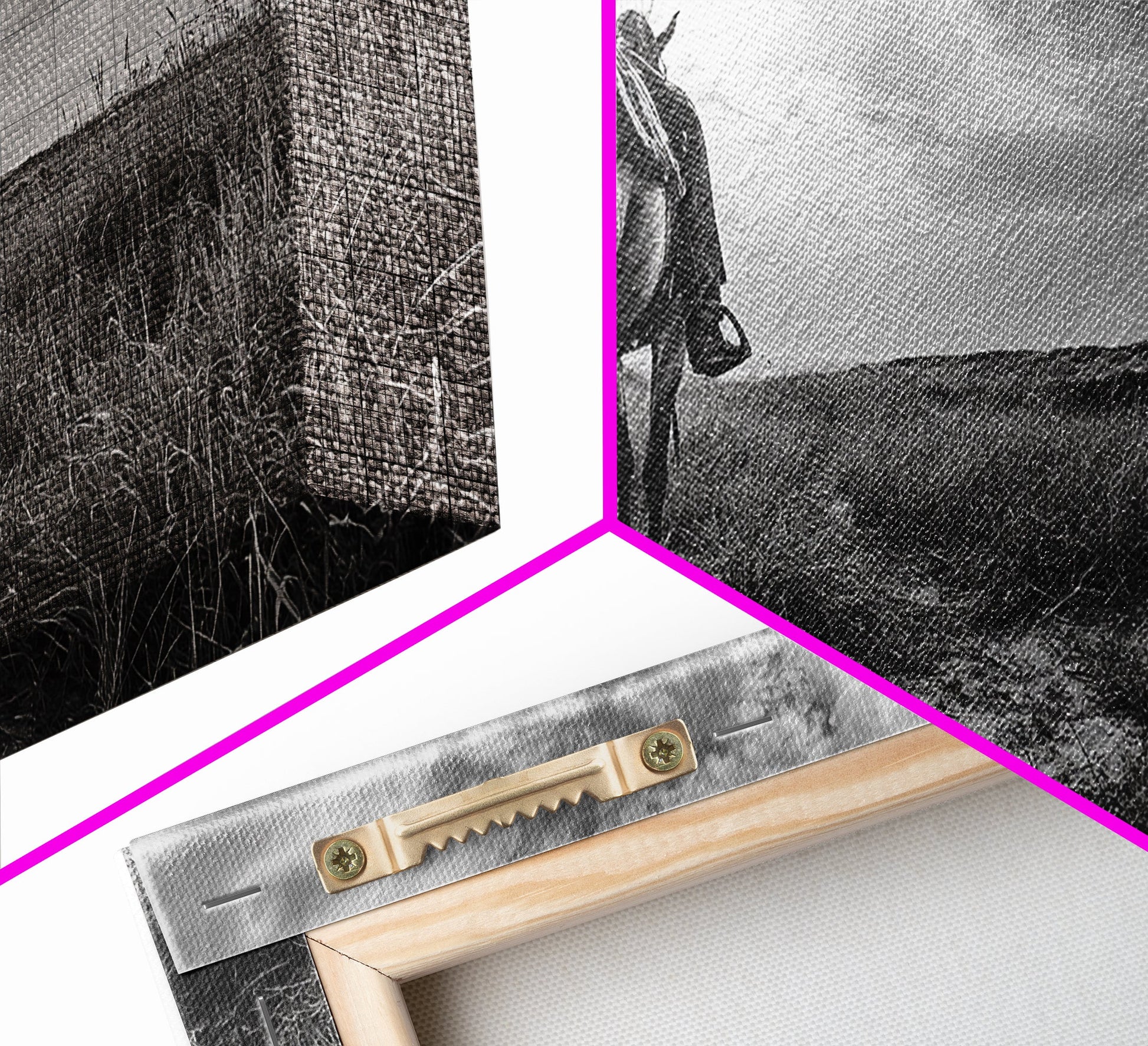 Grazing Horses, Cowboy Duo, Open Field, Equestrian Love Scene, Canvas Print, Western Wall Art, Rustic Ranch Living Room Decor