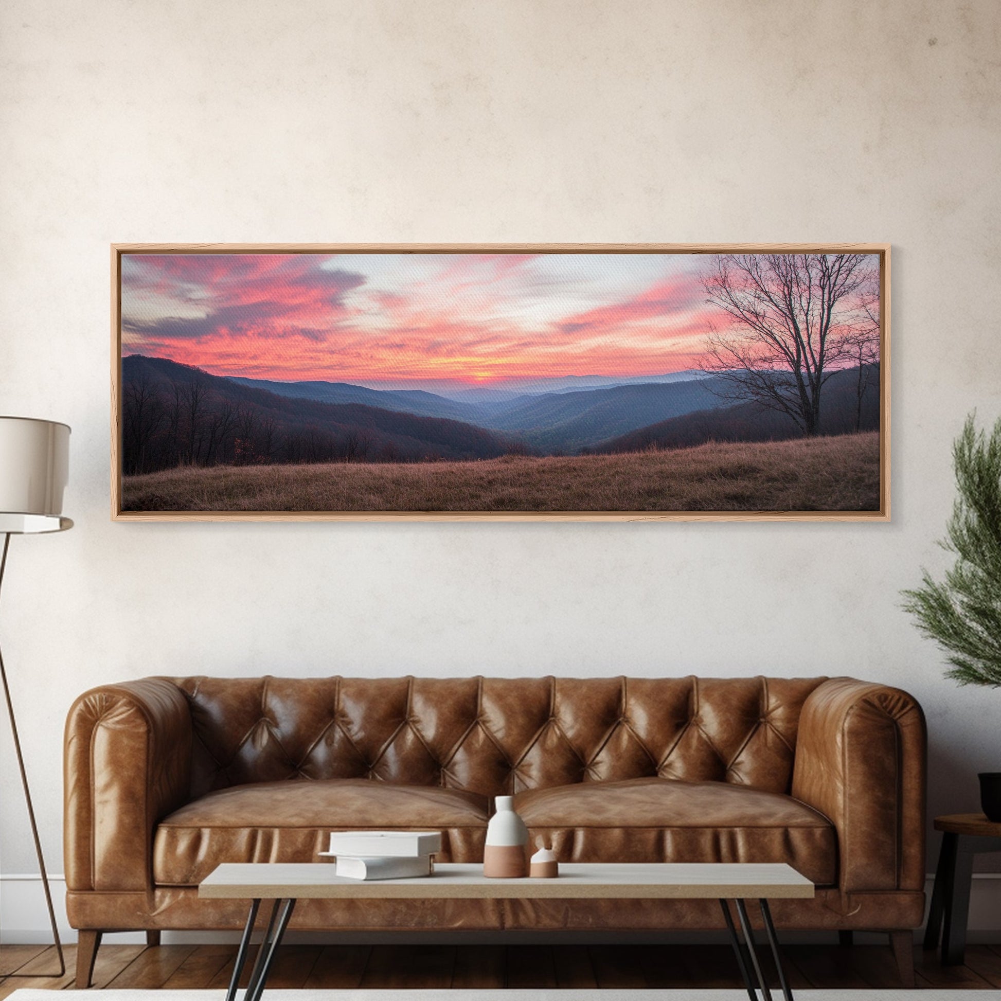 Great Smoky Mountains Panoramic Wall Art Canvas Print, Smoky Mountains Photography Style Wall Art, Landscape Painting