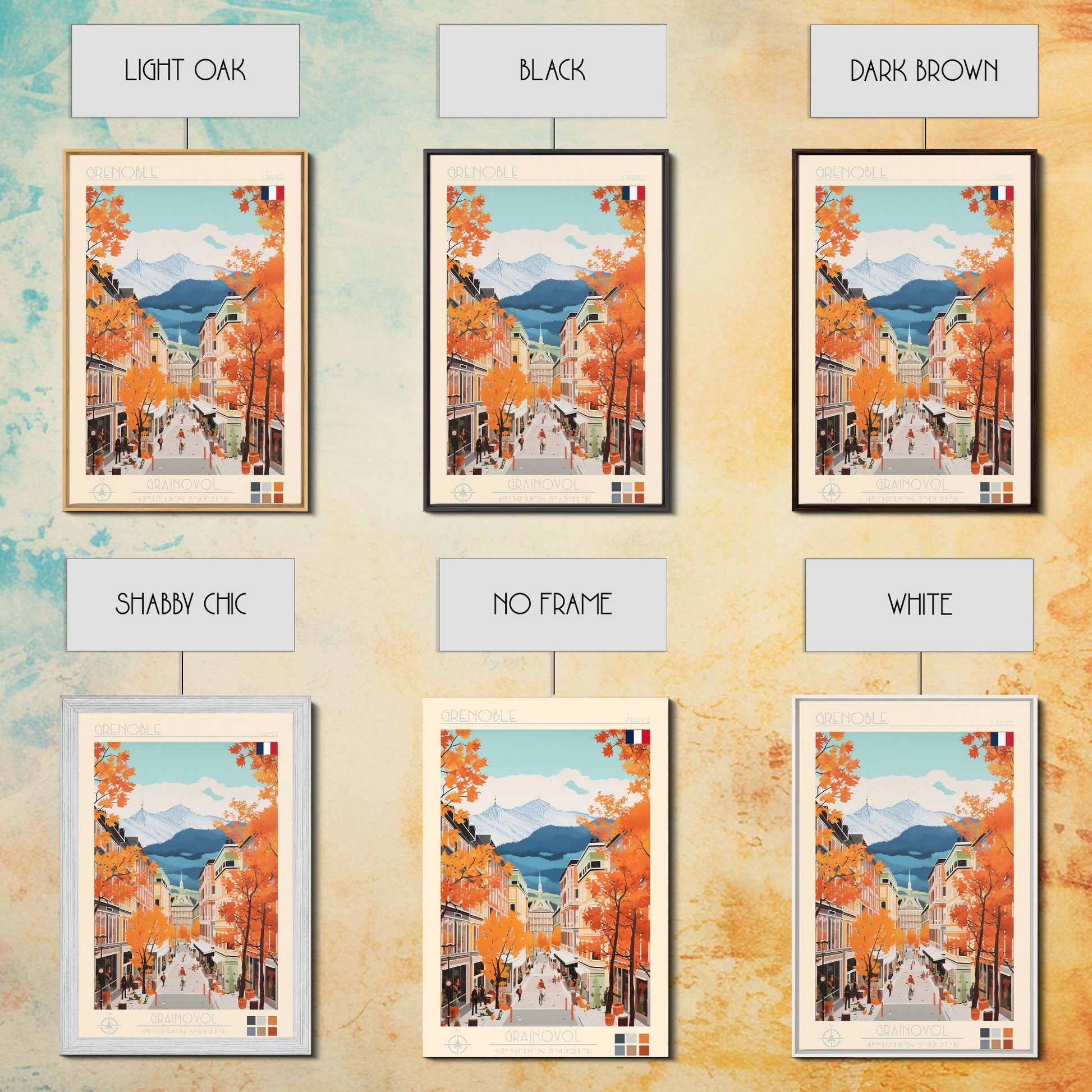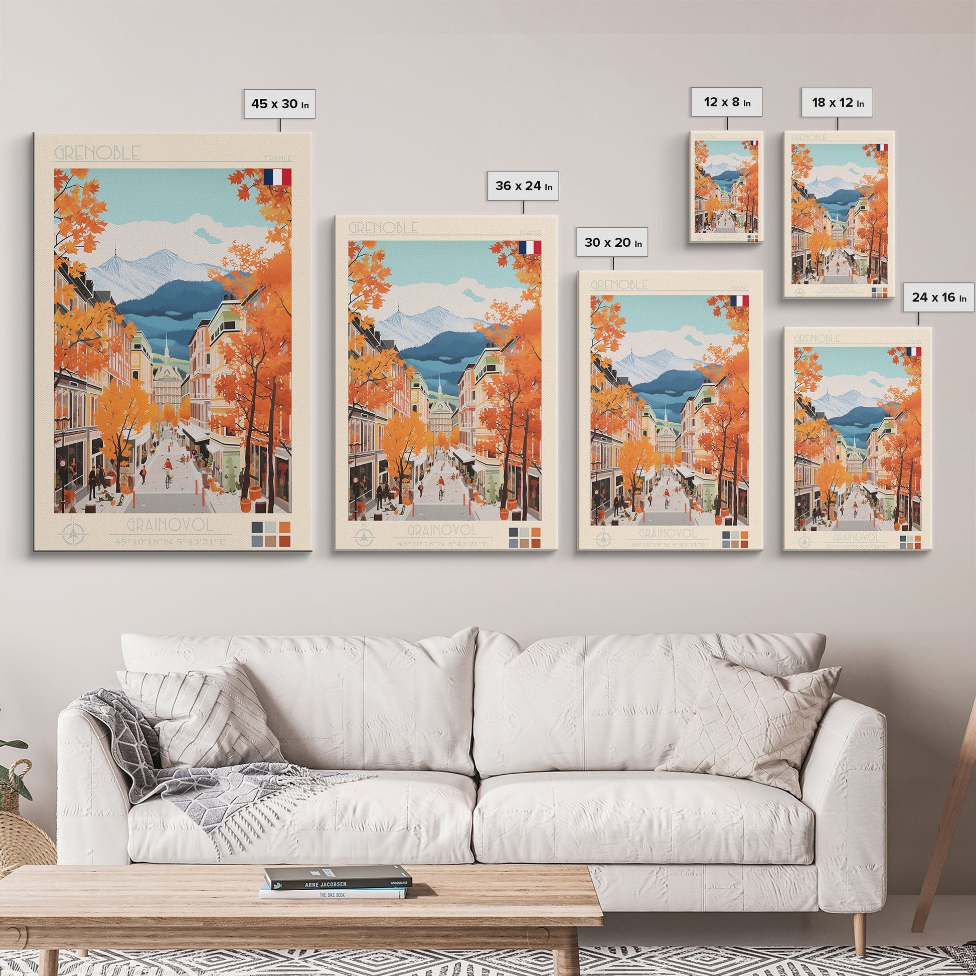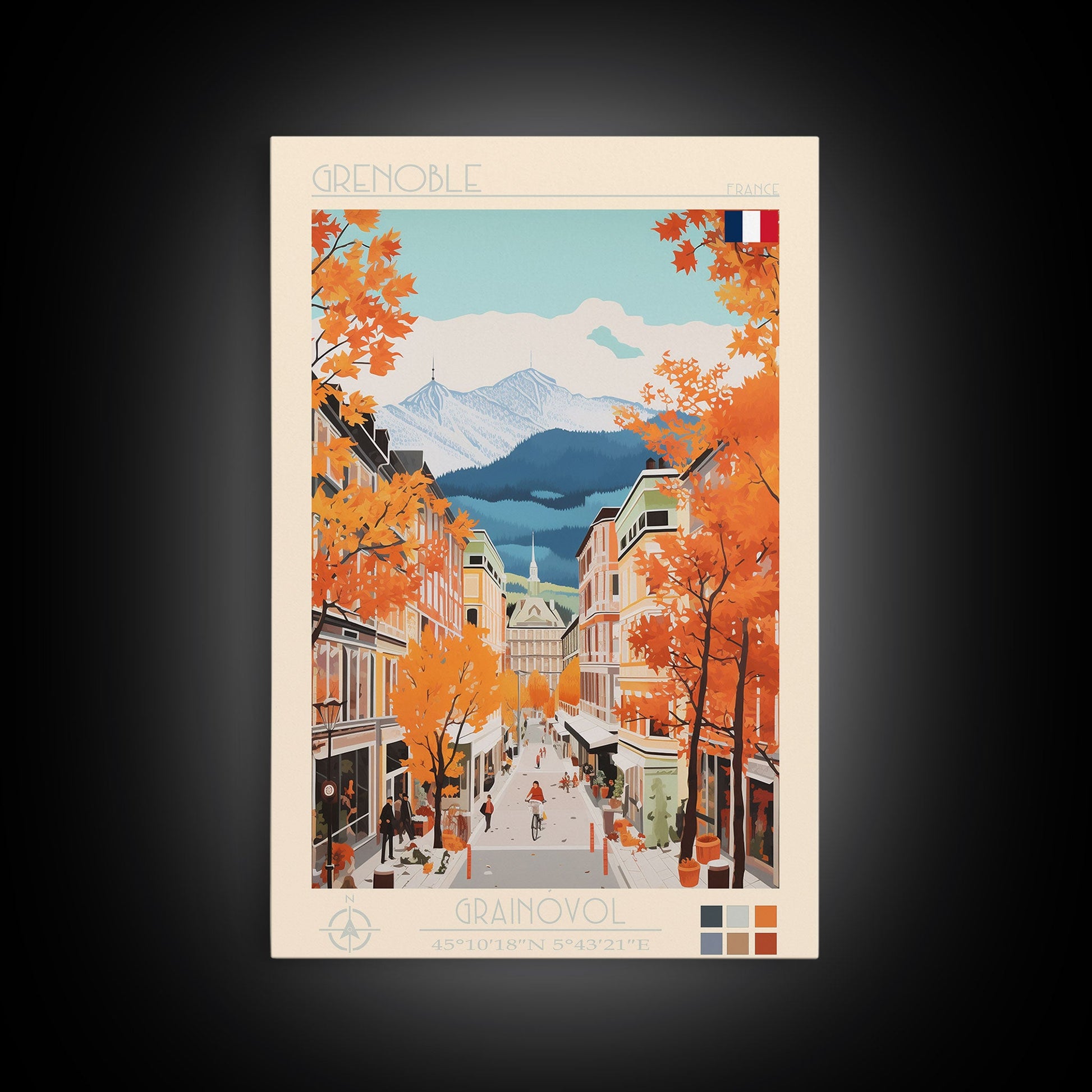 Grenoble France Travel Poster Framed Canvas Print, Midcentury Modern Art, Pop Art Wall Decor, Home Decor, Vacation Gift, Office Art