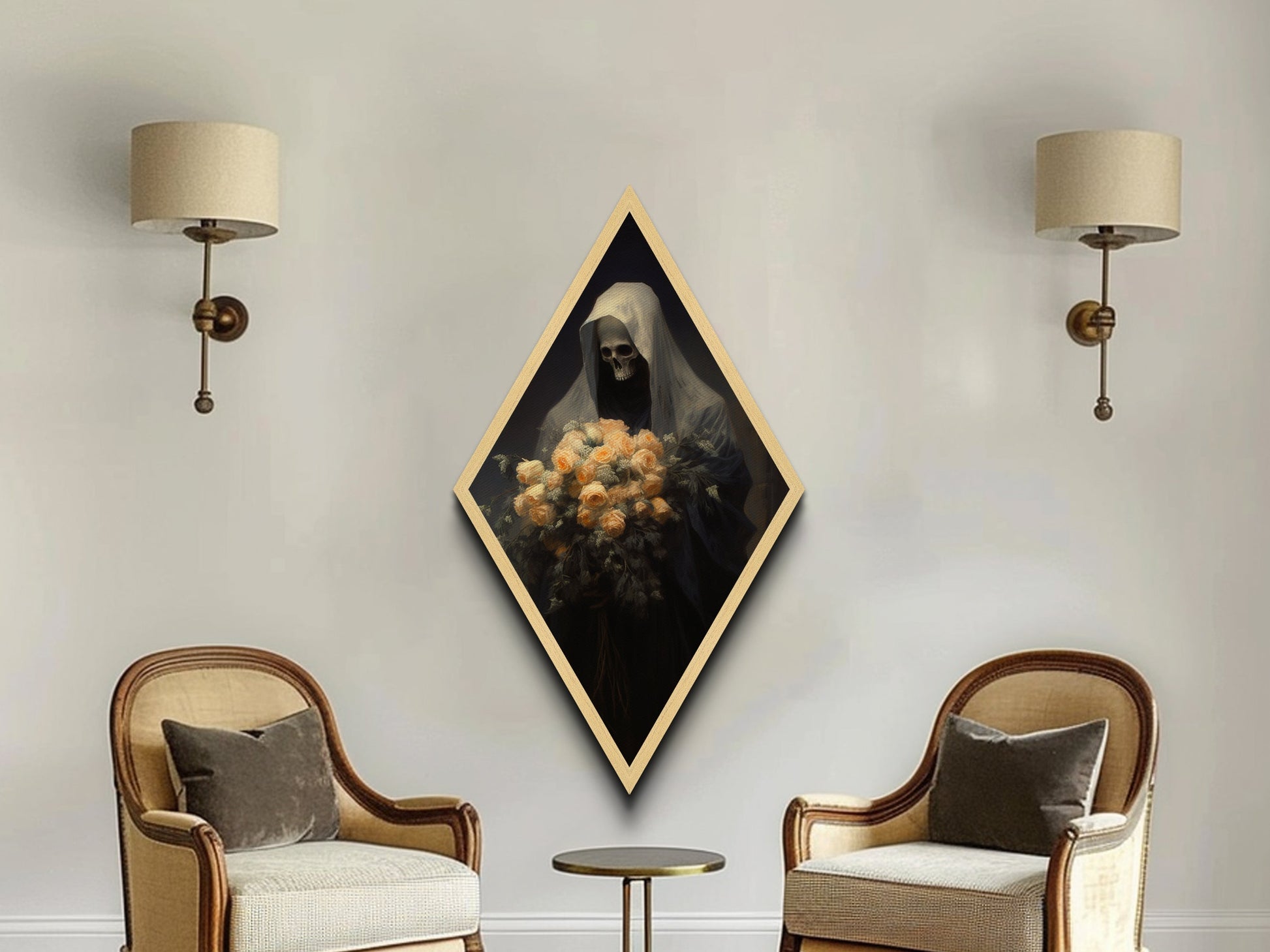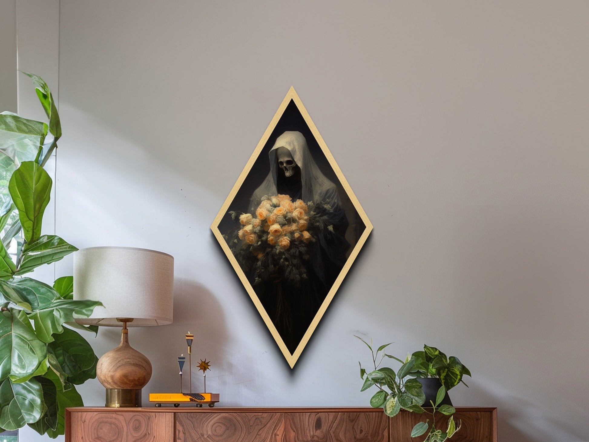 Grim Reaper, Flower Deliveryman, Gothic Halloween Decor, Canvas Textured Print, Scary Horror Art, Goth Decor, Oil Painting, Dark Academia