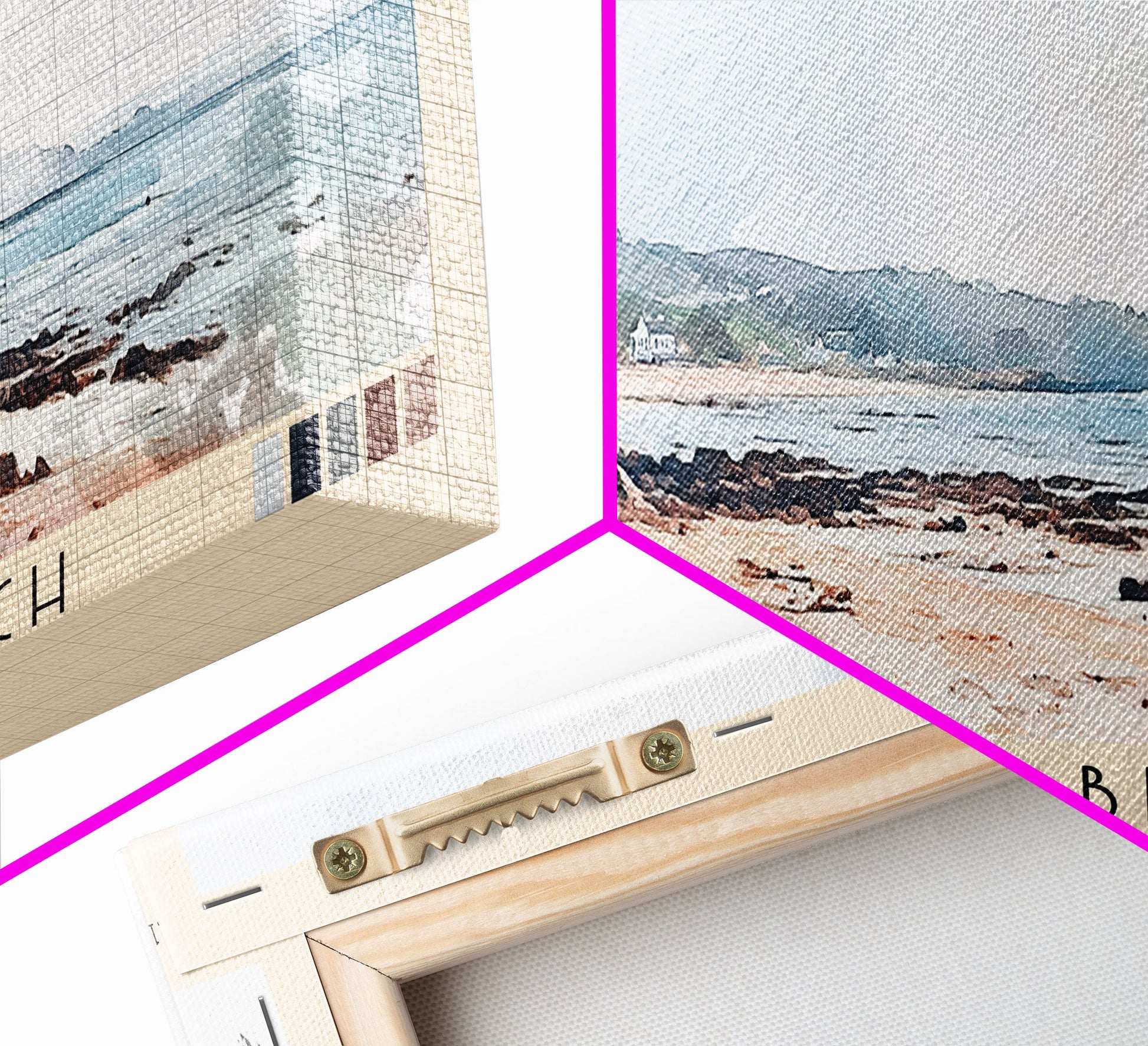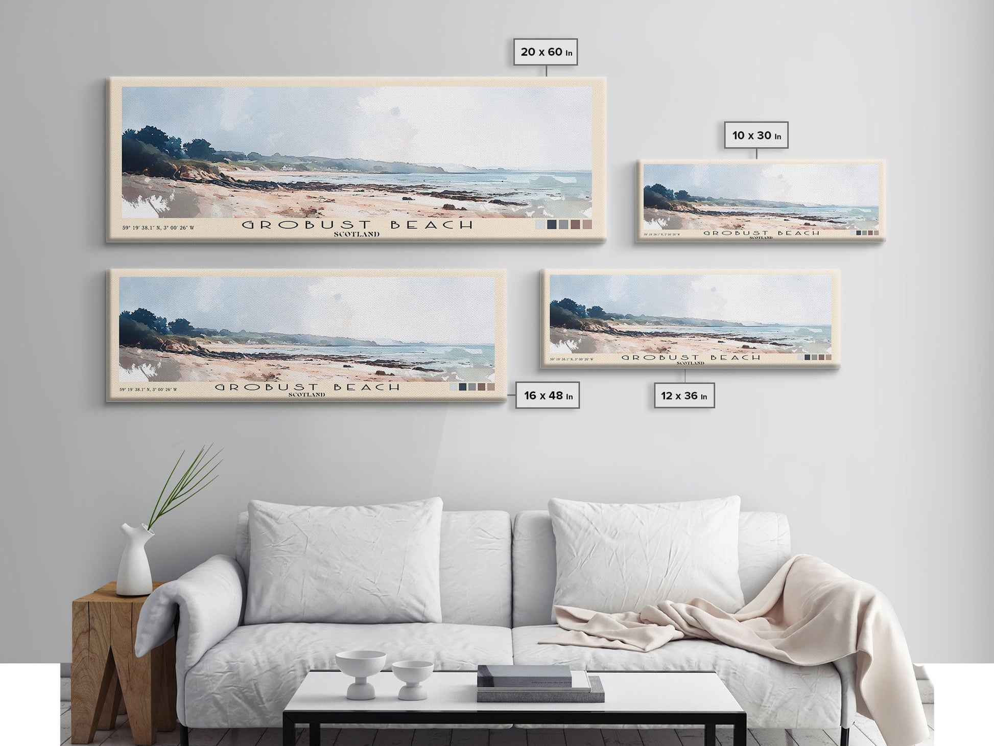 Grobust beach, Scotland Watercolor Print, Vacation Gift, Scotland Wall Art, Beach Painting, Beach Decor, Large Wall Art, Wood Frame Art