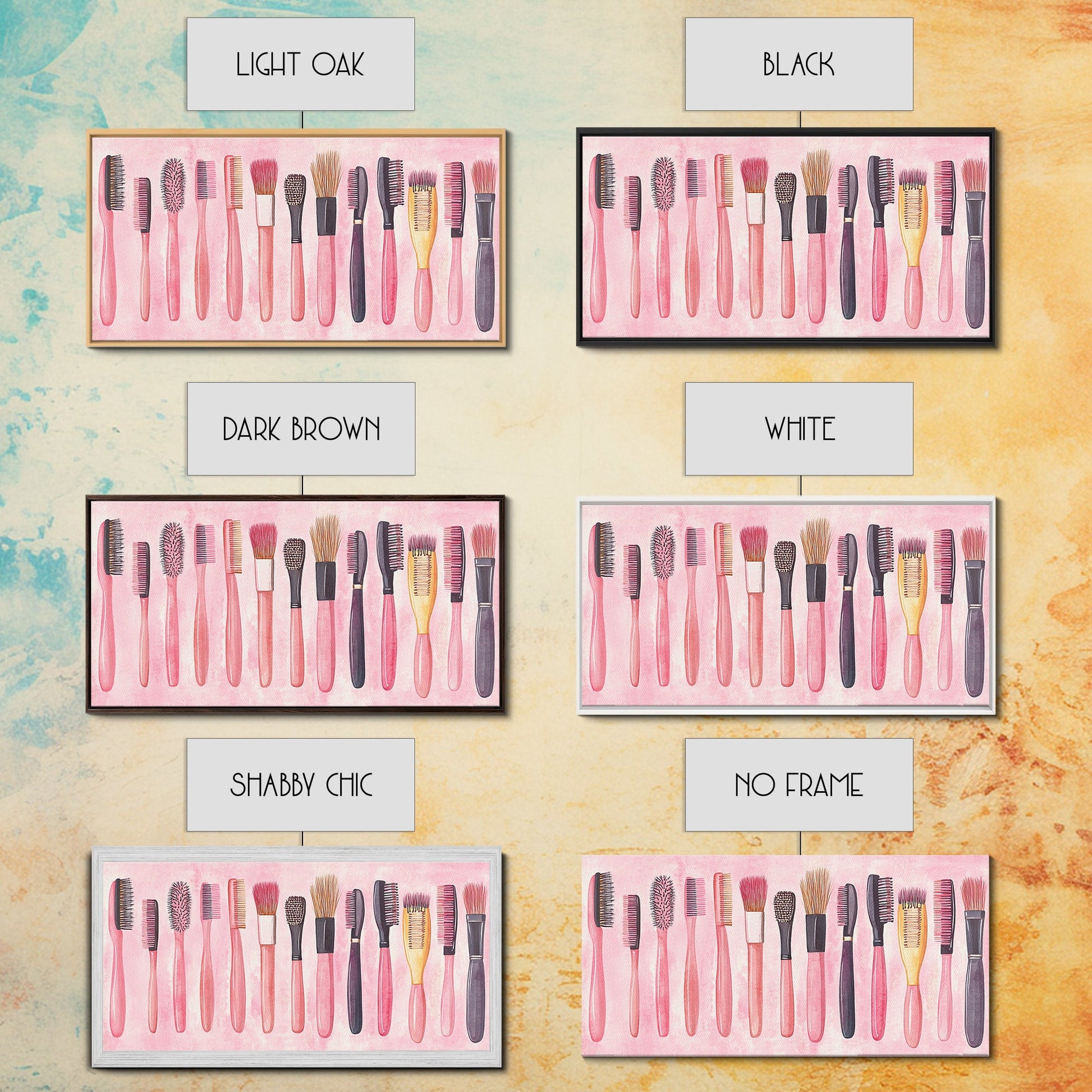 Hairbrush Collection Canvas Print Whimsical Art Pink Wall Art Fun Boho Aesthetic Bathroom Decor Vertical Art Unique Gift Idea