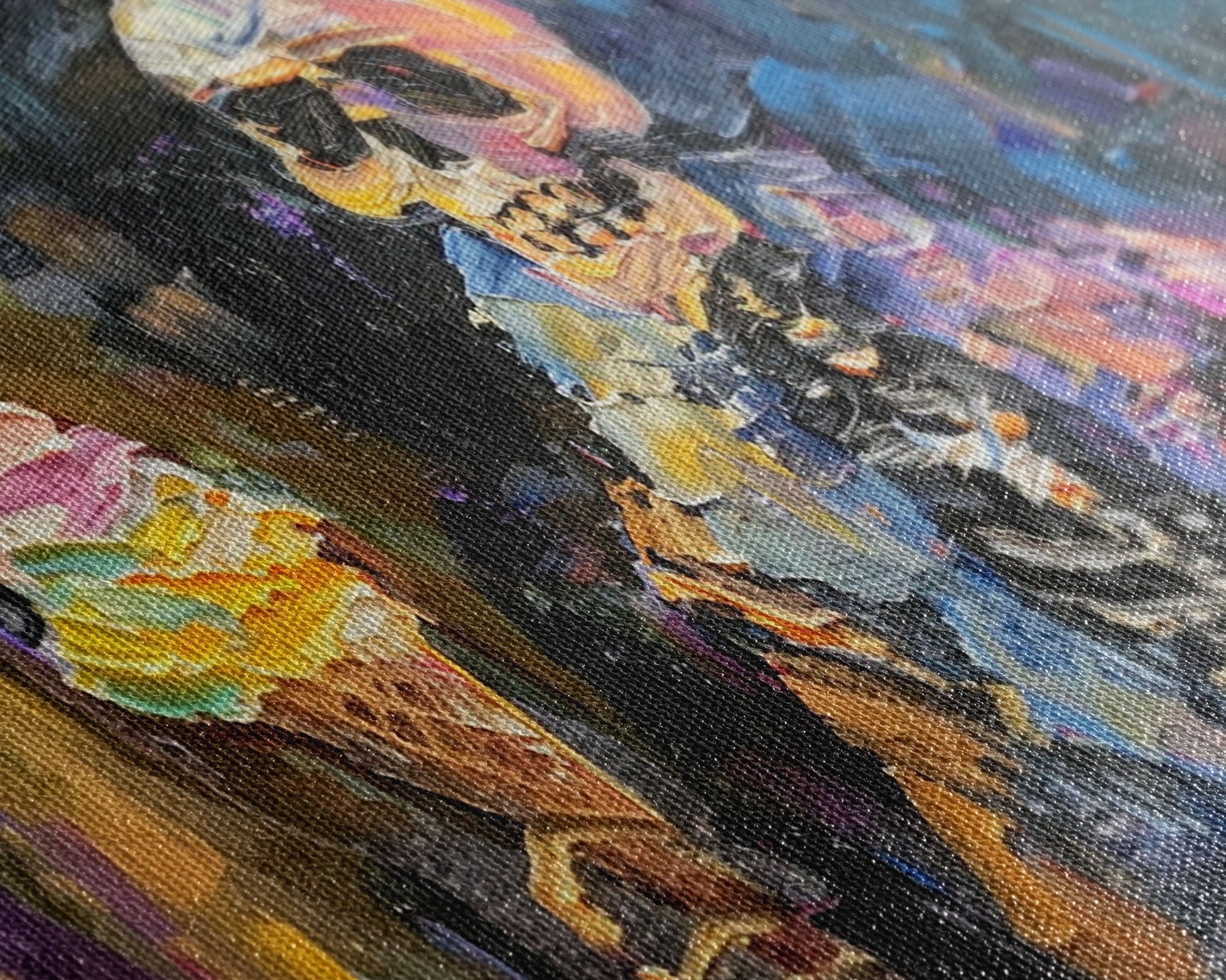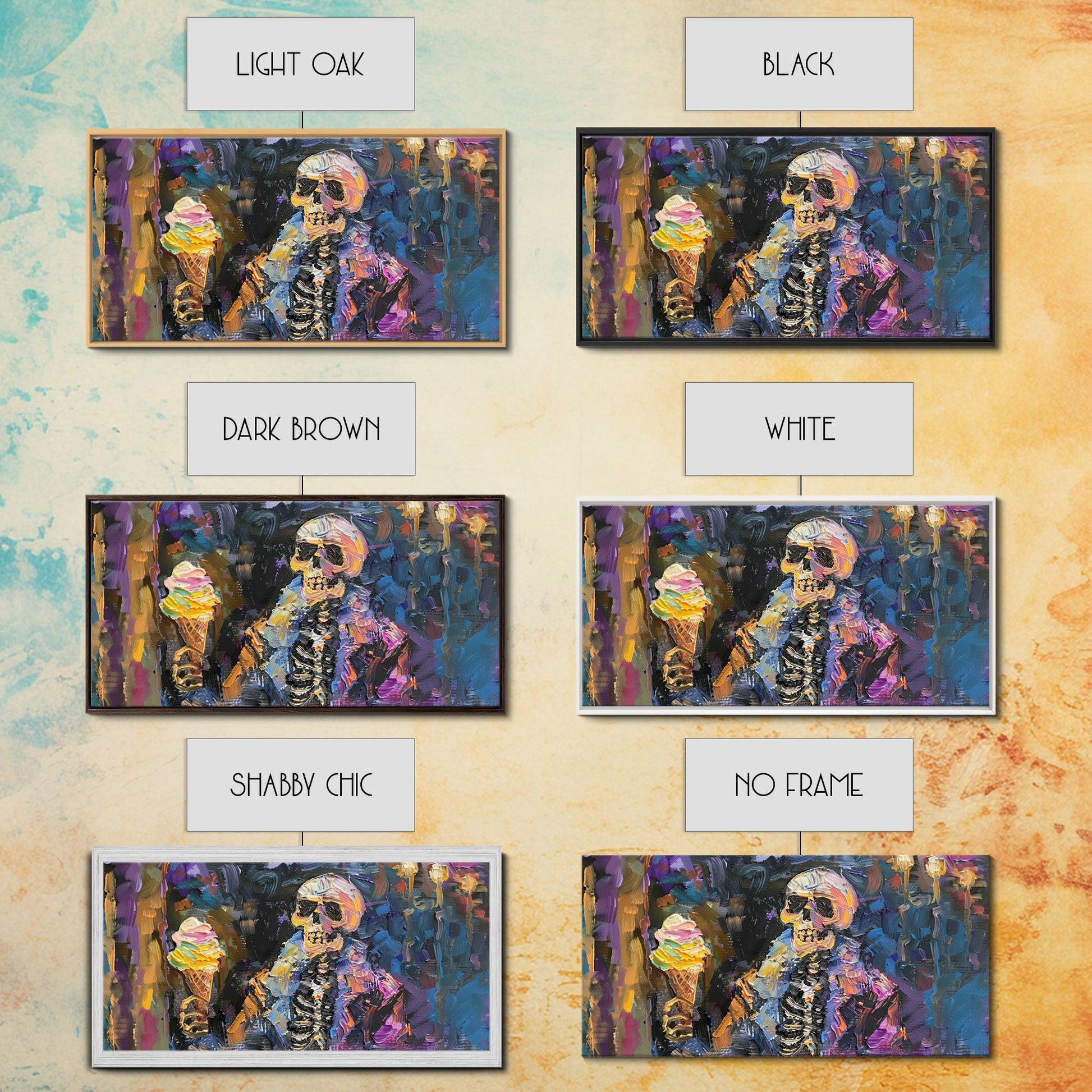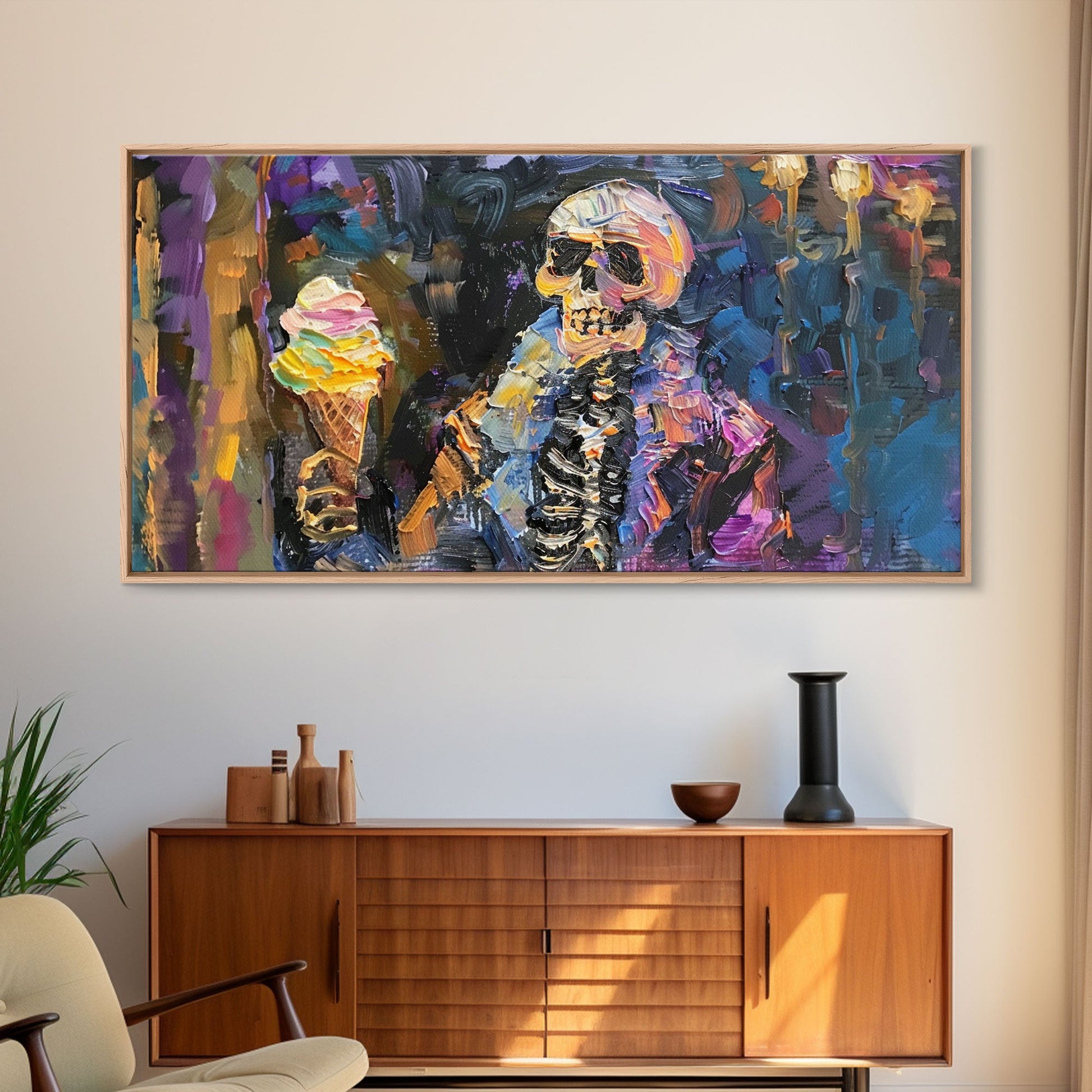 Halloween Art, Skeleton Having an Ice Cream Cone, Framed Canvas Print, Halloween Decor