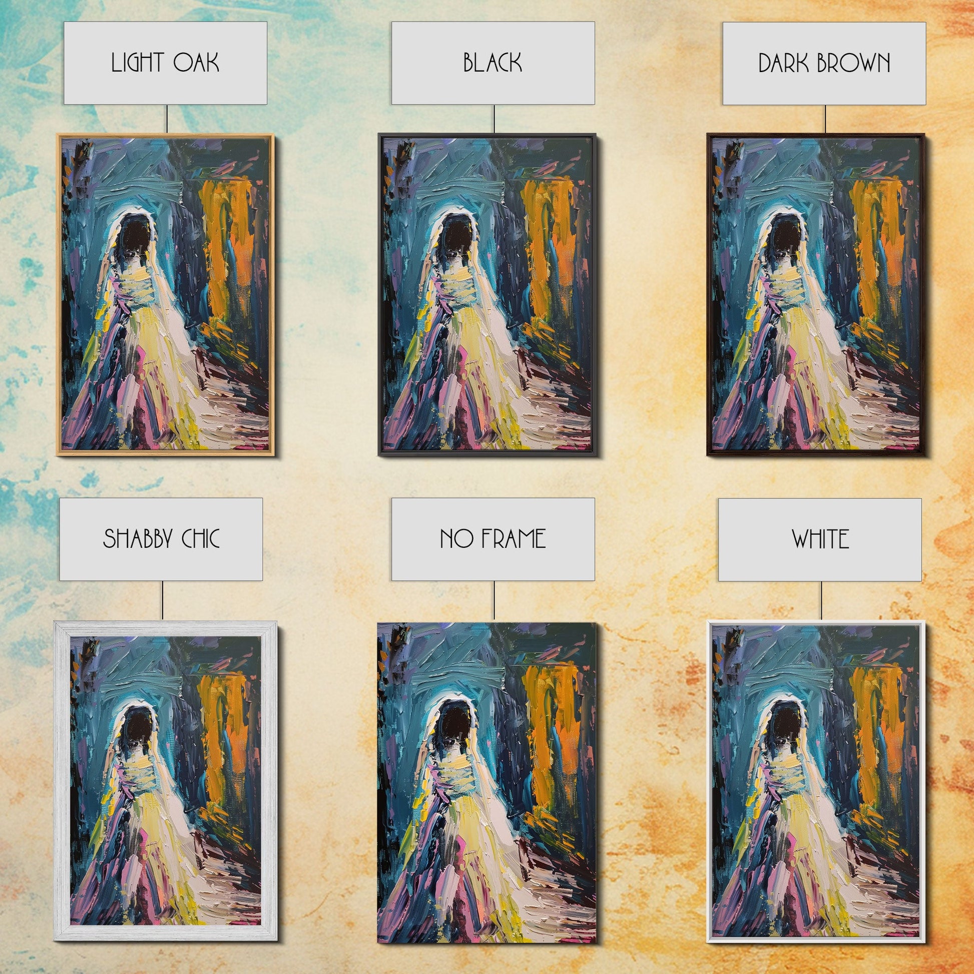 Halloween Haunted Veiled Ghost, Framed Canvas Print, Wall Art, Living Room Decor, Spooky, Ghost Art, Original Painting, Home Decor