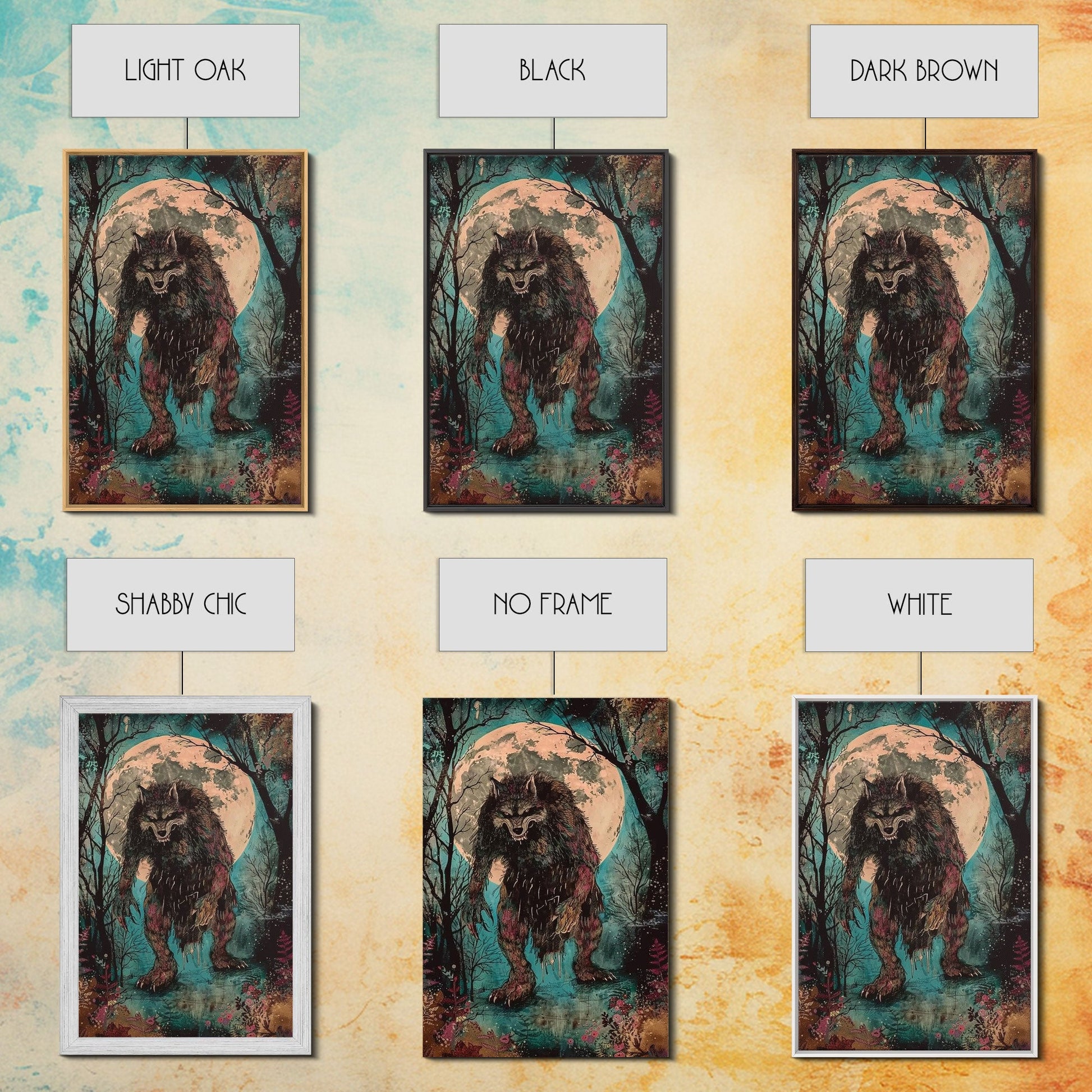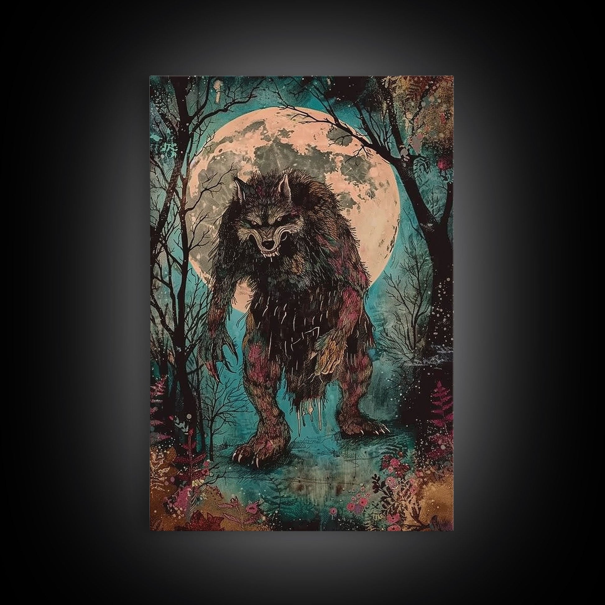 Halloween Horror Full Moon Werewolf Framed Canvas Print, Wall Art, Living Room Decor, Halloween Decor, Spooky Wall Hanging, Haunted House